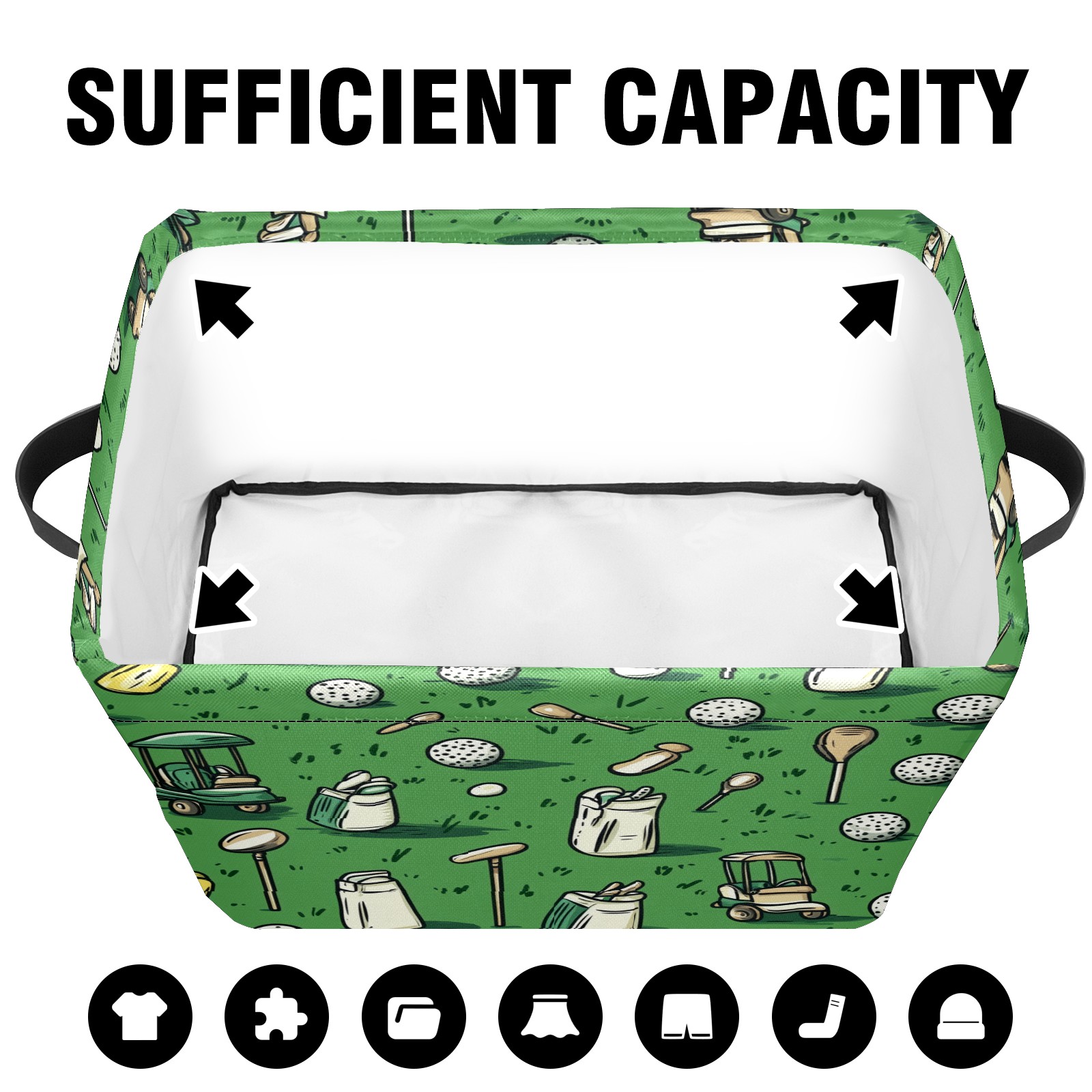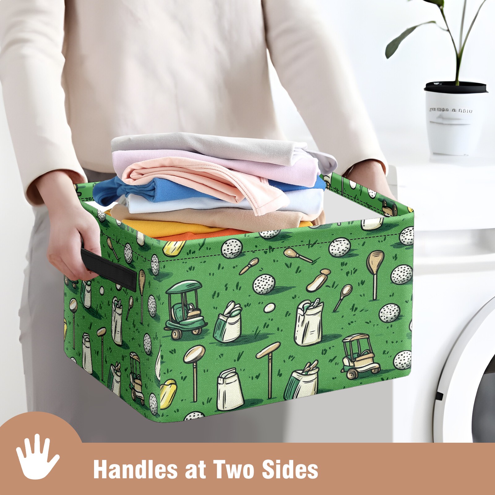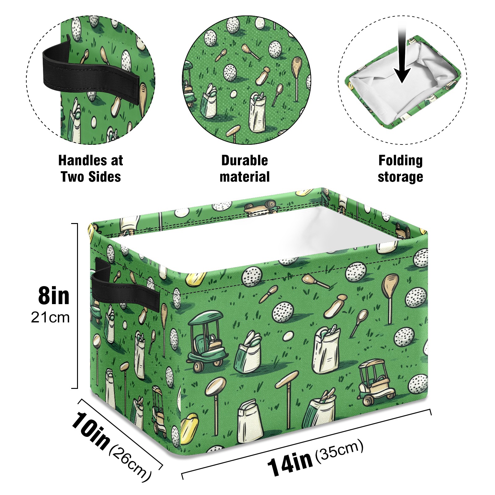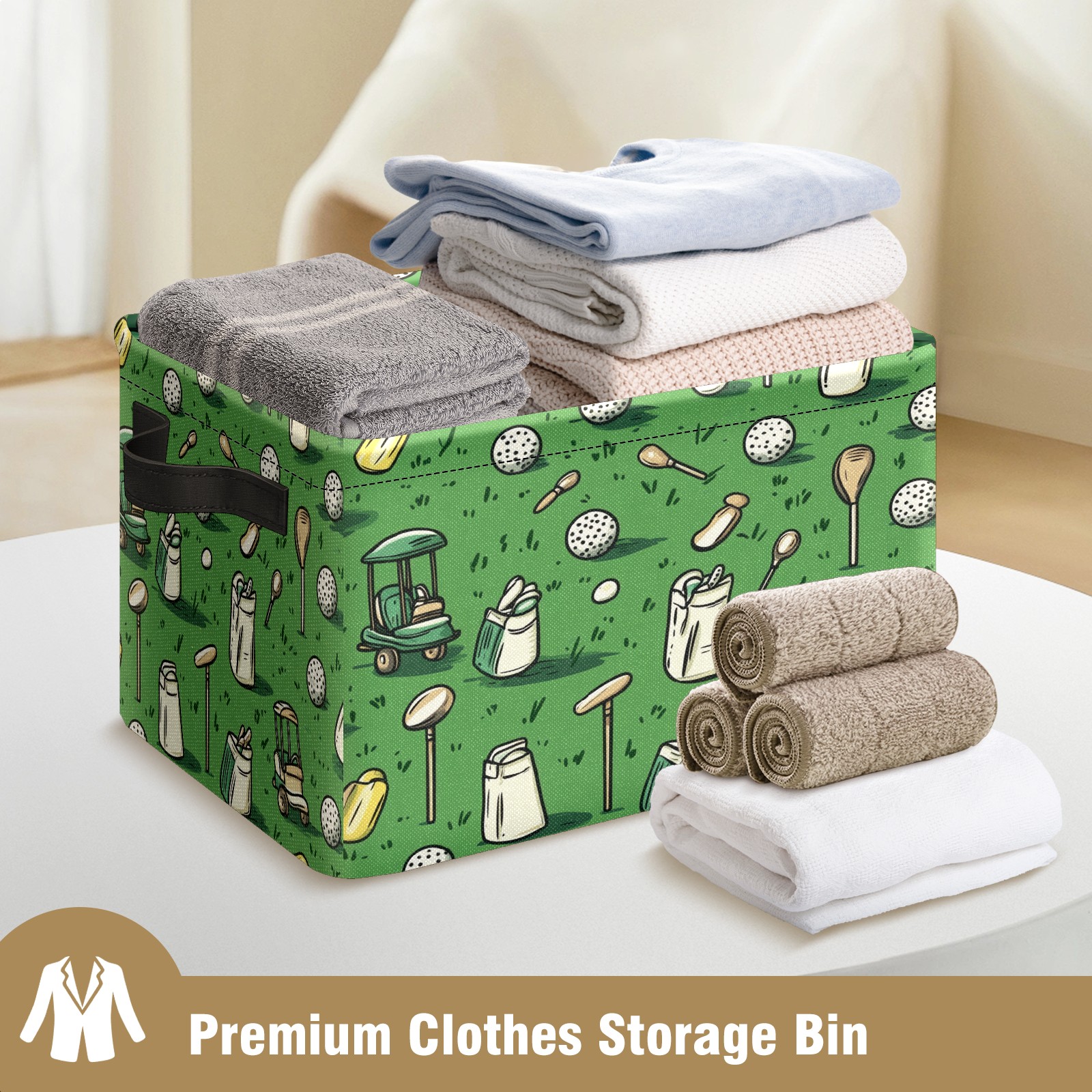 Foldable and Stackable Fabric Storage Basket for Home Organization with Handles, Decorative Closet Bins for Shelves and Laundry Storage( Golf Balls And Club Bags)