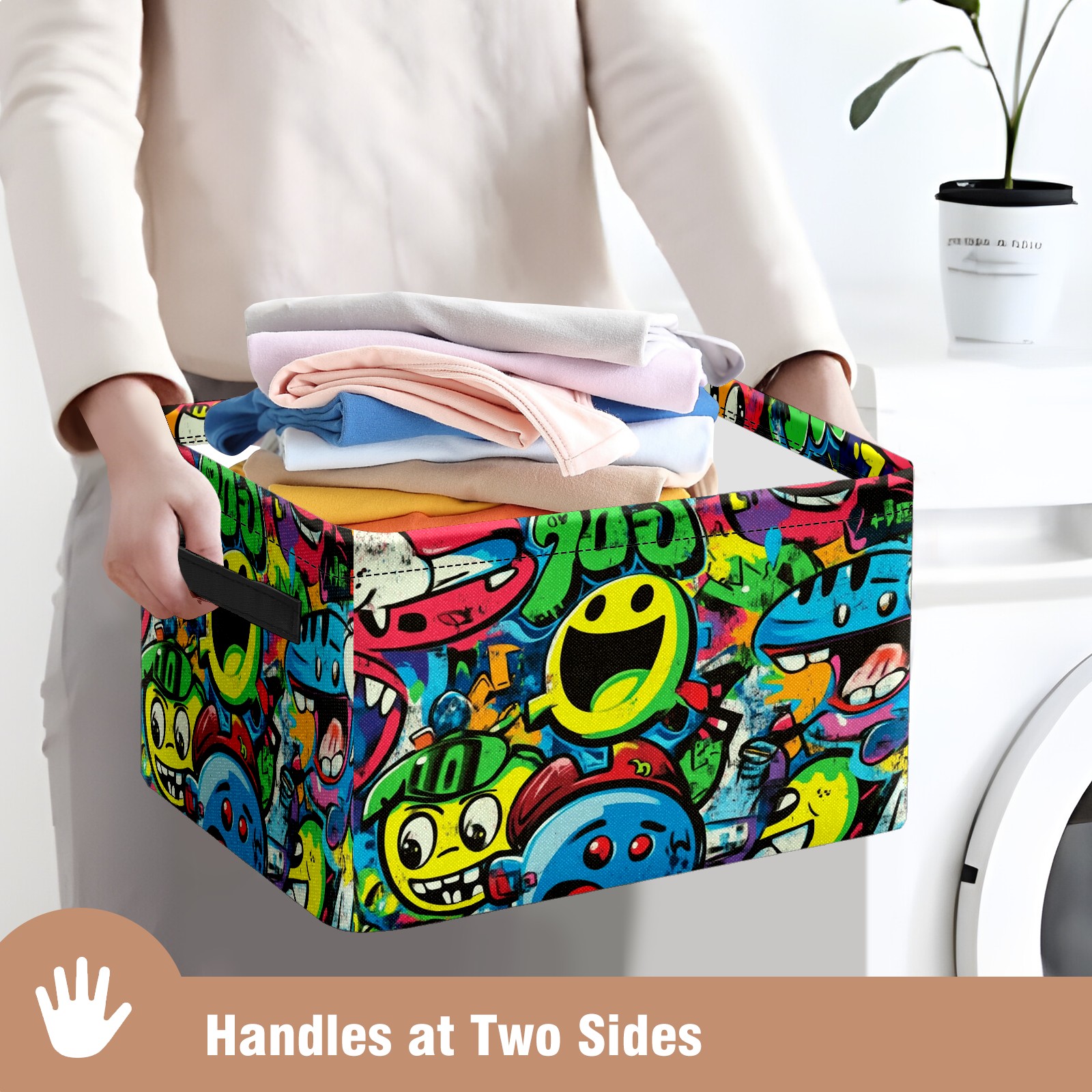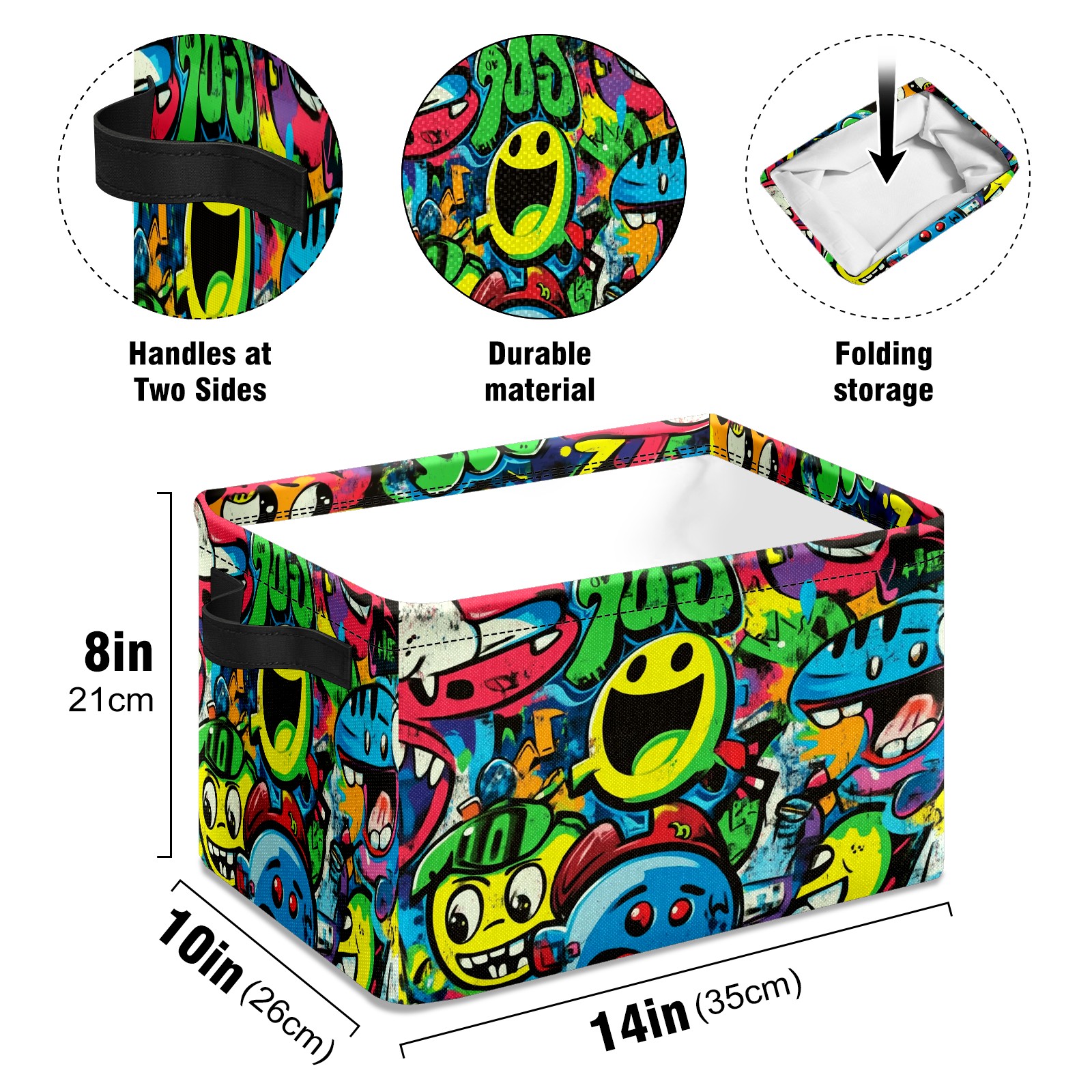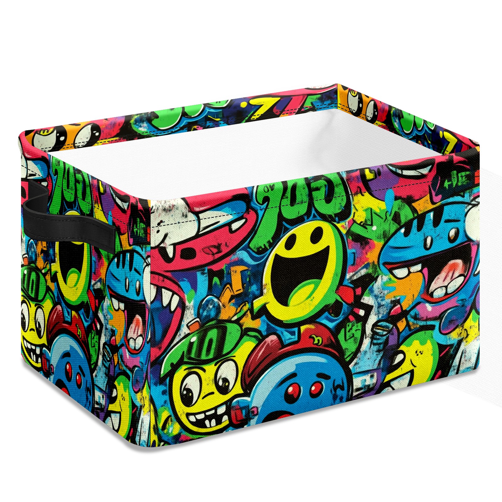 Foldable and Stackable Fabric Storage Basket for Home Organization with Handles, Decorative Closet Bins for Shelves and Laundry Storage( Vibrant Cartoon-style Pattern)