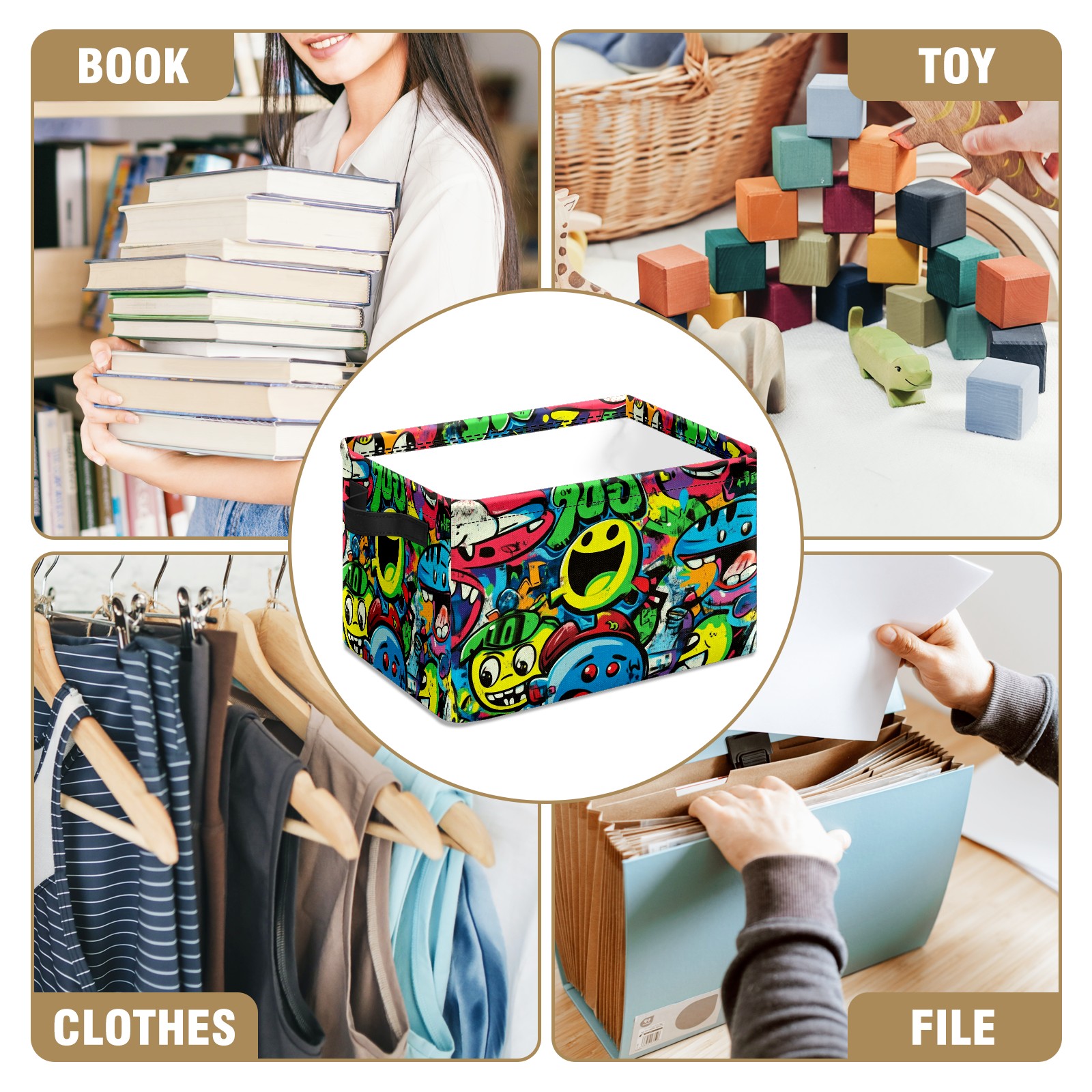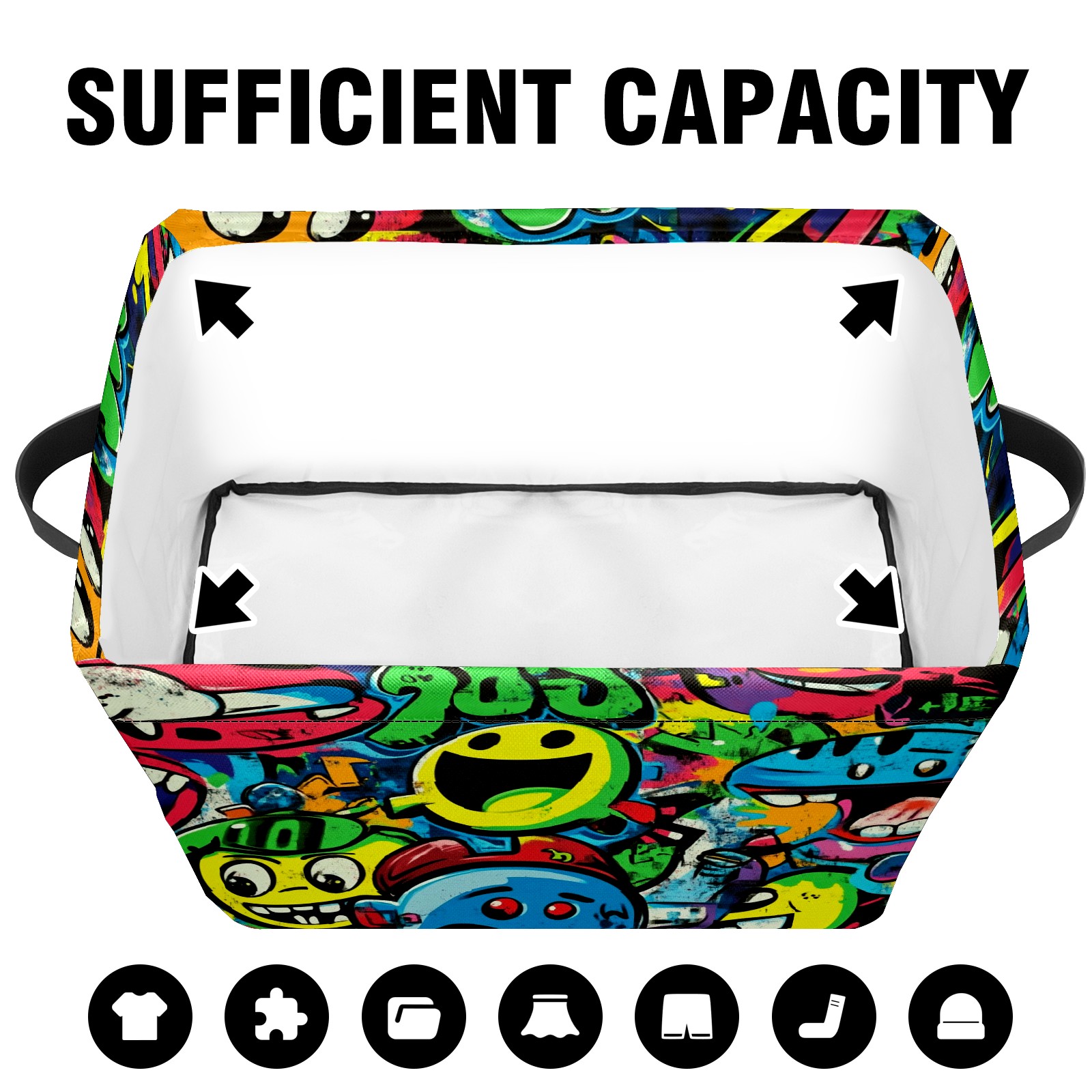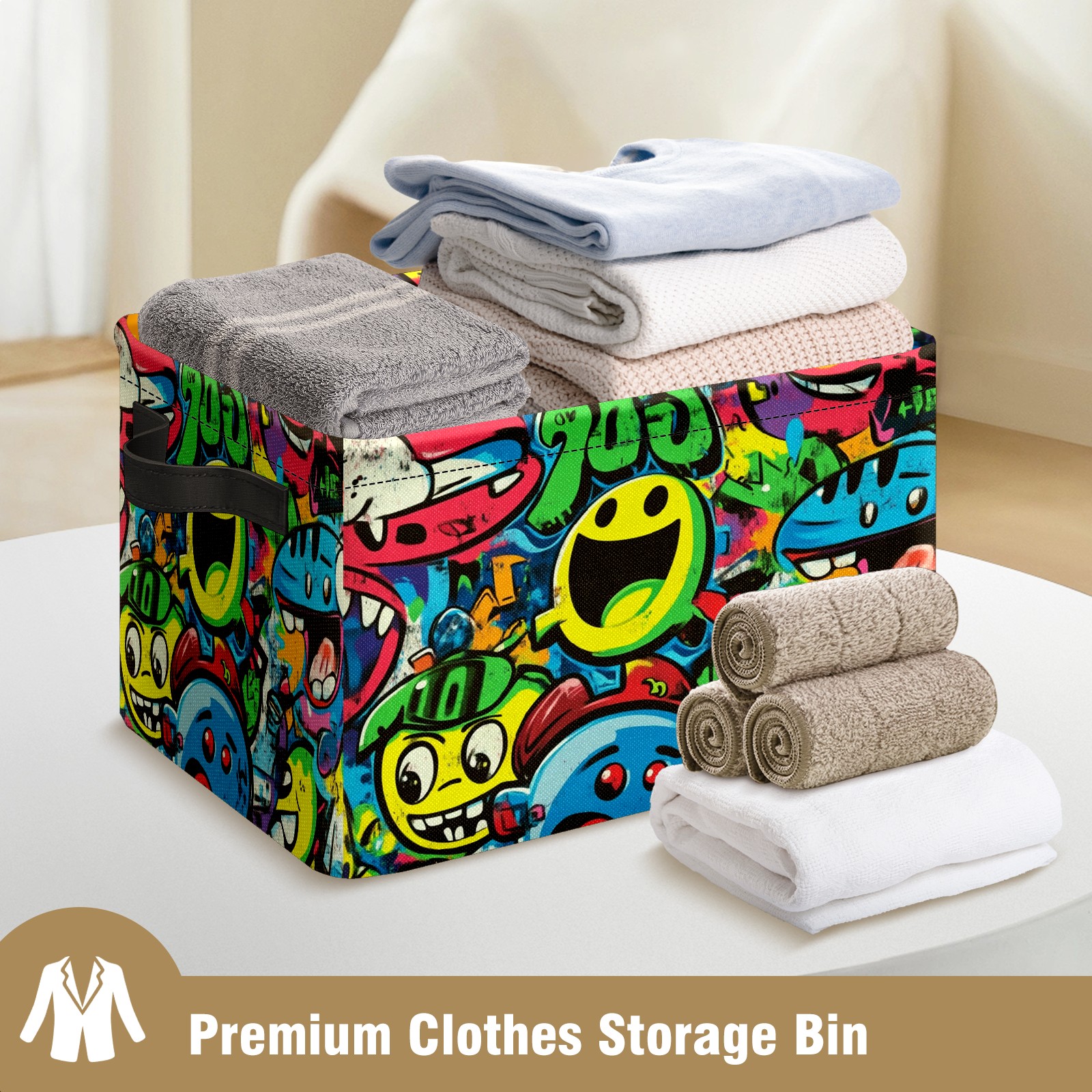 Foldable and Stackable Fabric Storage Basket for Home Organization with Handles, Decorative Closet Bins for Shelves and Laundry Storage( Vibrant Cartoon-style Pattern)