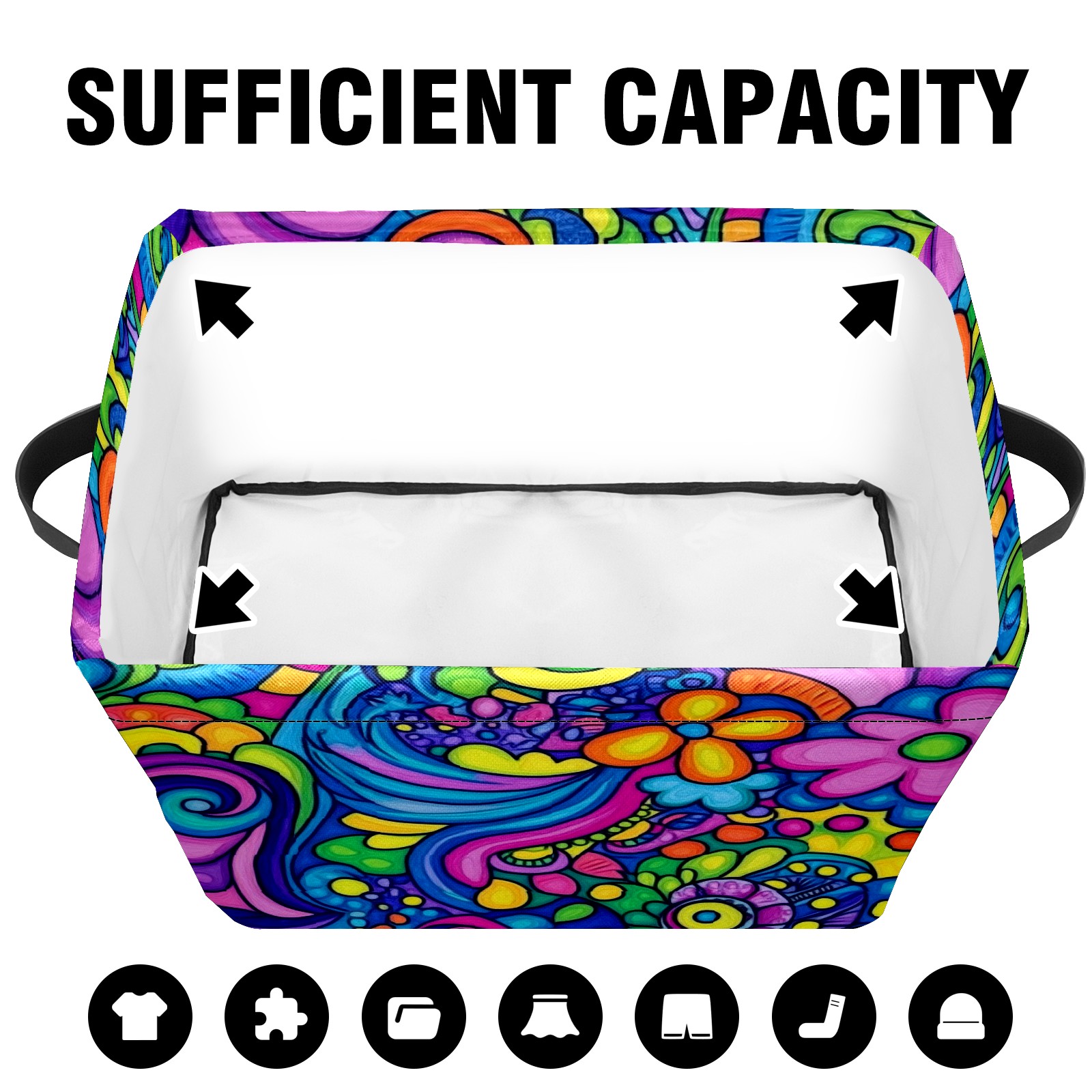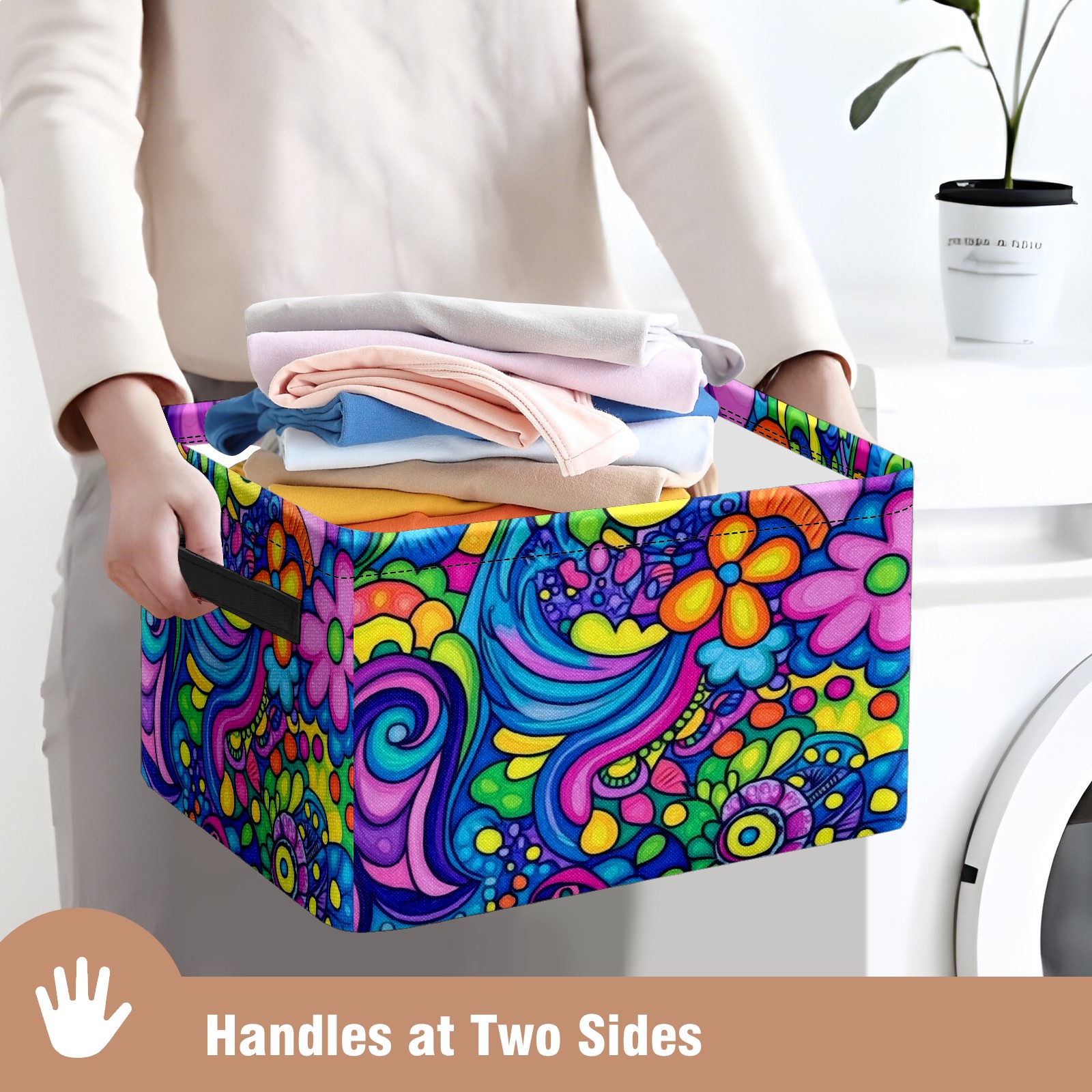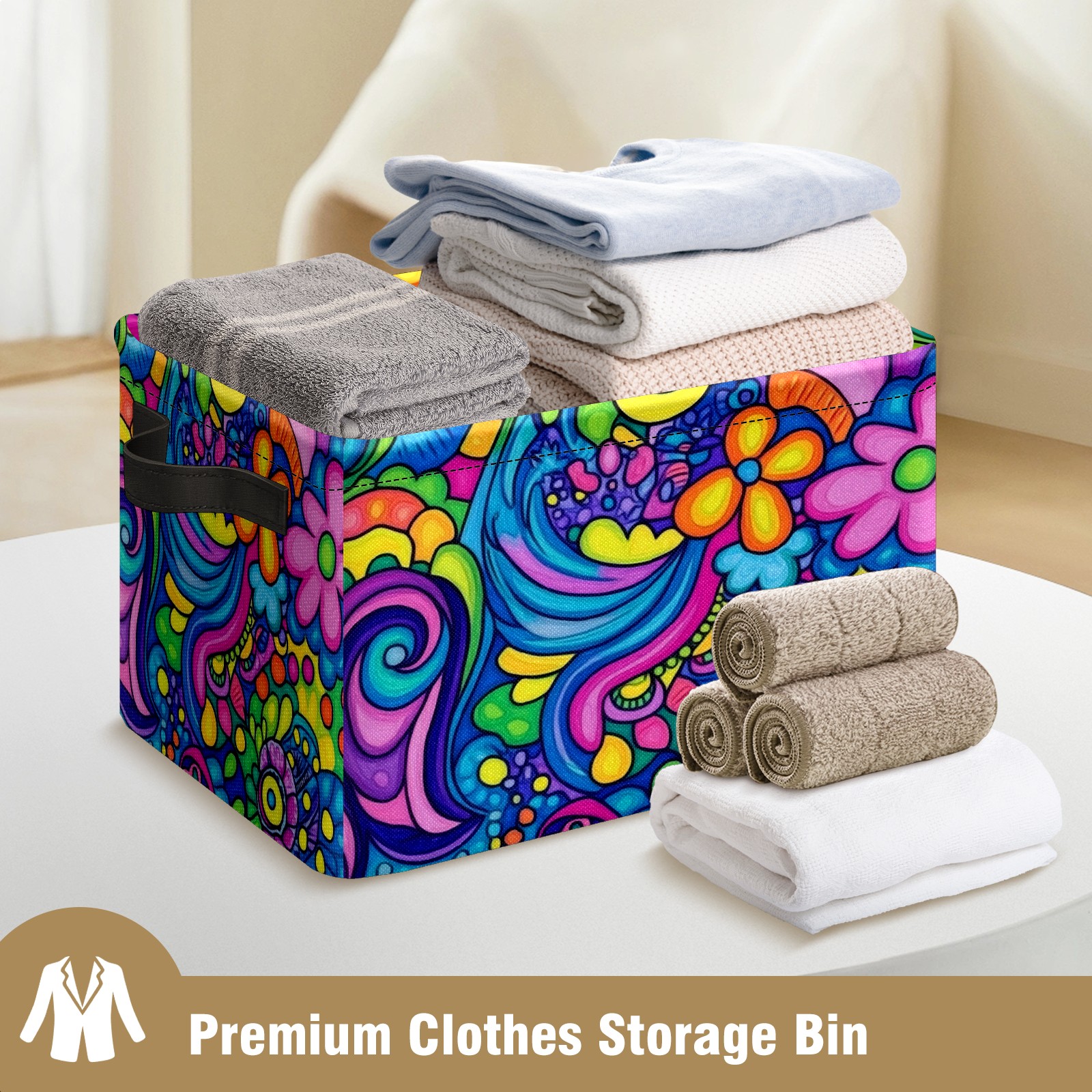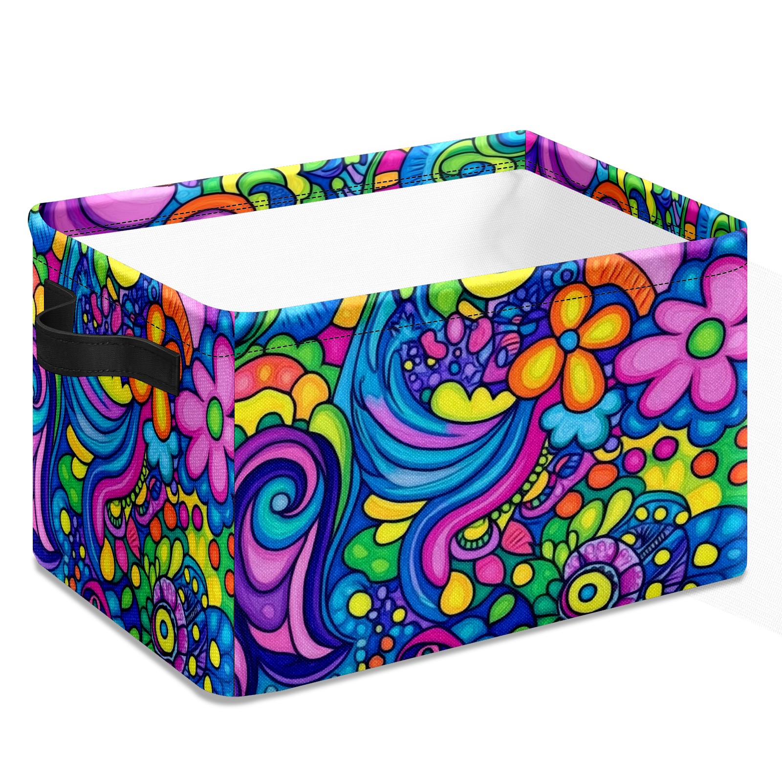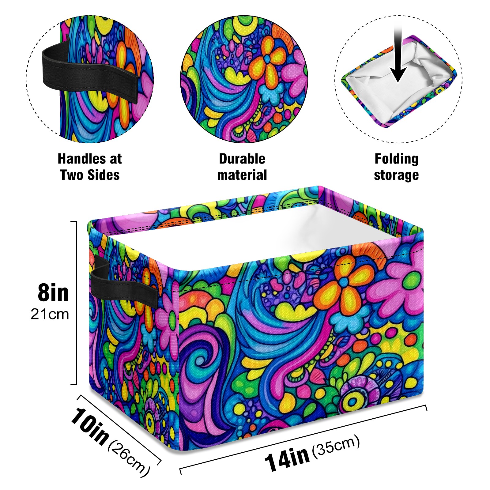 Foldable and Stackable Fabric Storage Basket for Home Organization with Handles, Decorative Closet Bins for Shelves and Laundry Storage( Psychedelic Pattern)