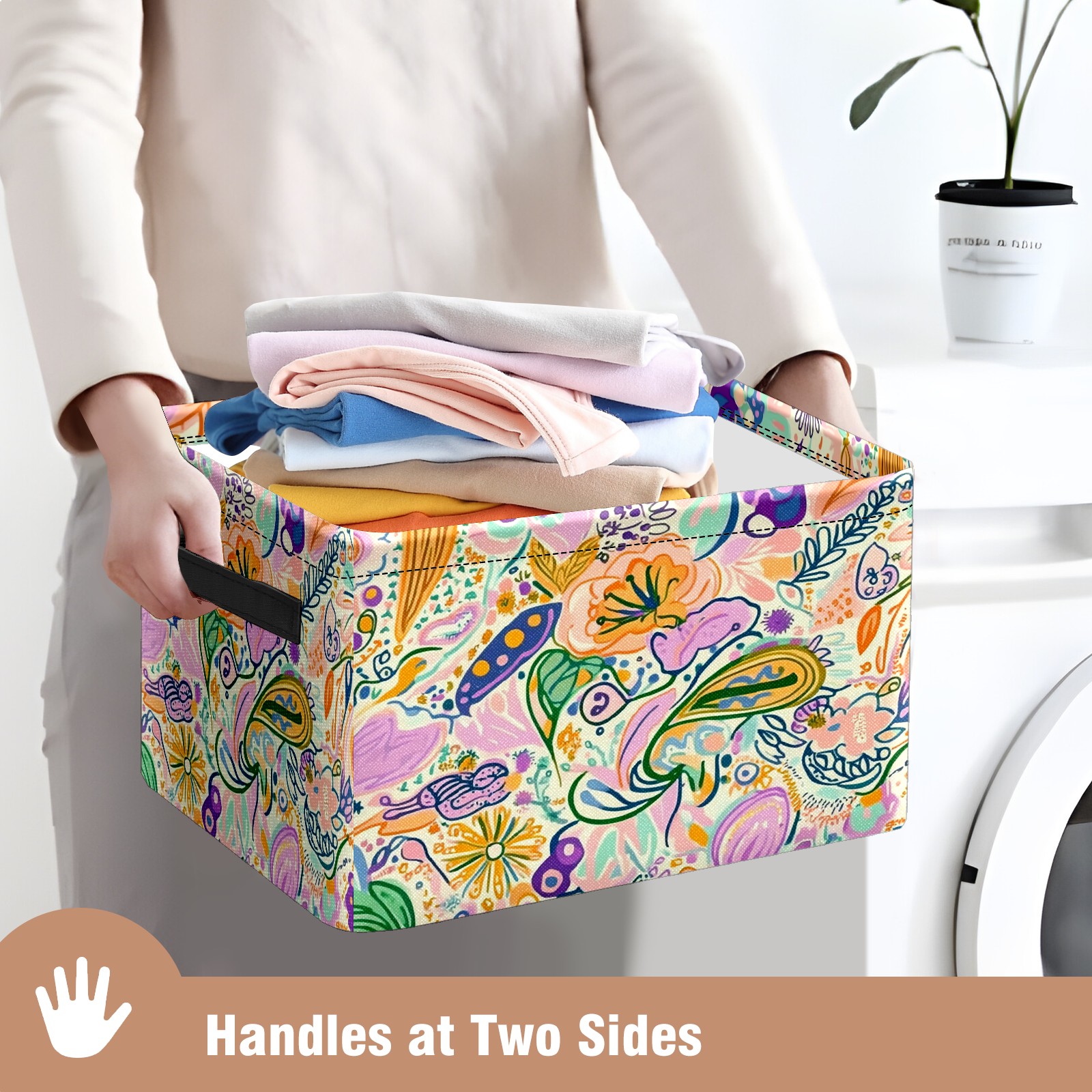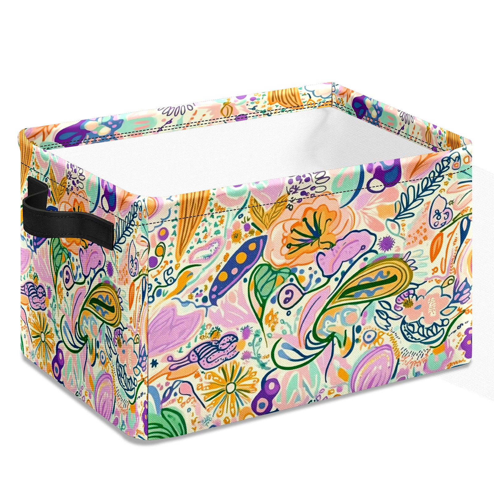 Foldable and Stackable Fabric Storage Basket for Home Organization with Handles, Decorative Closet Bins for Shelves and Laundry Storage( Intricate Doodle Pattern)