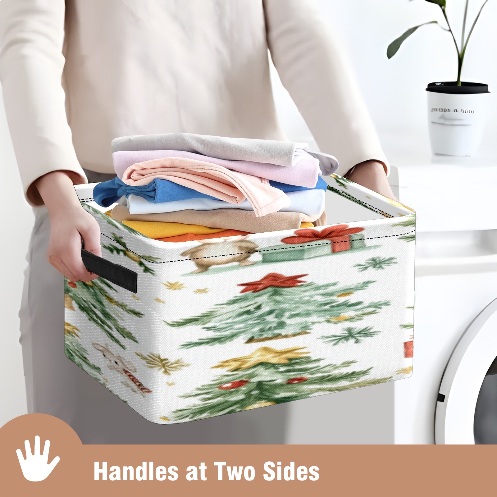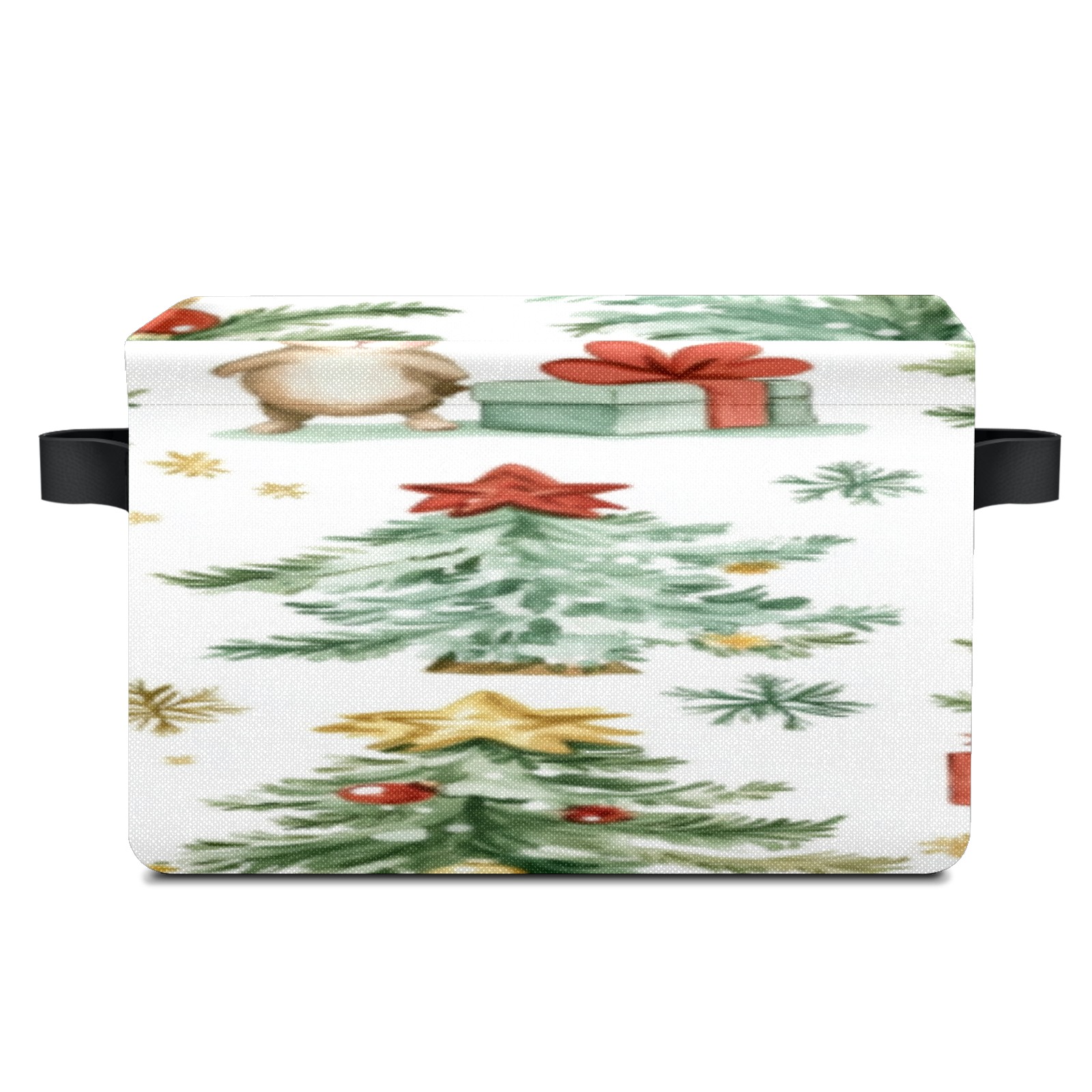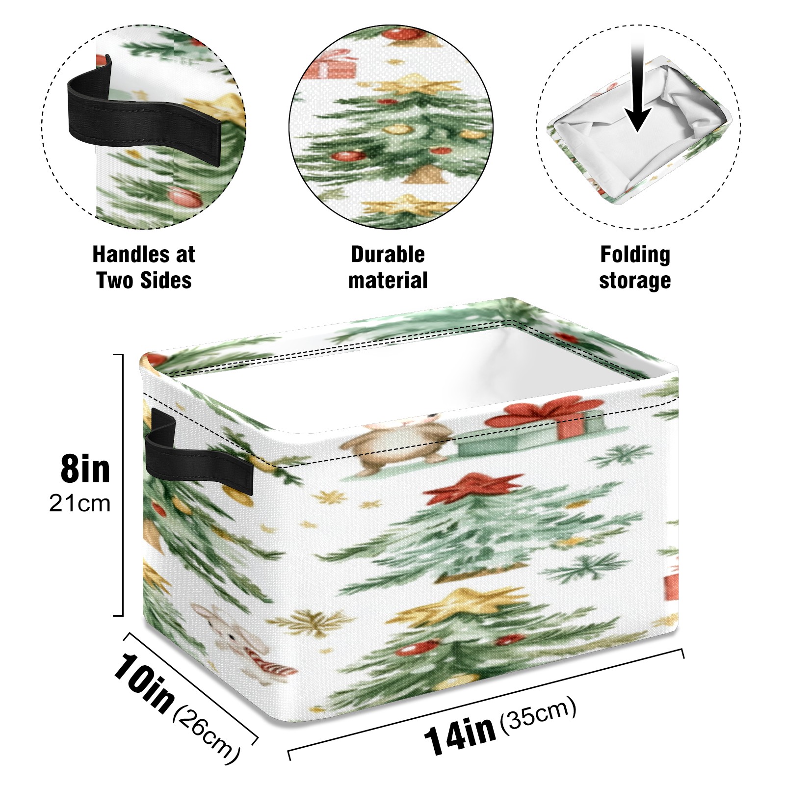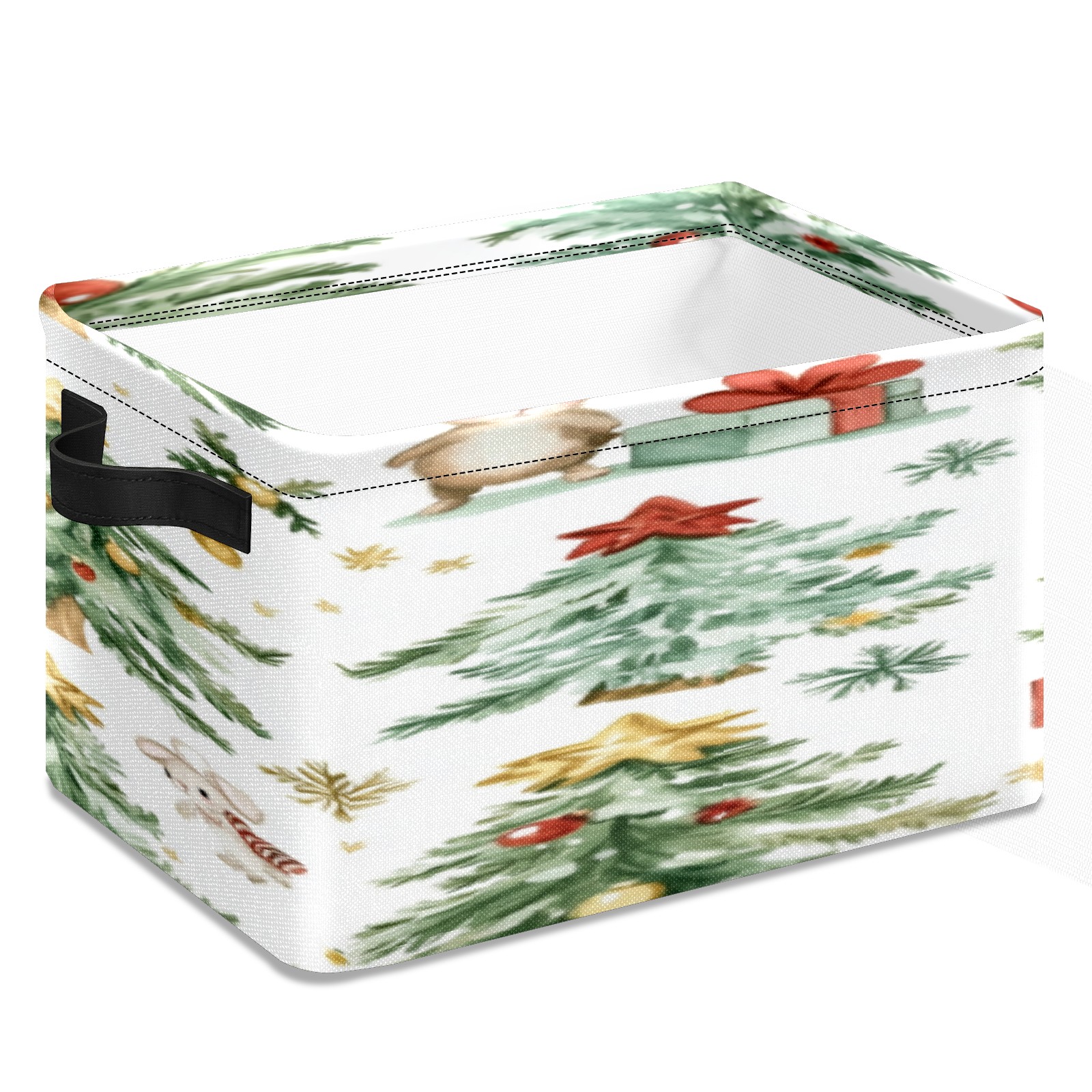 1 Pack Woven Storage Baskets - Natural Seagrass Organizer Bins with Handles, Decorative Foldable Storage Watercolor Christmas Trees