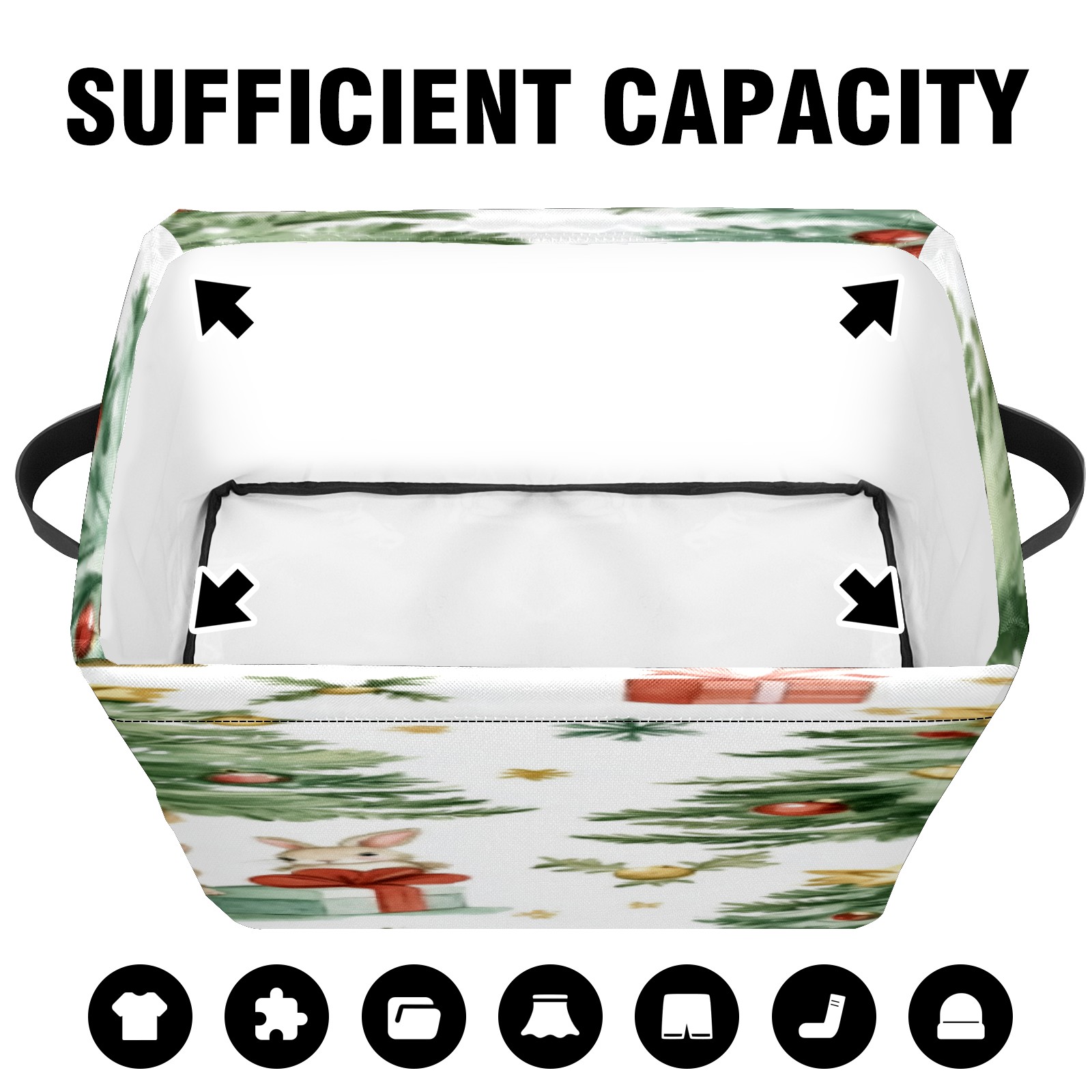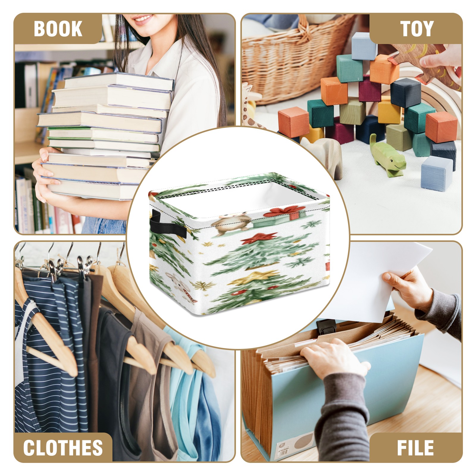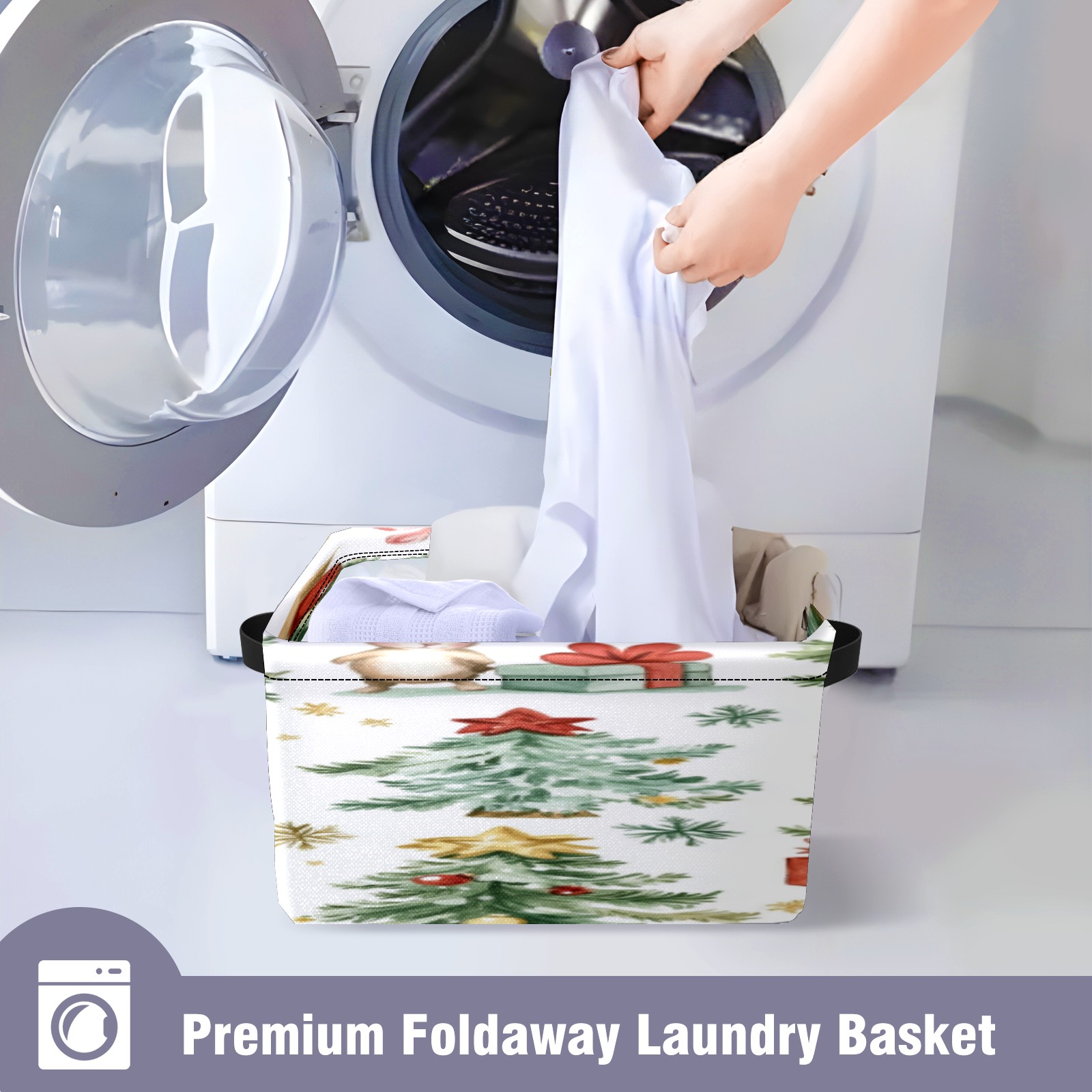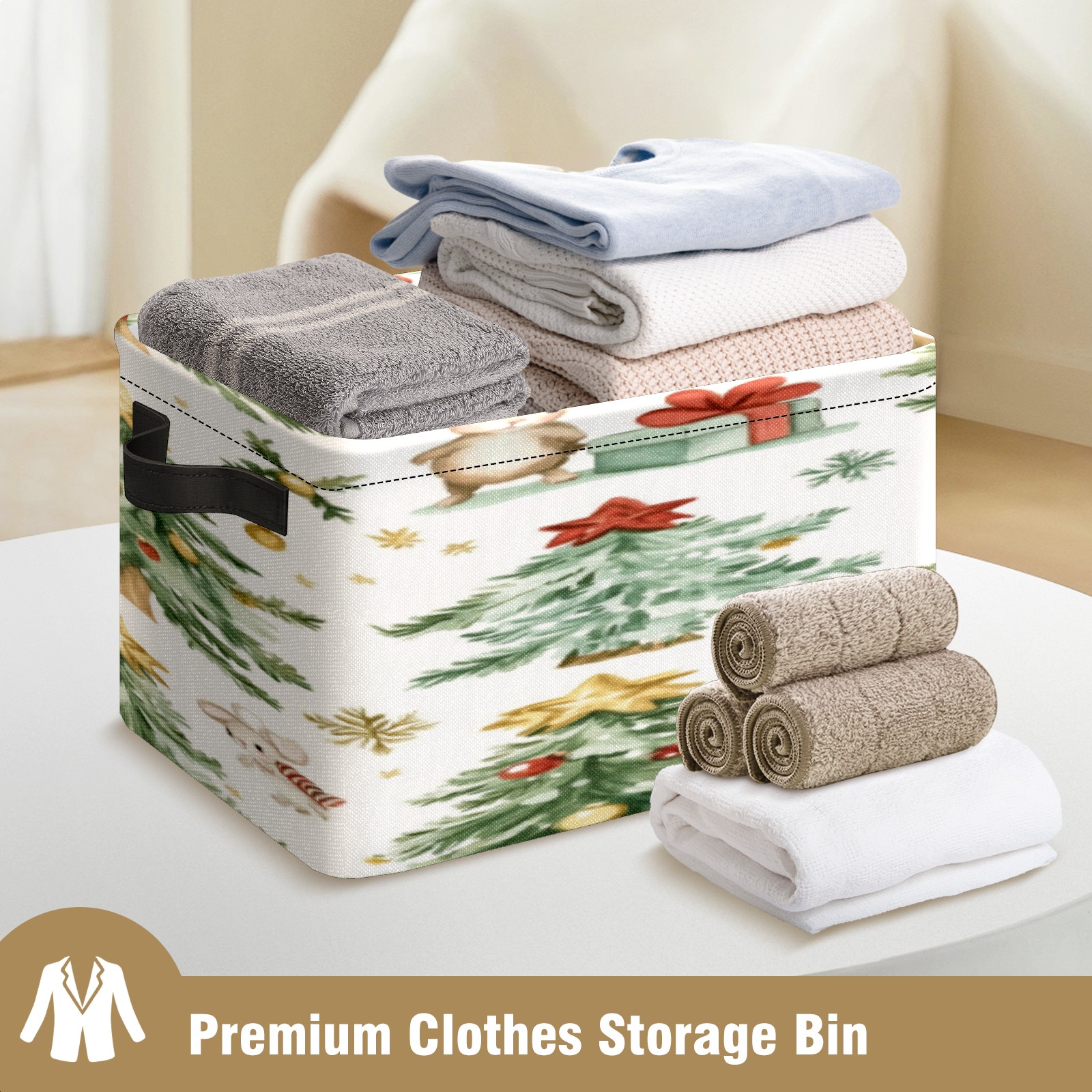 1 Pack Woven Storage Baskets - Natural Seagrass Organizer Bins with Handles, Decorative Foldable Storage Watercolor Christmas Trees