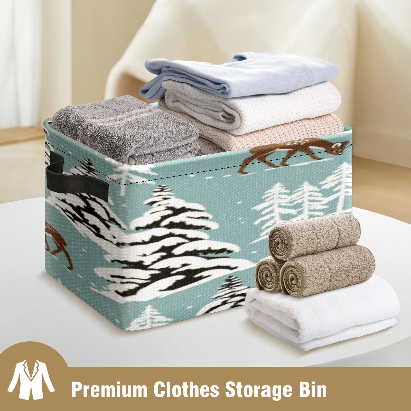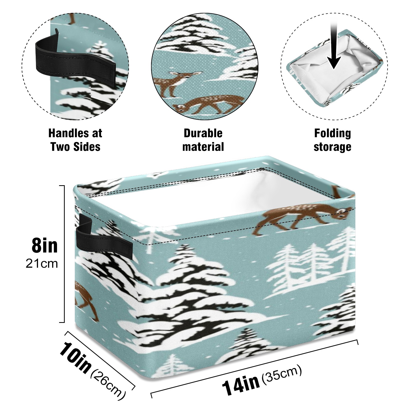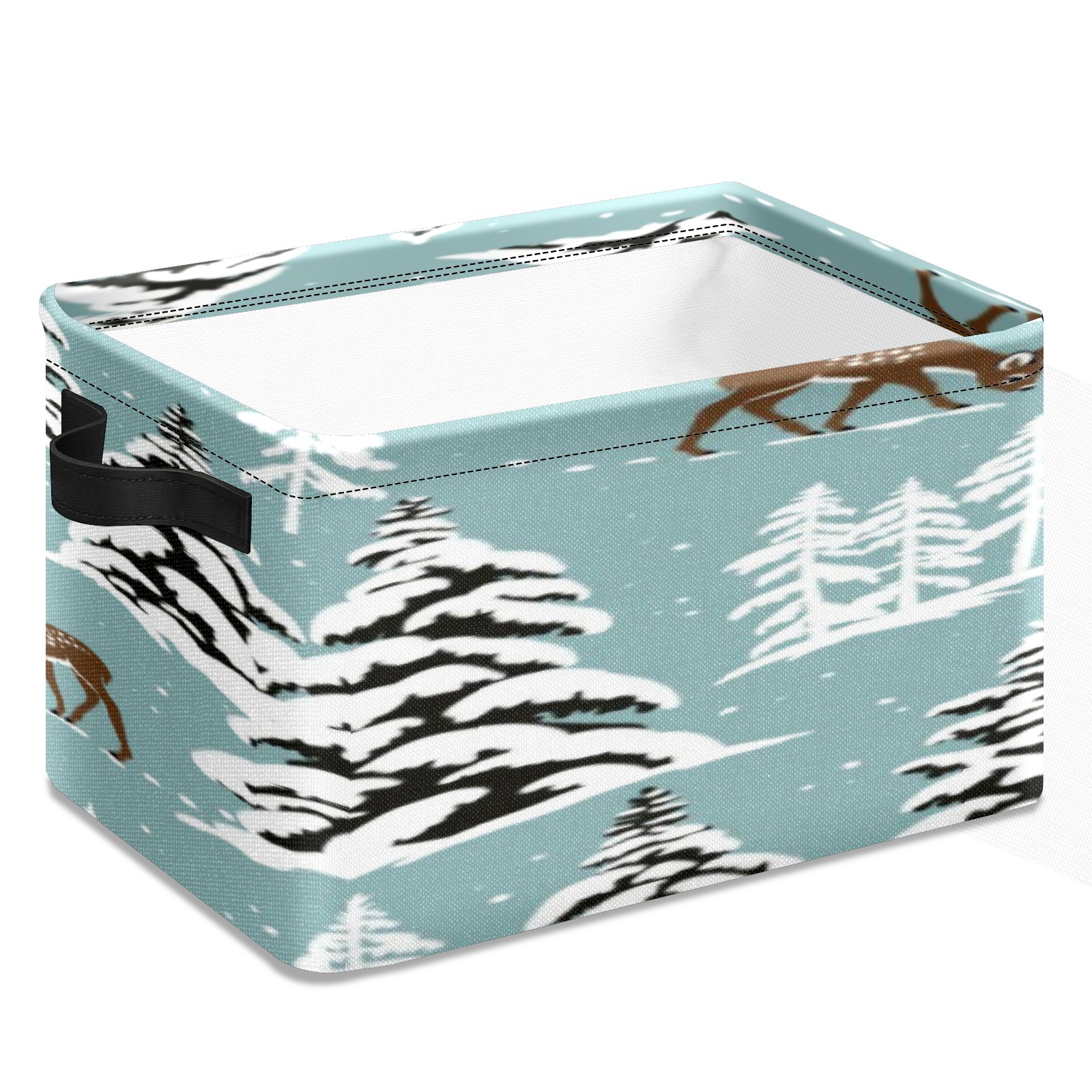 1 Pack Woven Storage Baskets - Natural Seagrass Organizer Bins with Handles, Decorative Foldable Storage Vintage Snowy Deer