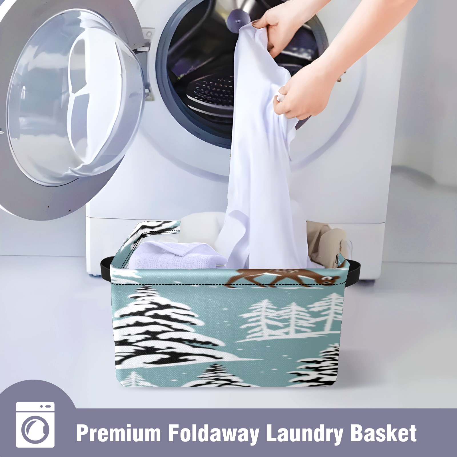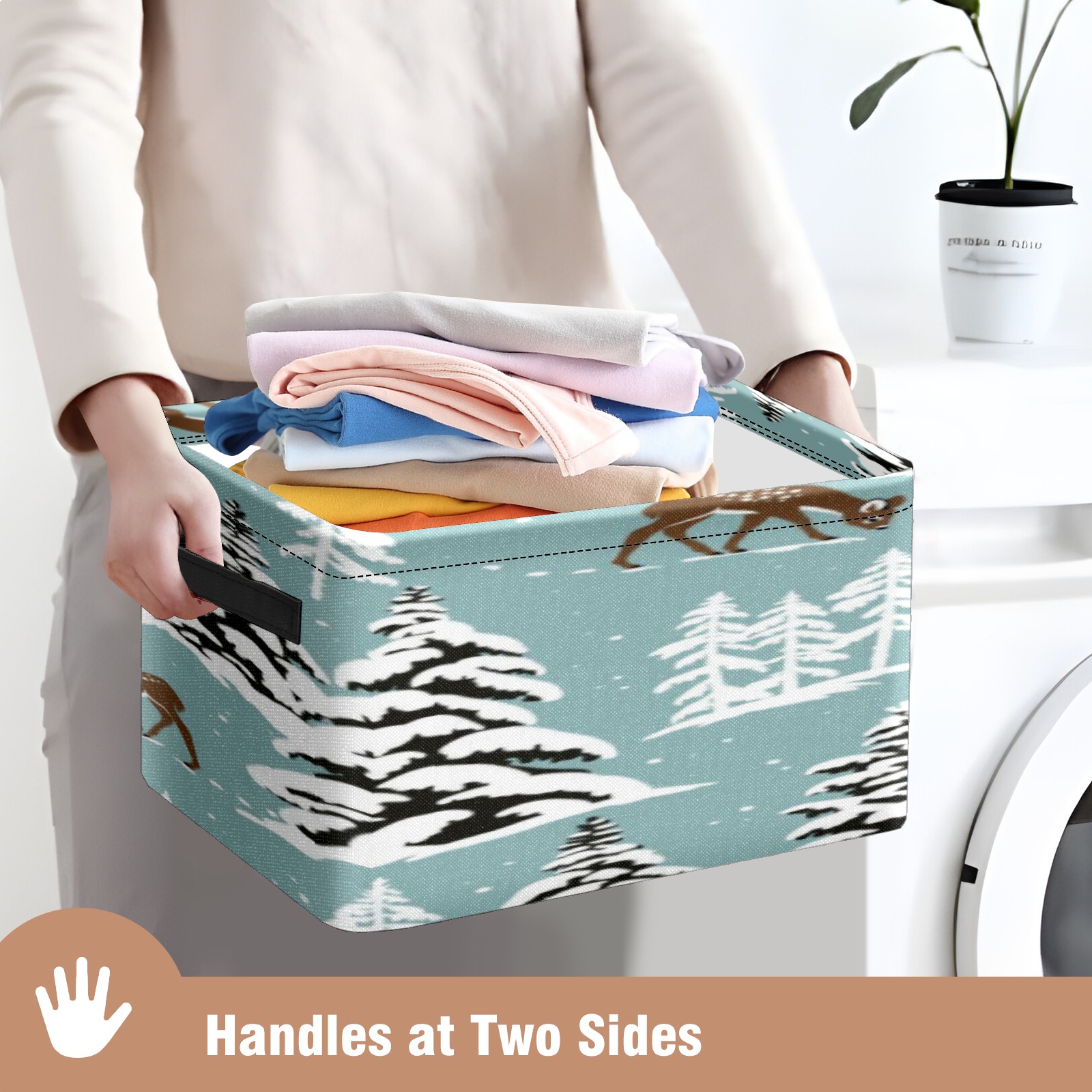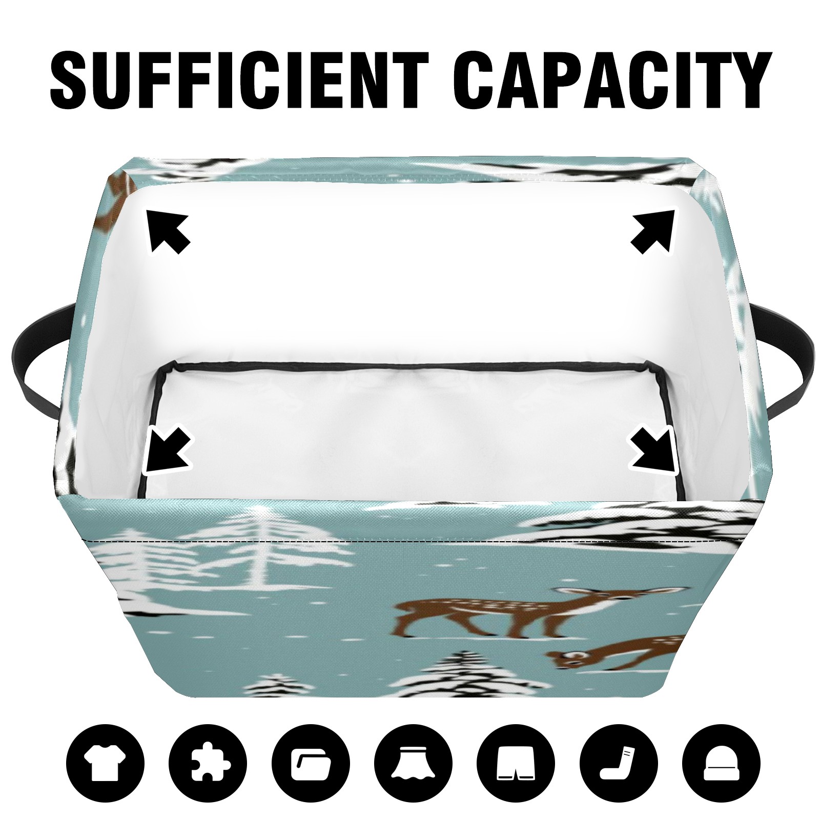 1 Pack Woven Storage Baskets - Natural Seagrass Organizer Bins with Handles, Decorative Foldable Storage Vintage Snowy Deer