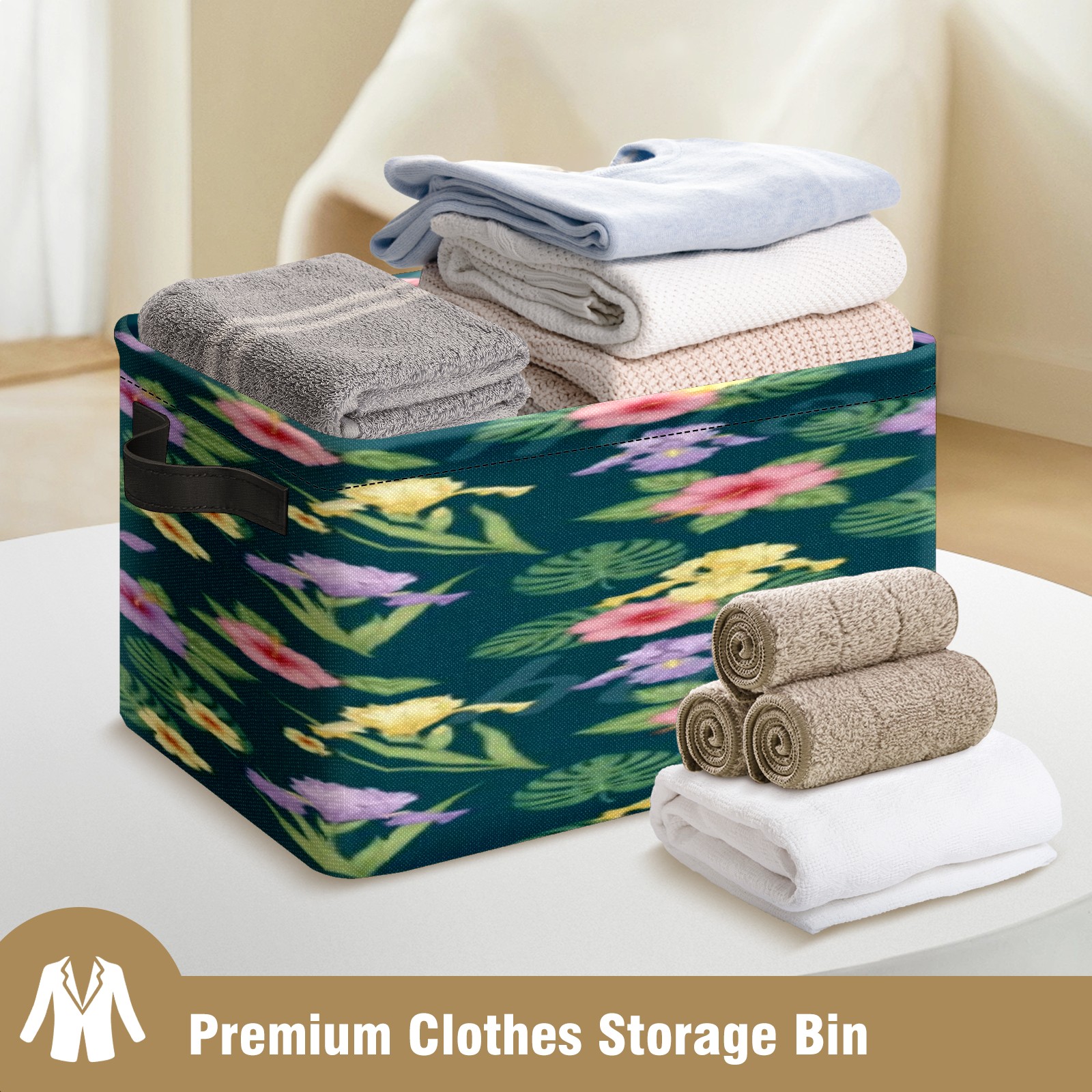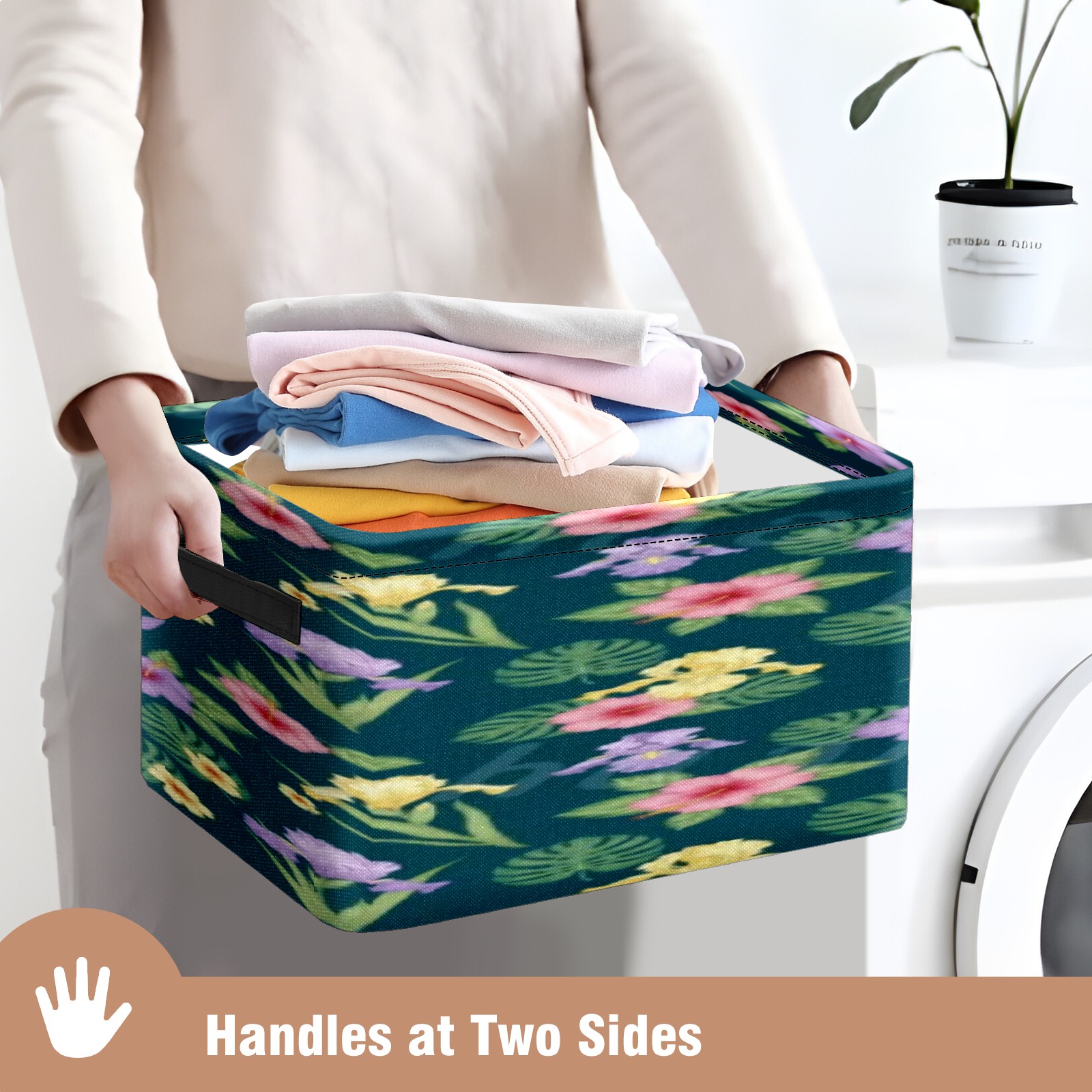 1 Pack Woven Storage Baskets - Natural Seagrass Organizer Bins with Handles, Decorative Foldable Storage Seamless Leaves