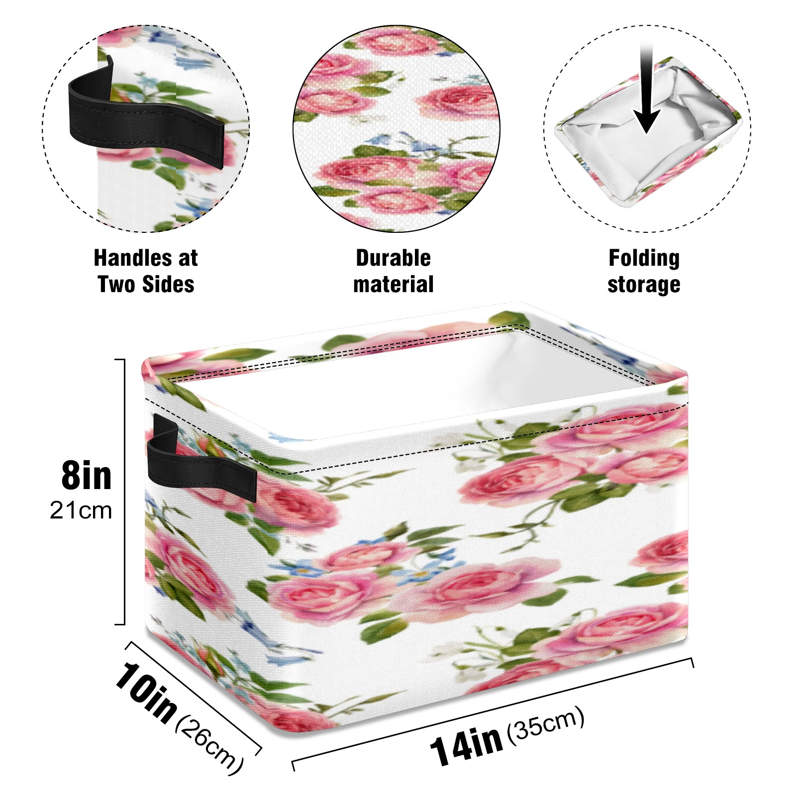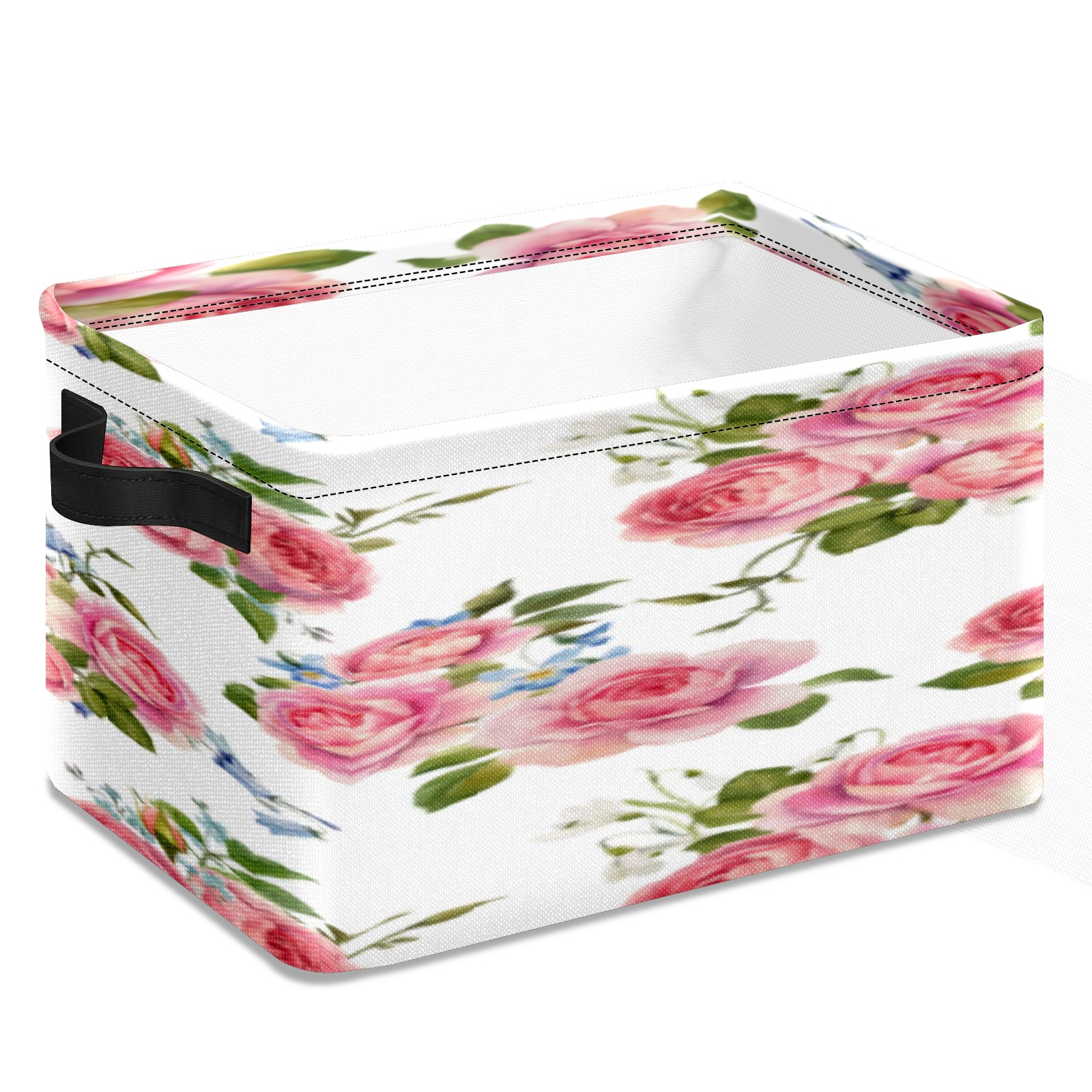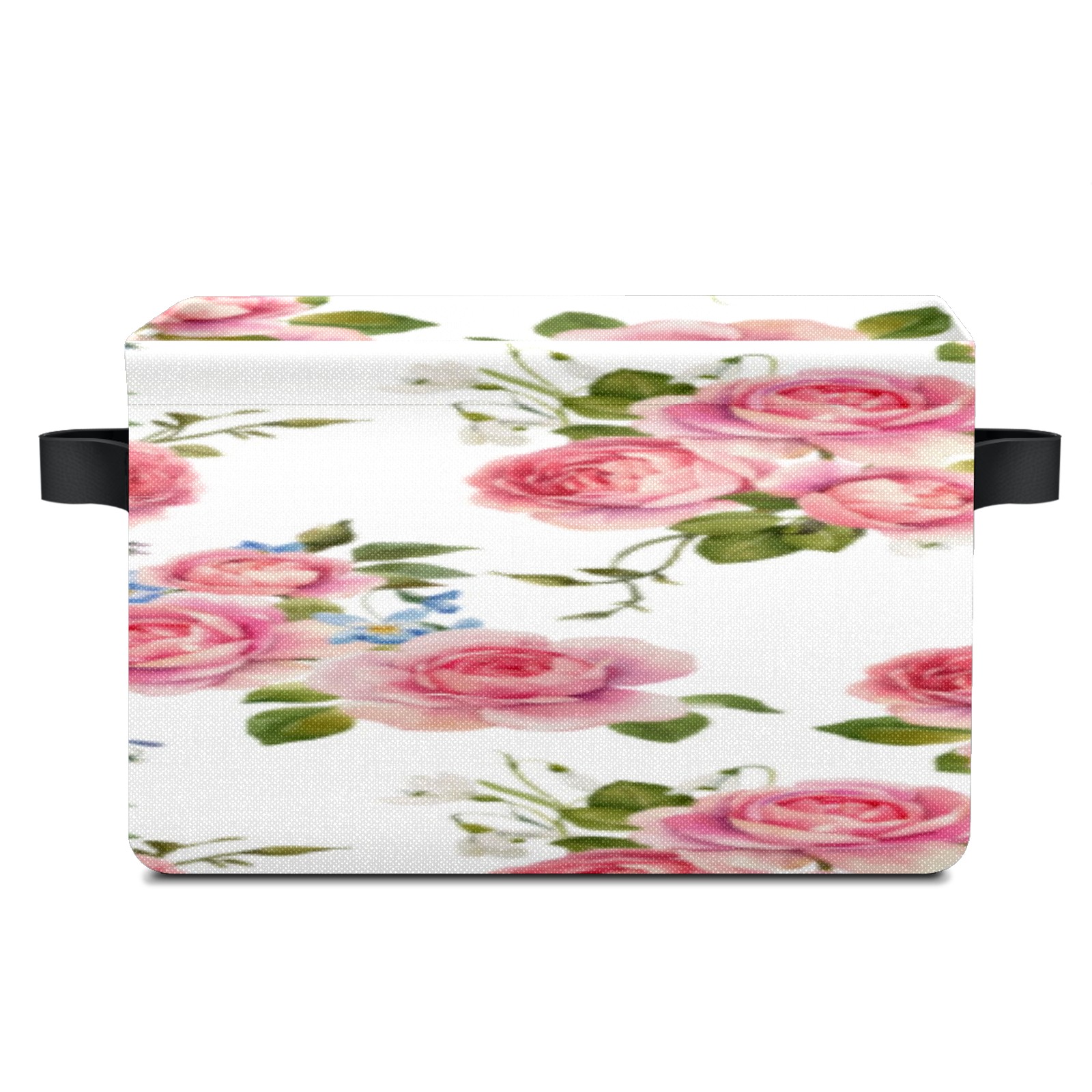 1 Pack Woven Storage Baskets - Natural Seagrass Organizer Bins with Handles, Decorative Foldable Storage Pink Rose Floral