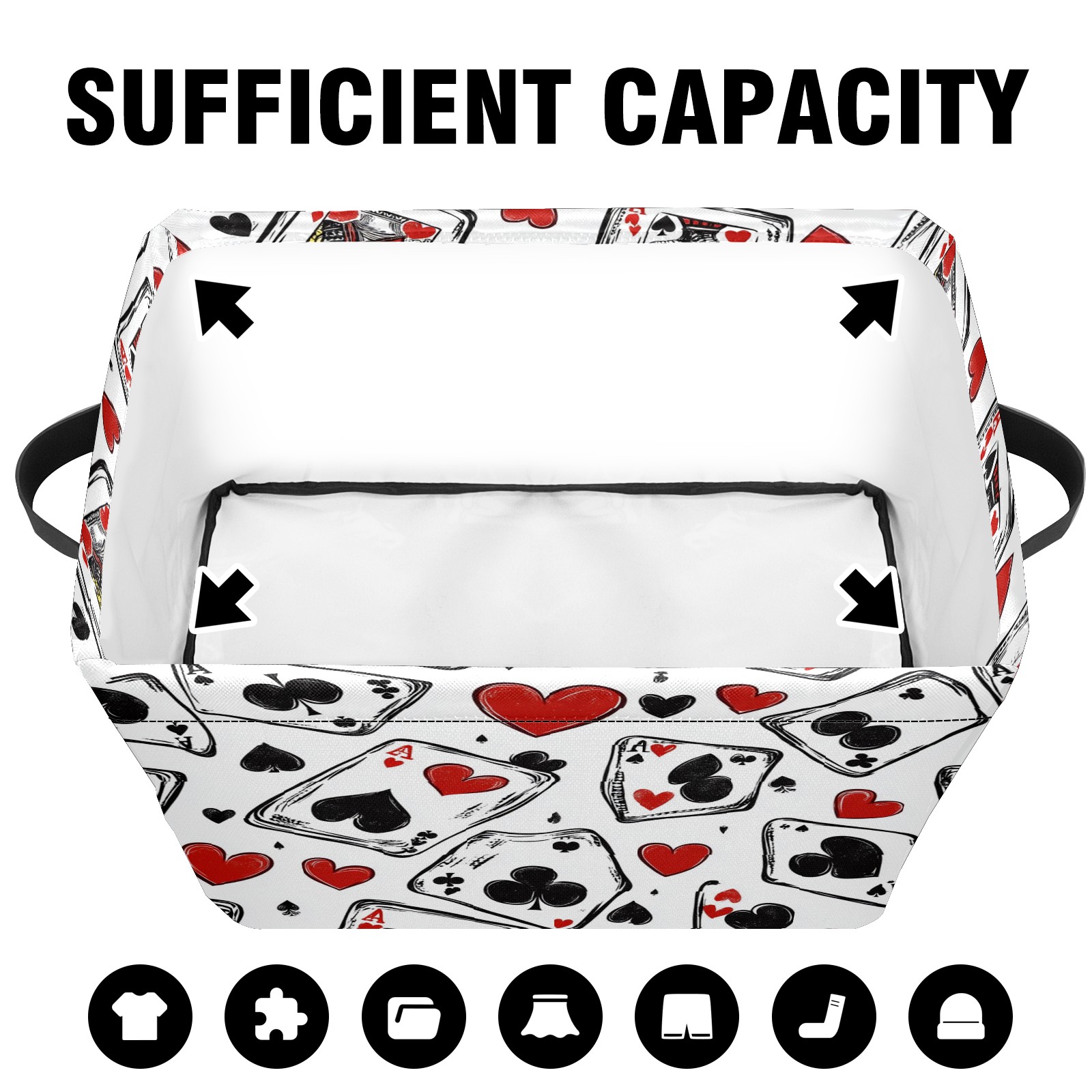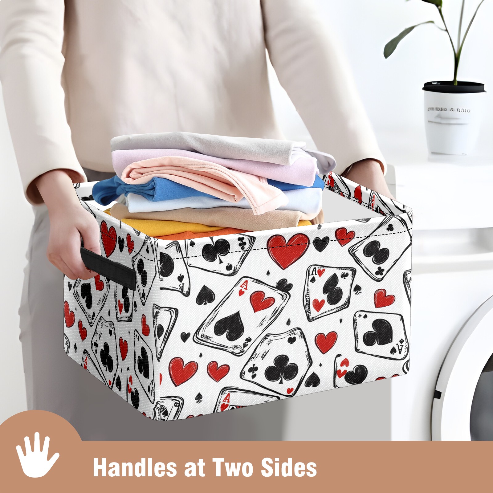 Foldable and Stackable Fabric Storage Basket for Home Organization with Handles, Decorative Closet Bins for Shelves and Laundry Storage( Hand-drawn Poker Cards)