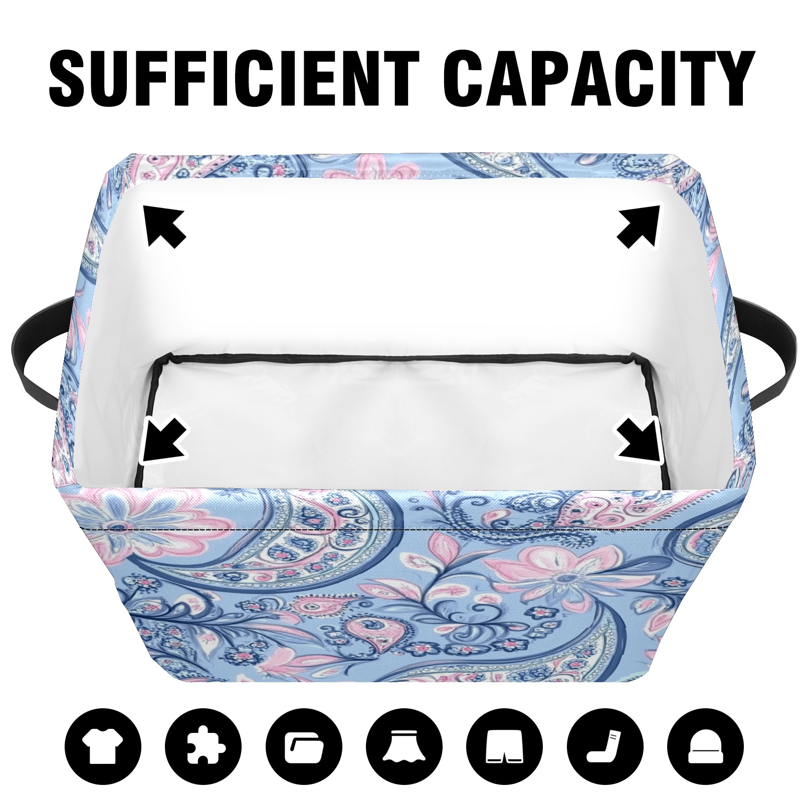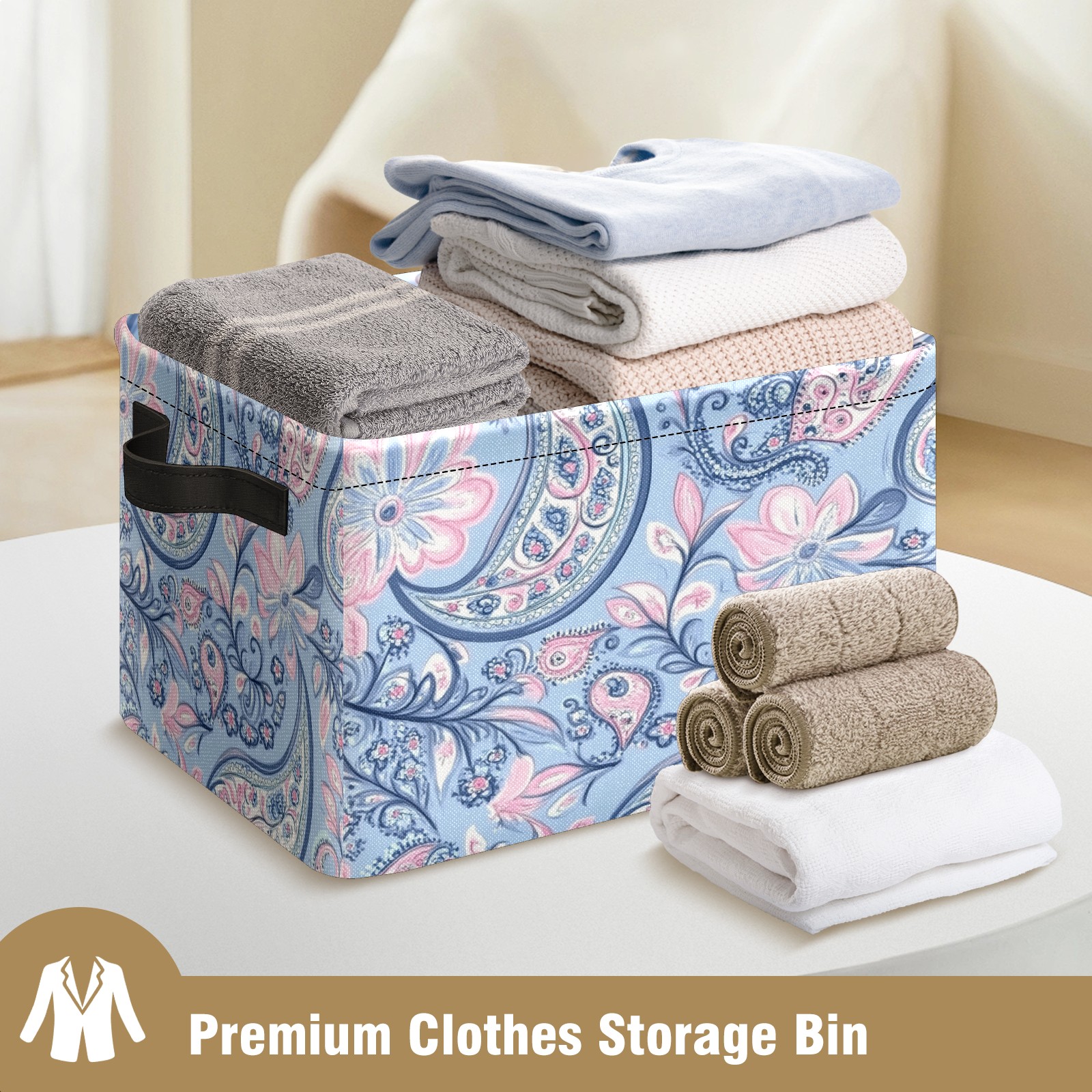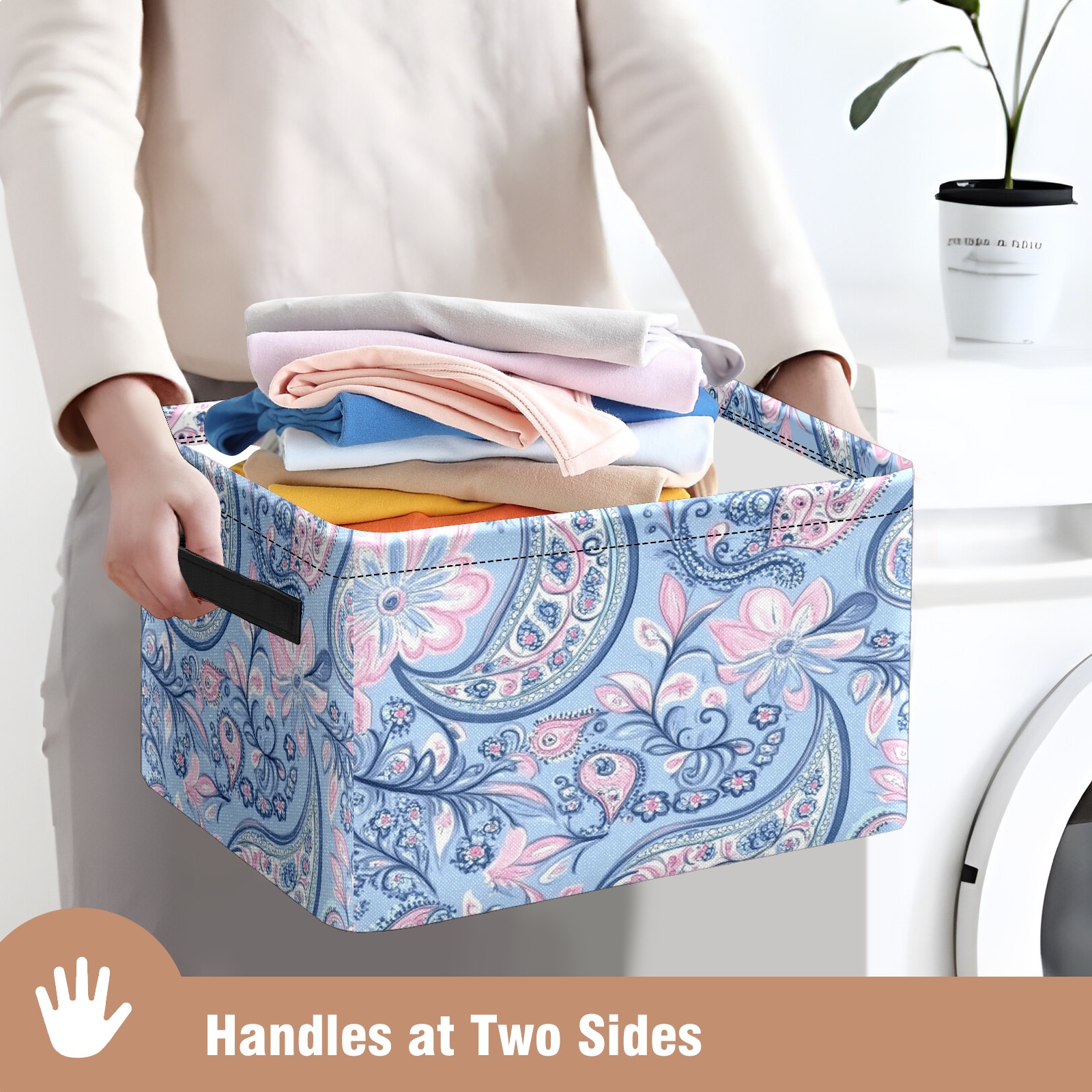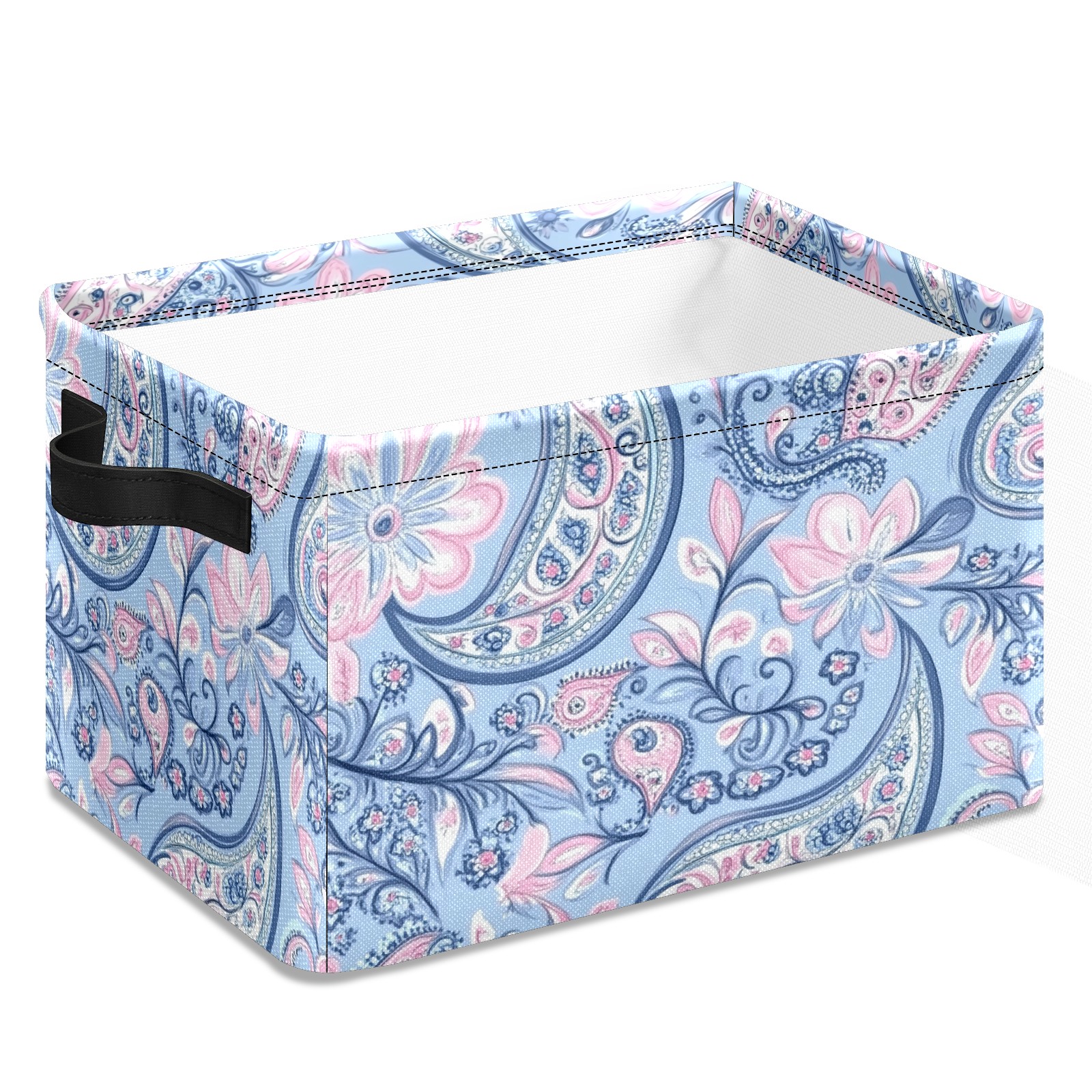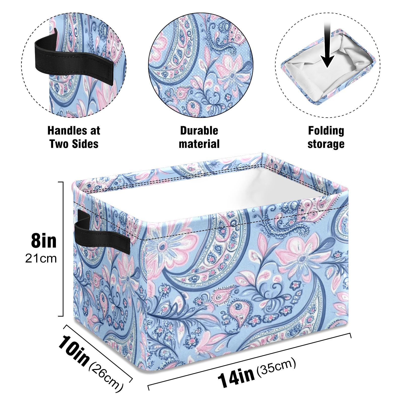 Foldable and Stackable Fabric Storage Basket for Home Organization with Handles, Decorative Closet Bins for Shelves and Laundry Storage( Blue Paisley)