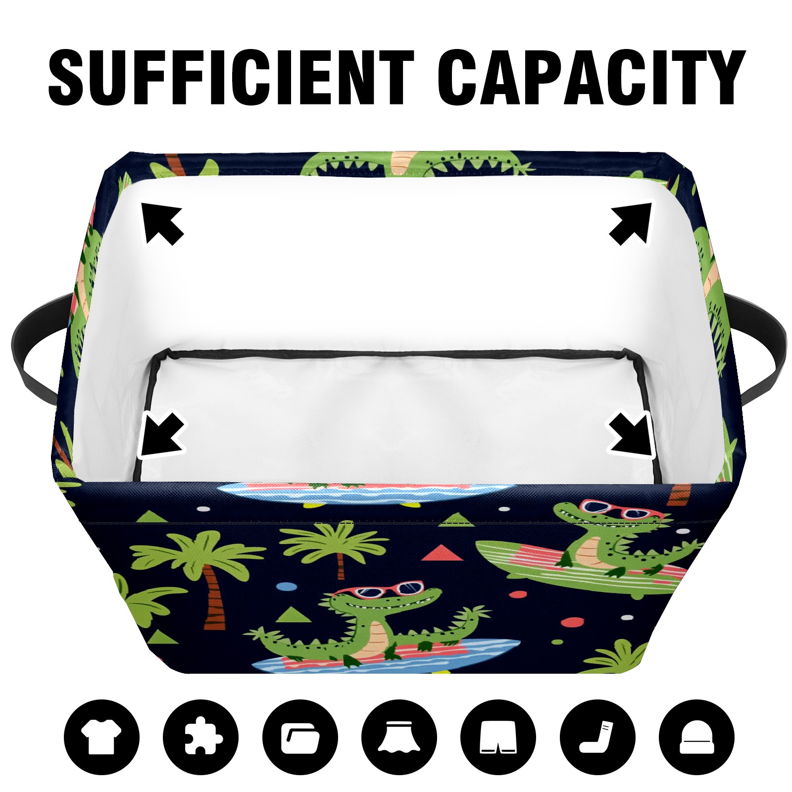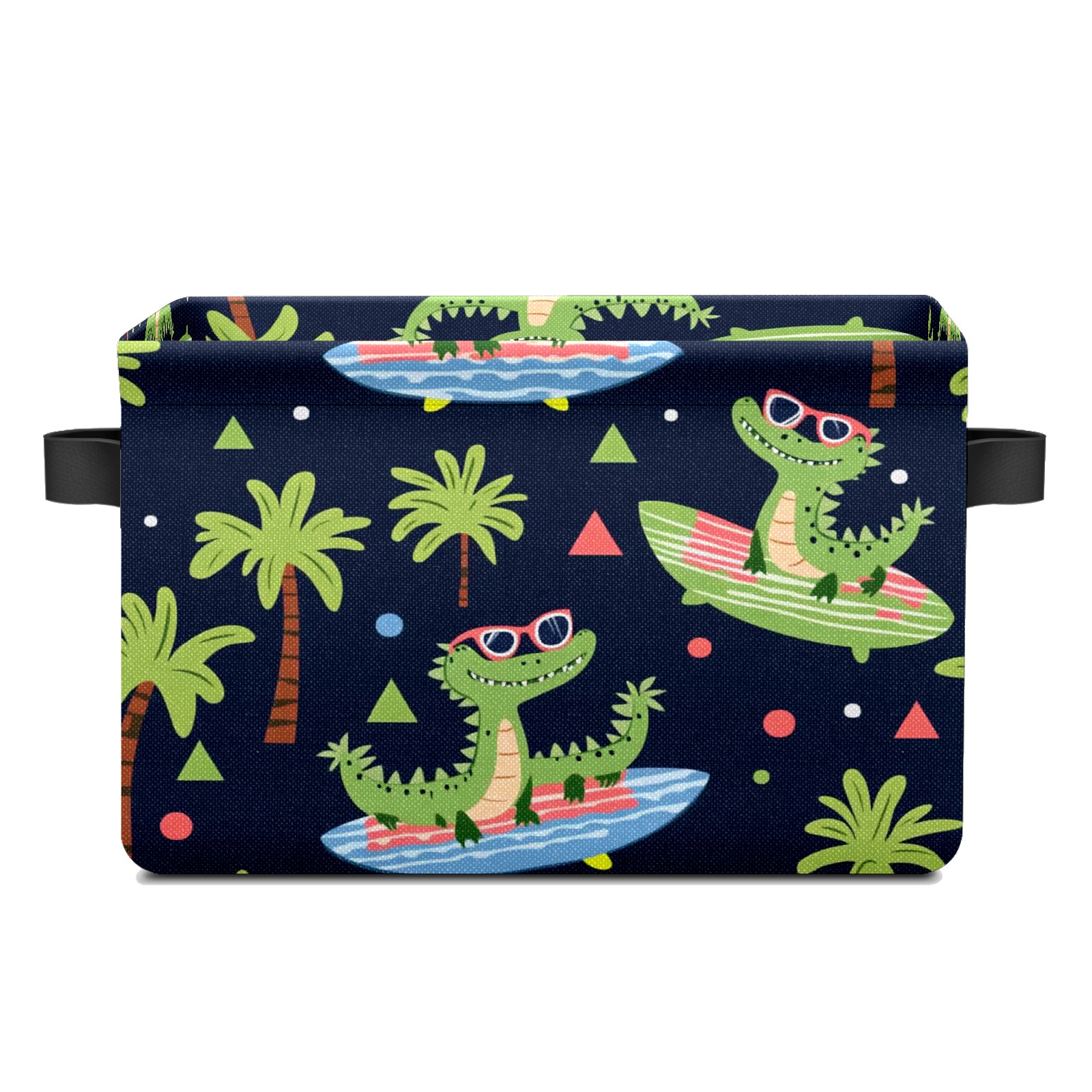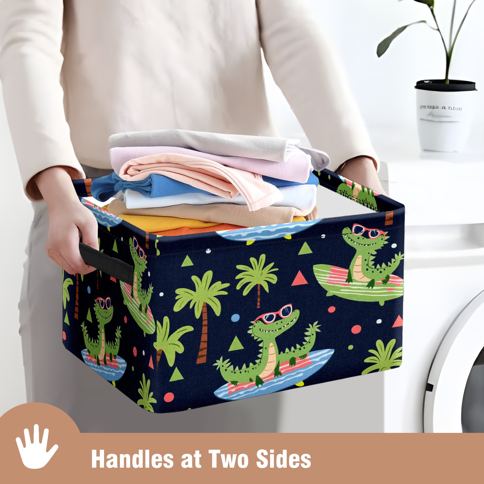 Foldable and Stackable Fabric Storage Basket for Home Organization with Handles, Decorative Closet Bins for Shelves and Laundry Storage( Crocodiles Surfing On Surfboards)