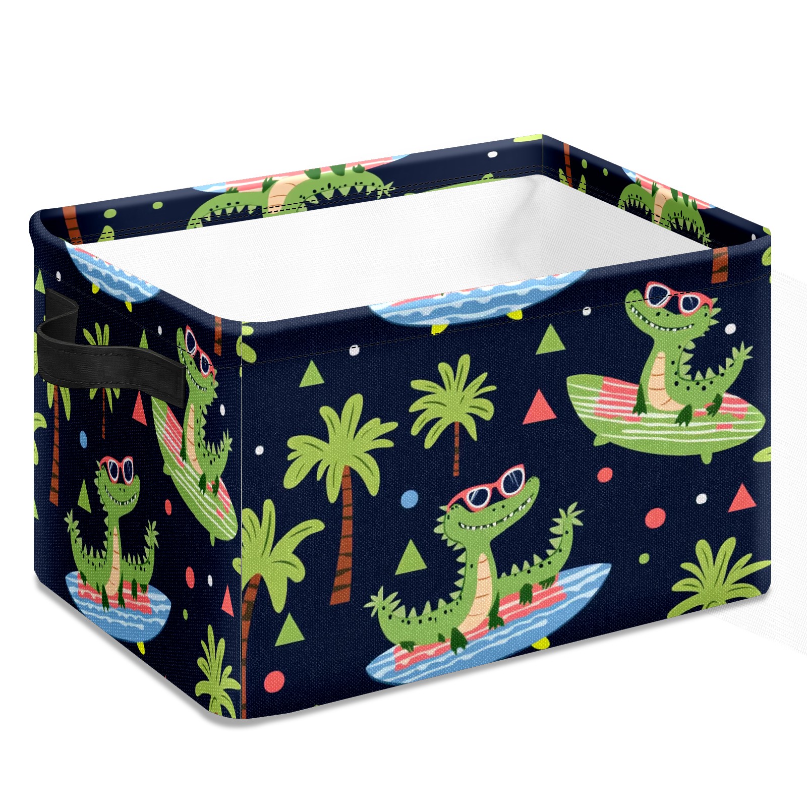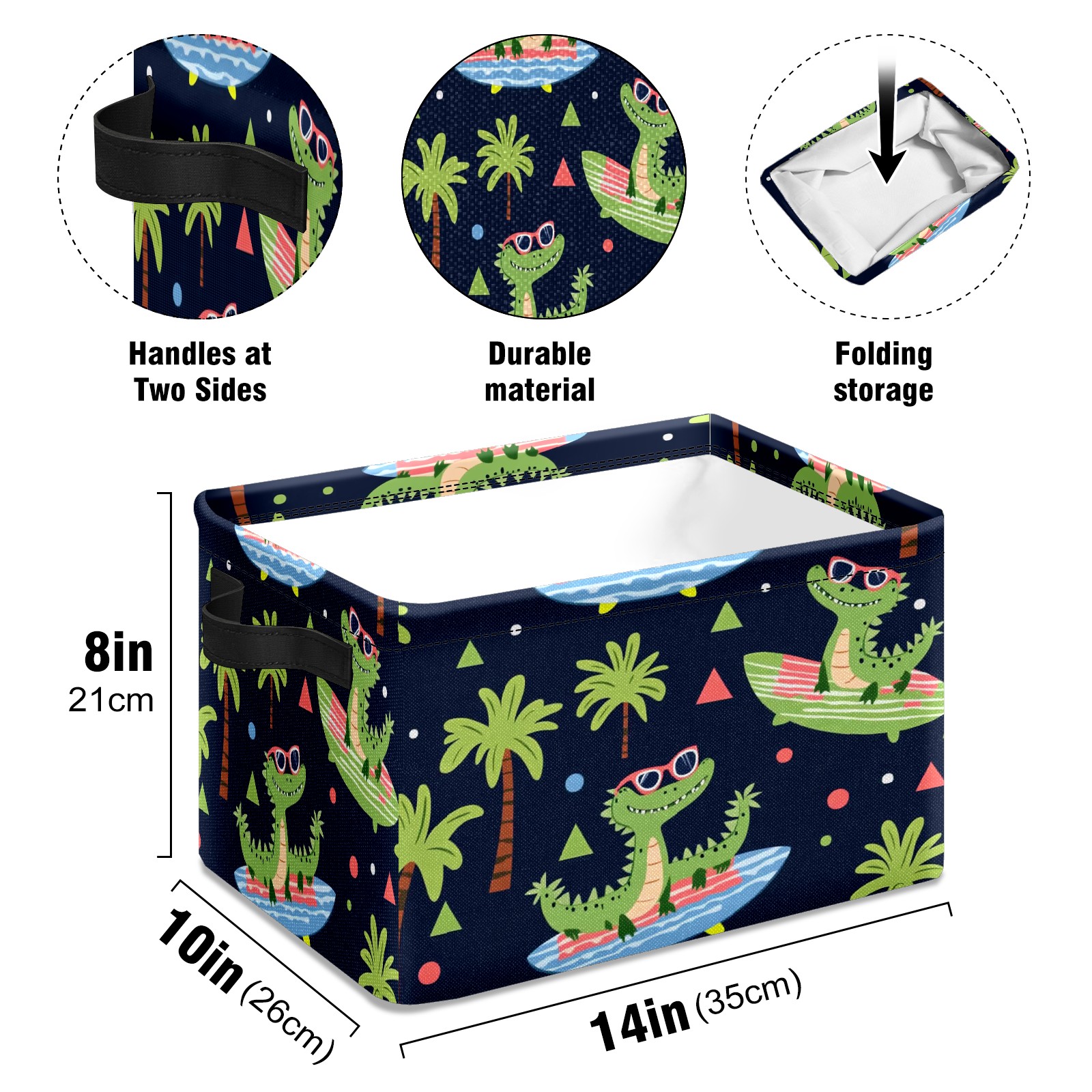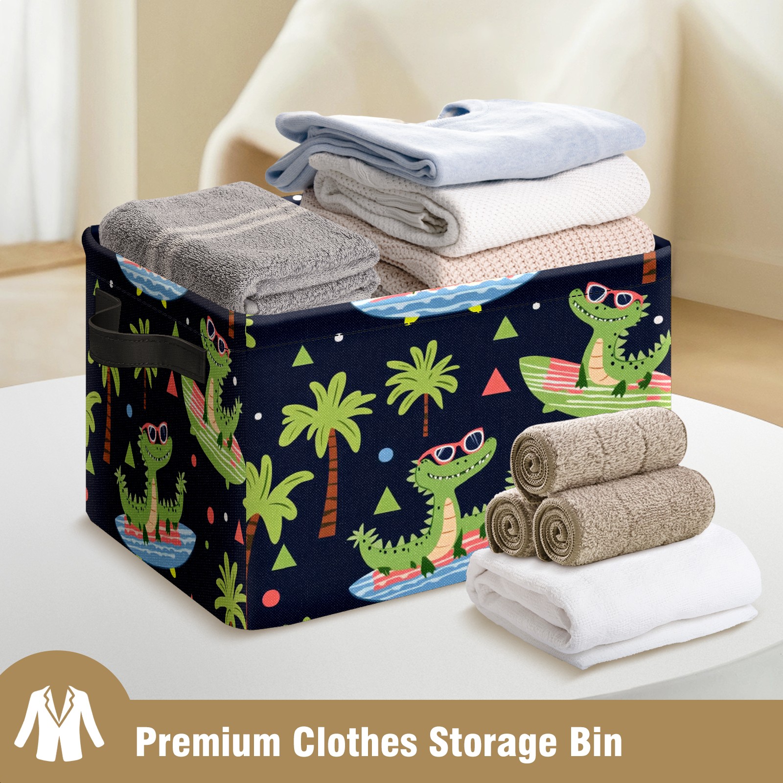 Foldable and Stackable Fabric Storage Basket for Home Organization with Handles, Decorative Closet Bins for Shelves and Laundry Storage( Crocodiles Surfing On Surfboards)