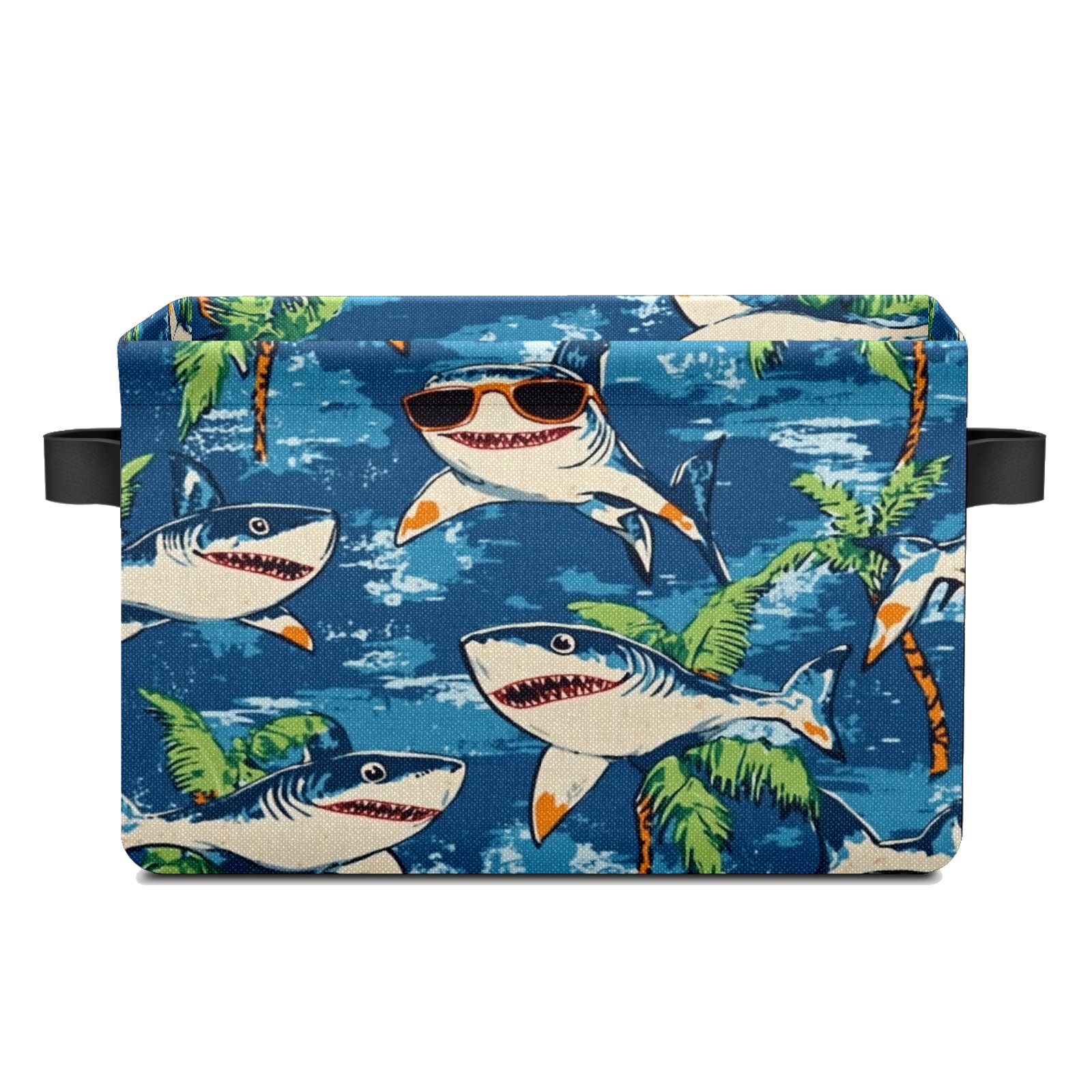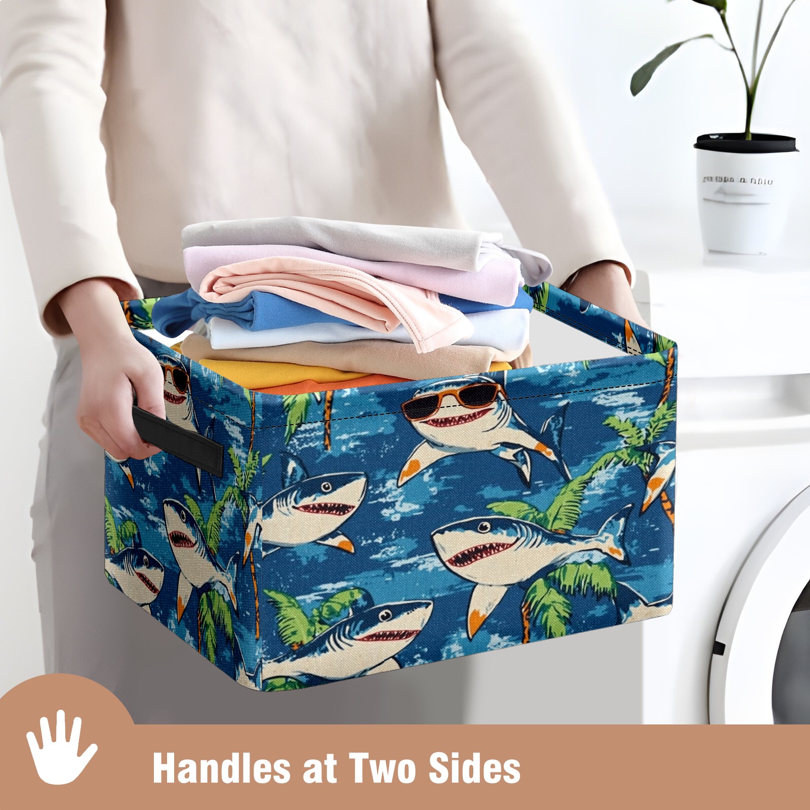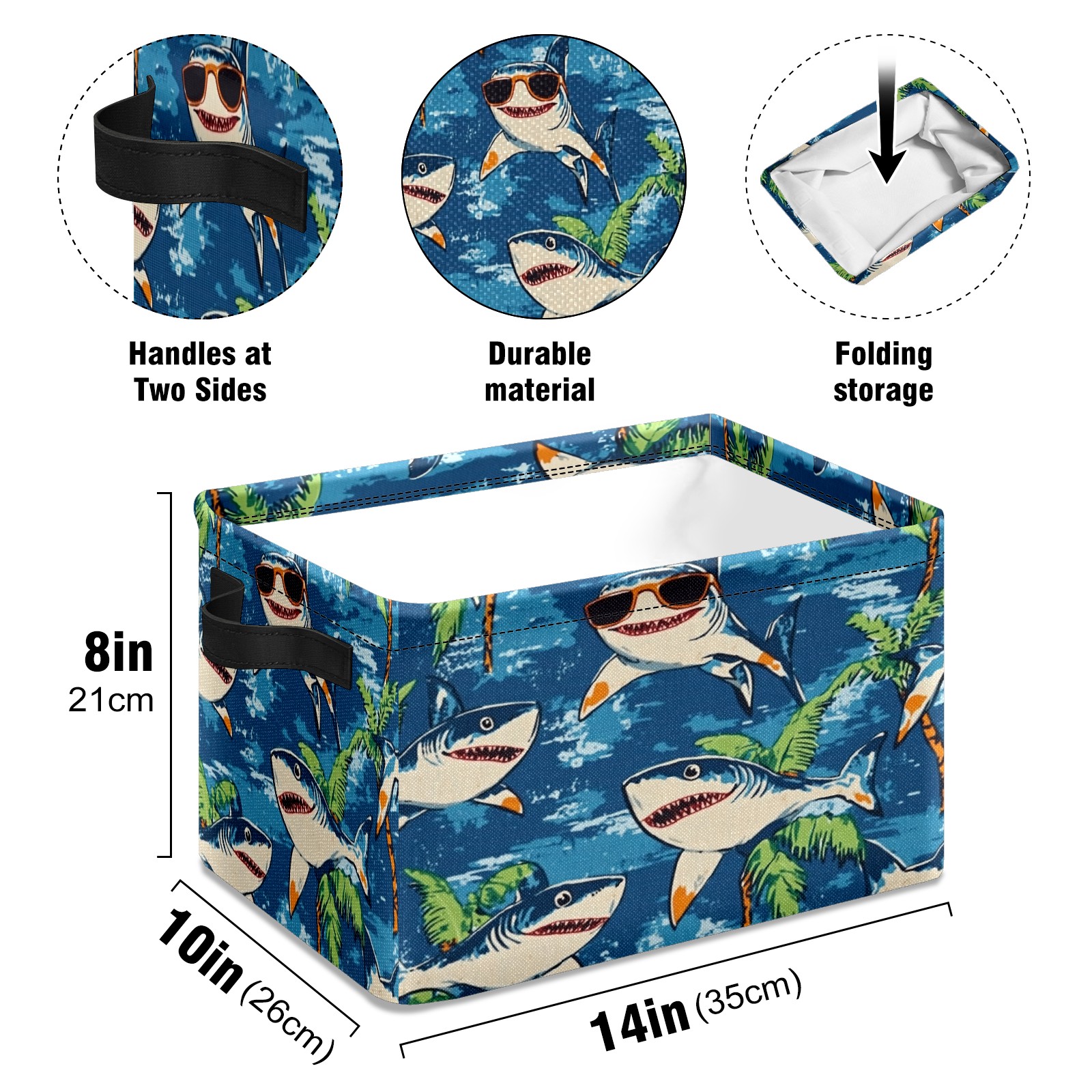 Foldable and Stackable Fabric Storage Basket for Home Organization with Handles, Decorative Closet Bins for Shelves and Laundry Storage( Shark Wearing Sunglasses)