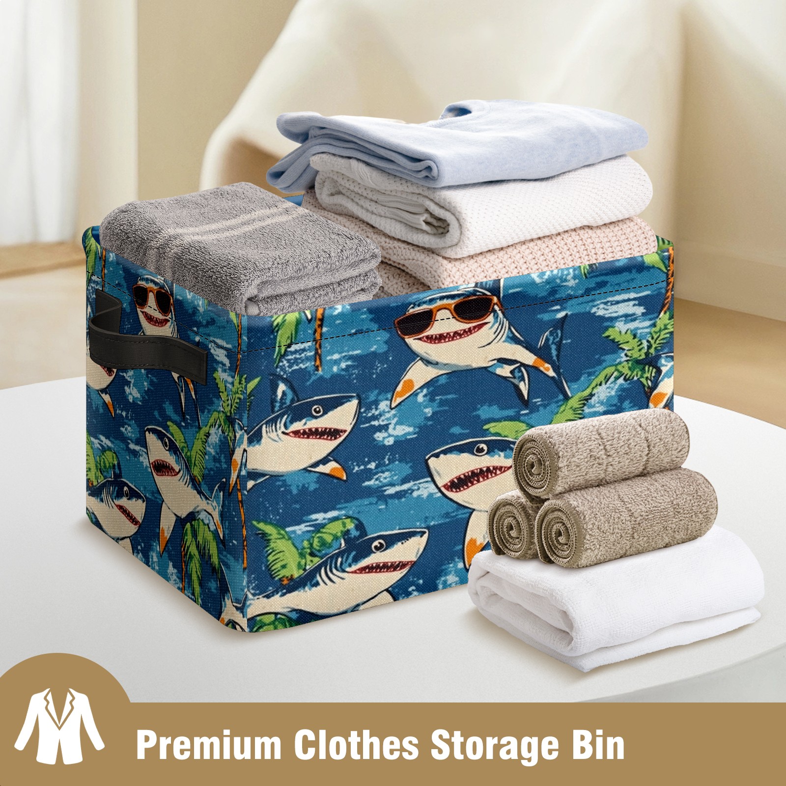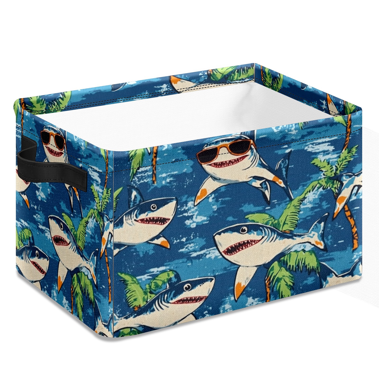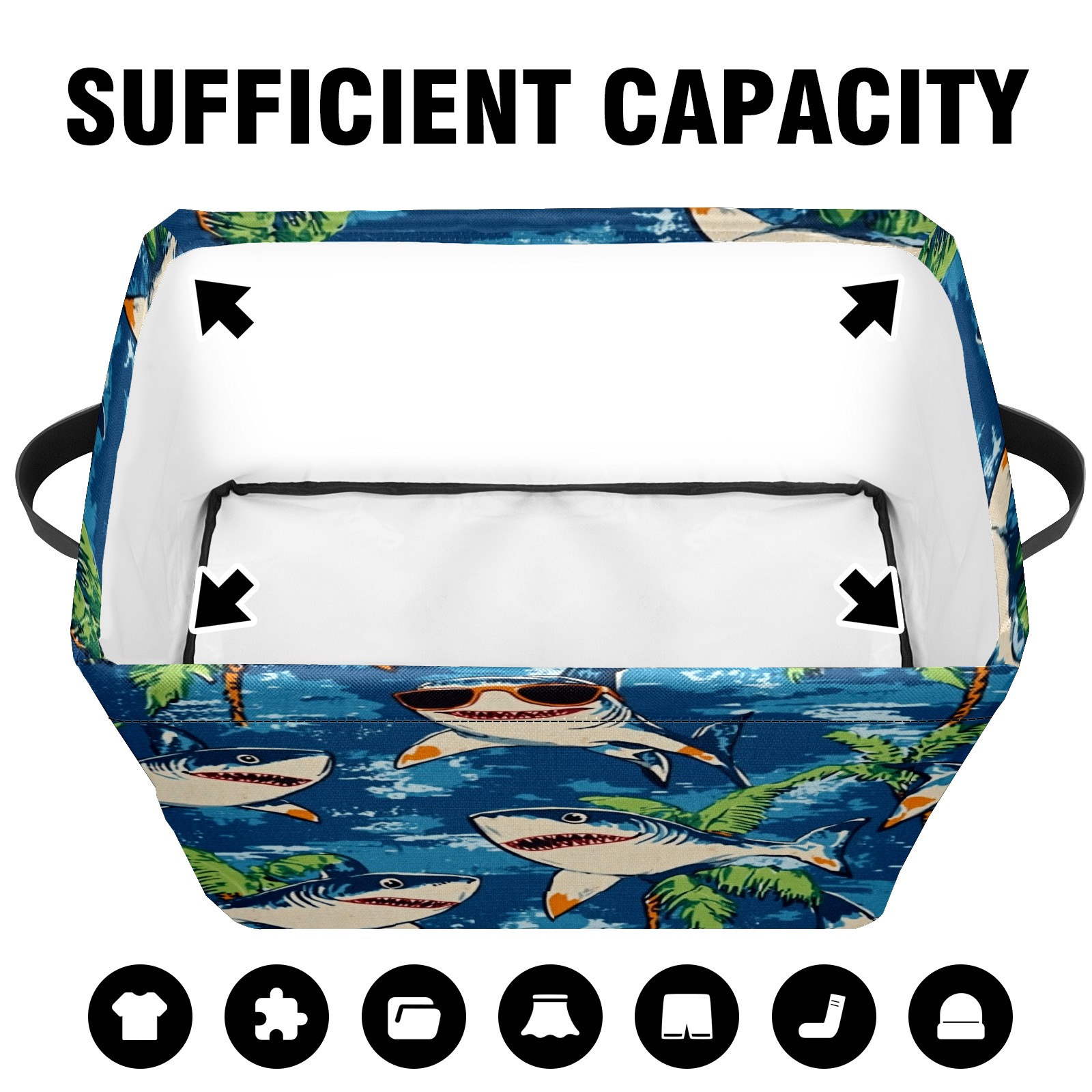 Foldable and Stackable Fabric Storage Basket for Home Organization with Handles, Decorative Closet Bins for Shelves and Laundry Storage( Shark Wearing Sunglasses)