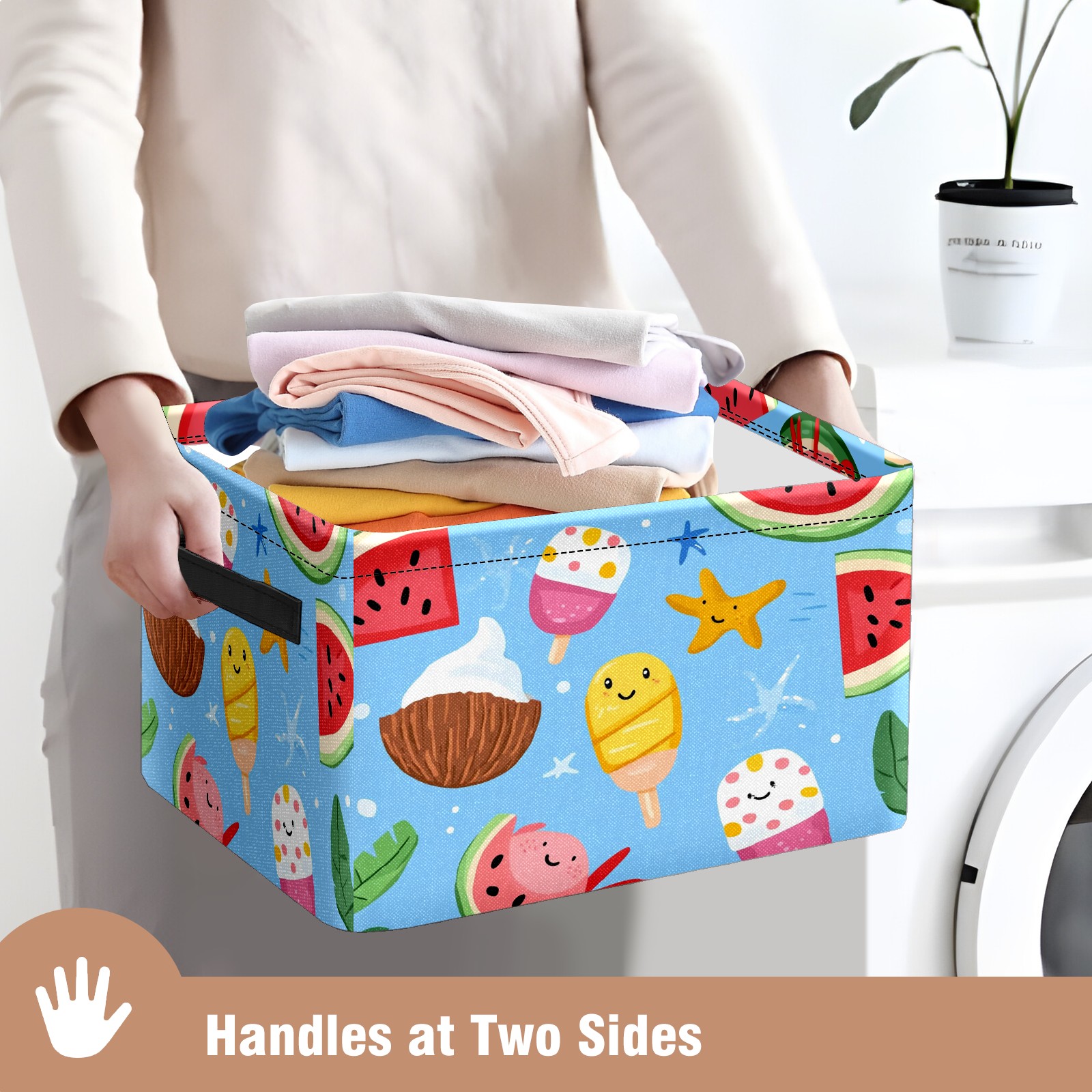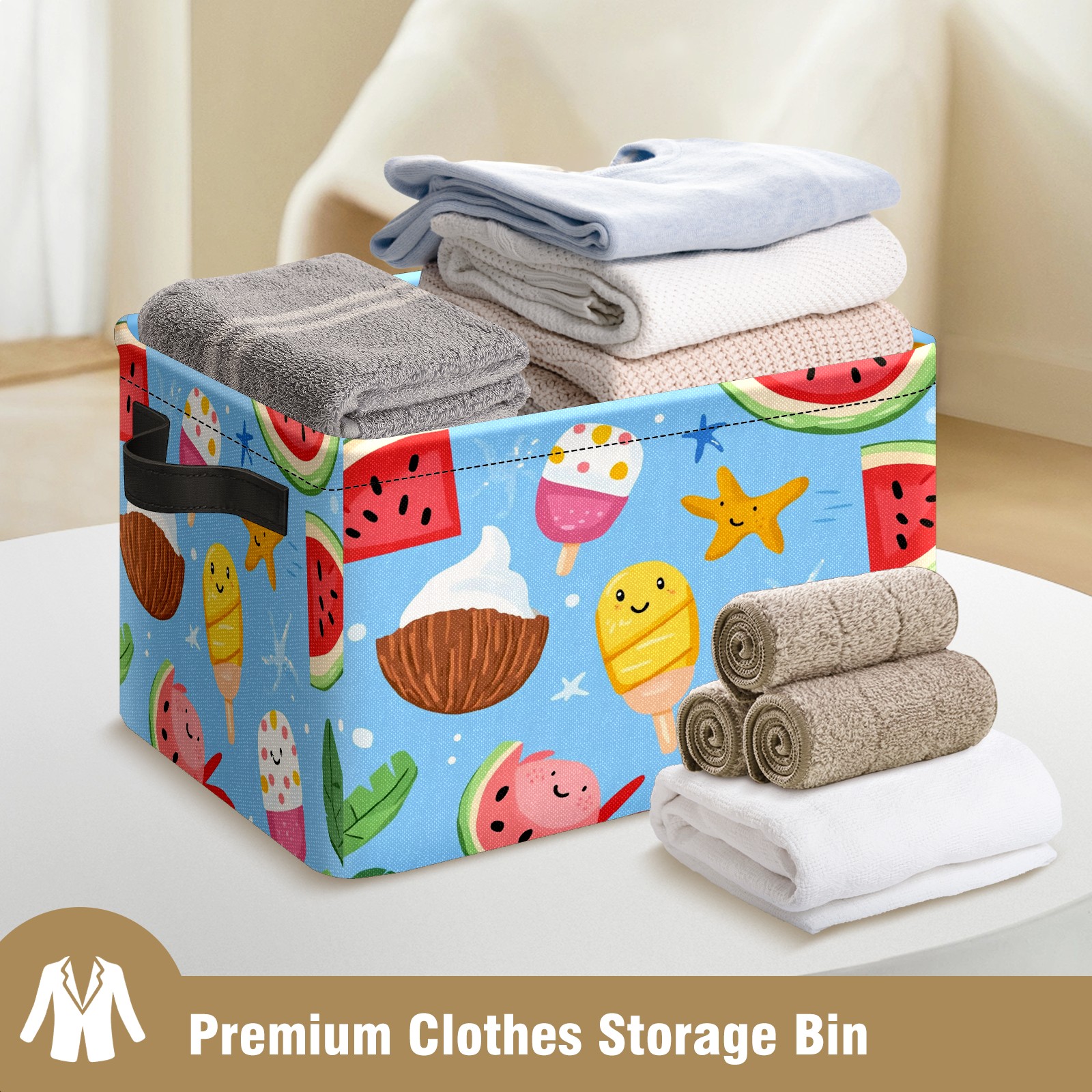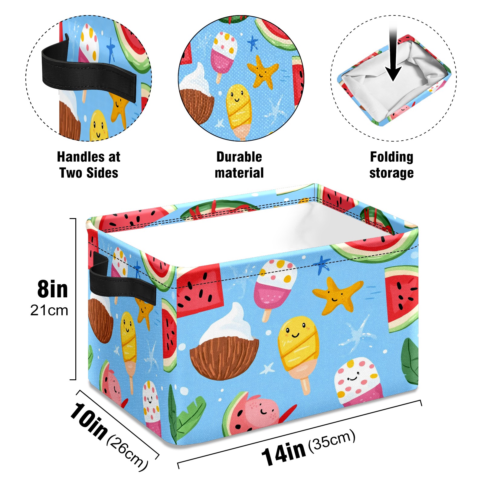 Foldable and Stackable Fabric Storage Basket for Home Organization with Handles, Decorative Closet Bins for Shelves and Laundry Storage( Ice Cream And Watermelon)