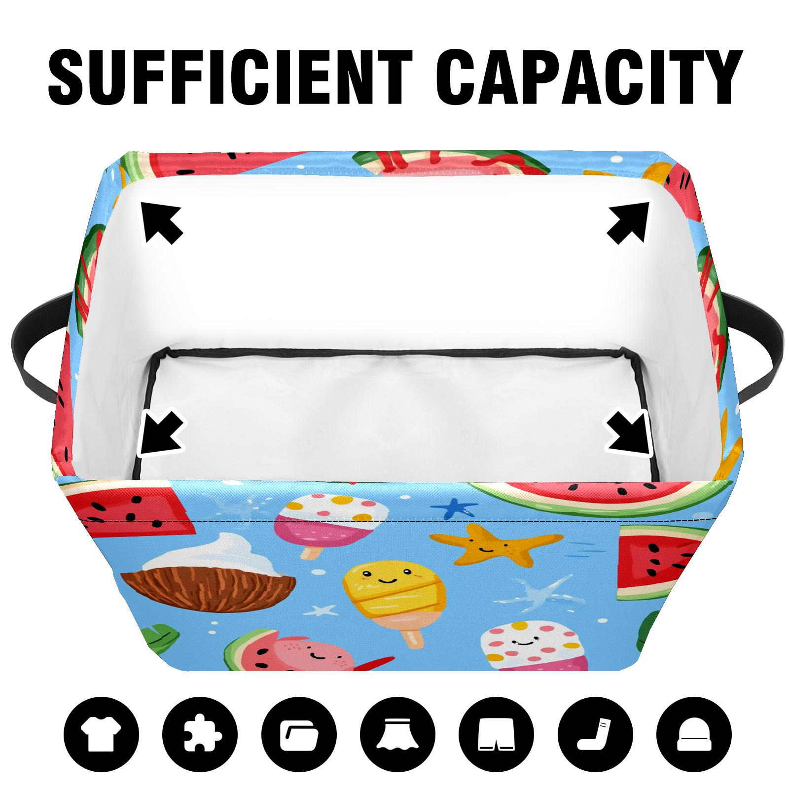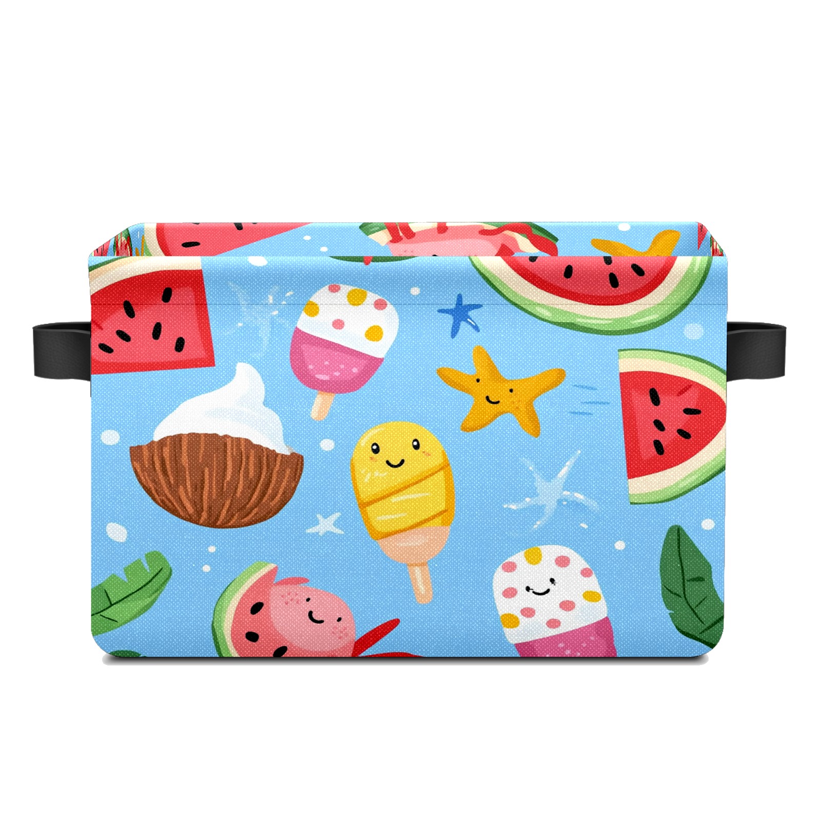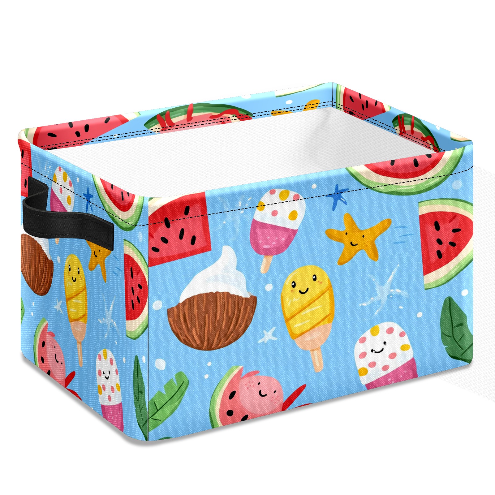Foldable and Stackable Fabric Storage Basket for Home Organization with Handles, Decorative Closet Bins for Shelves and Laundry Storage( Ice Cream And Watermelon)