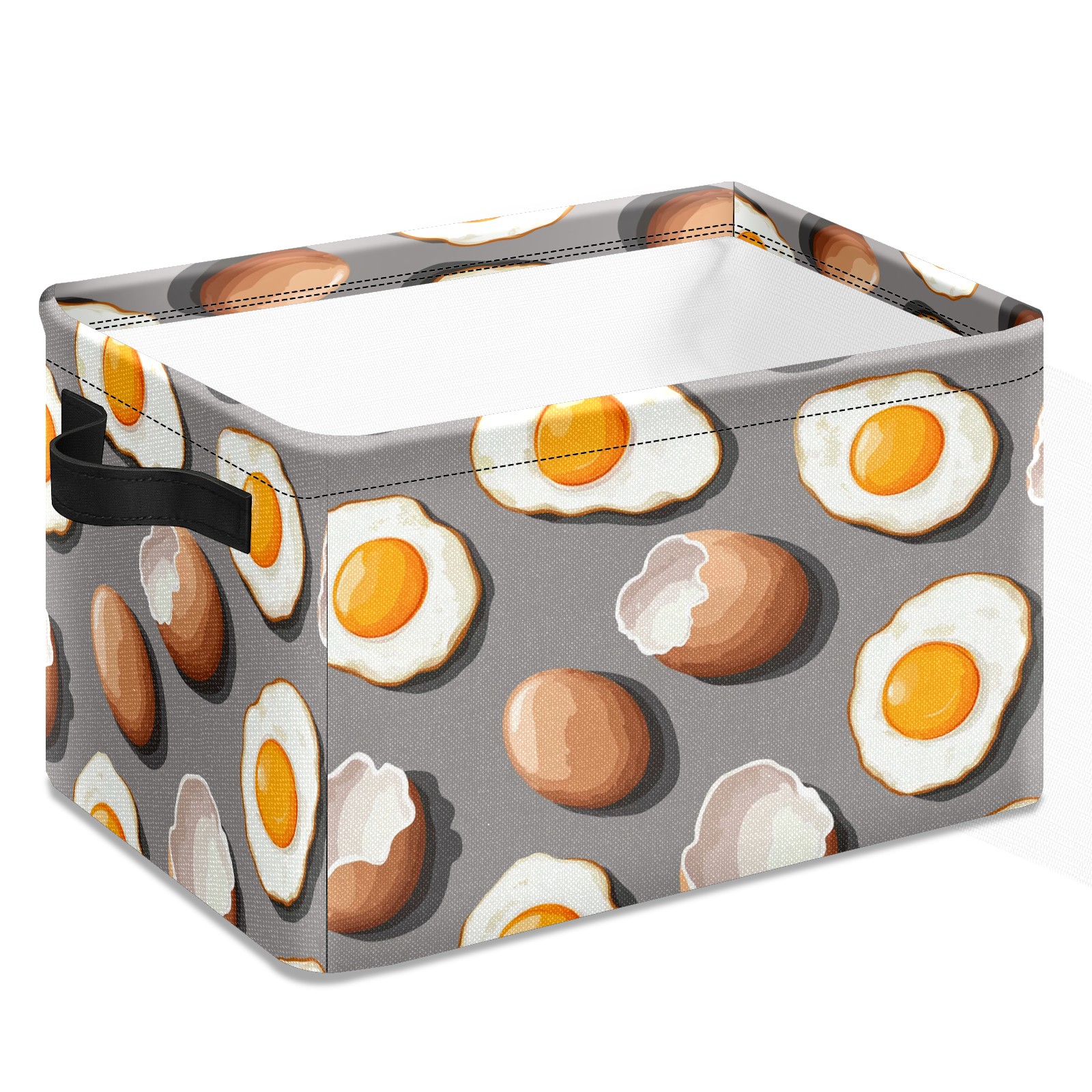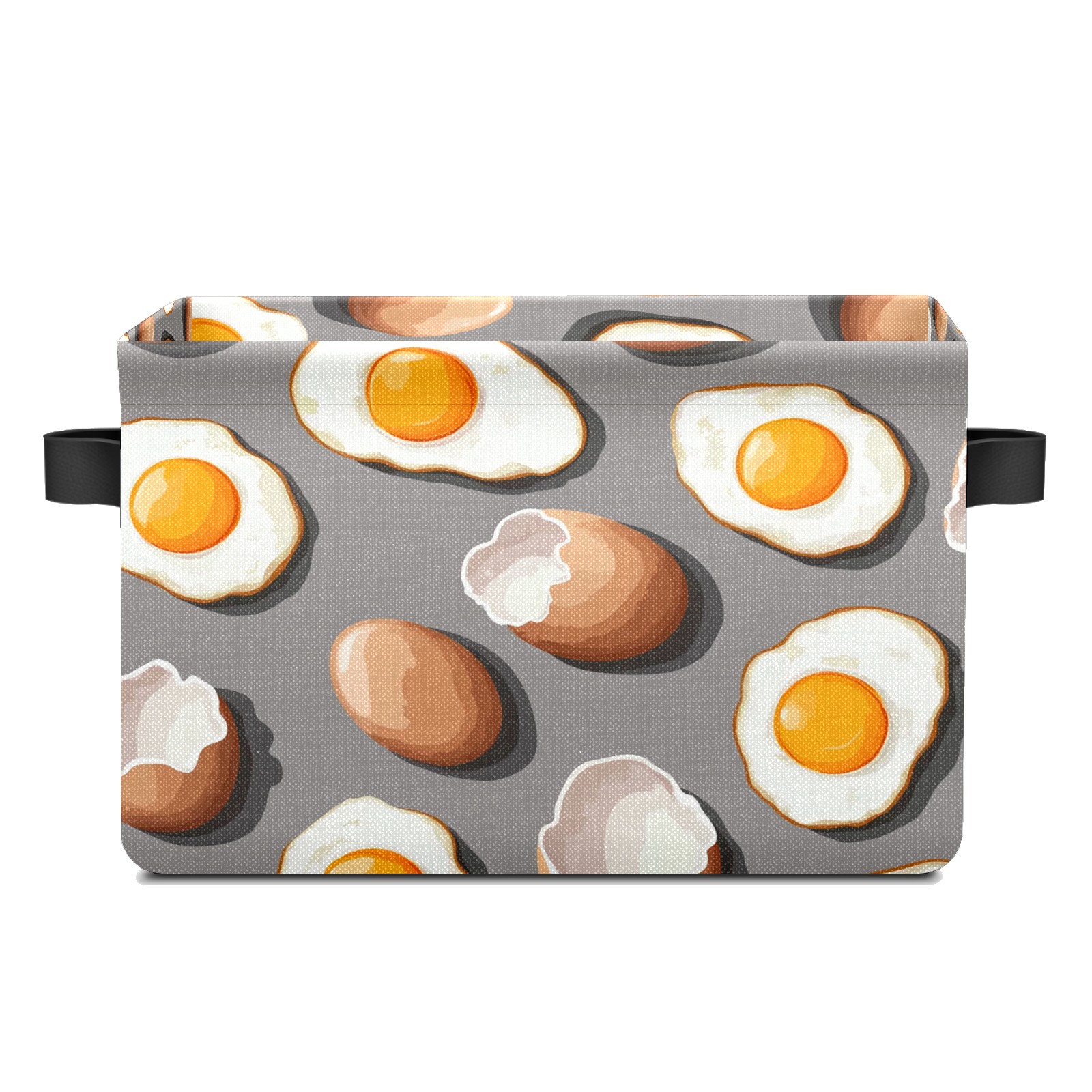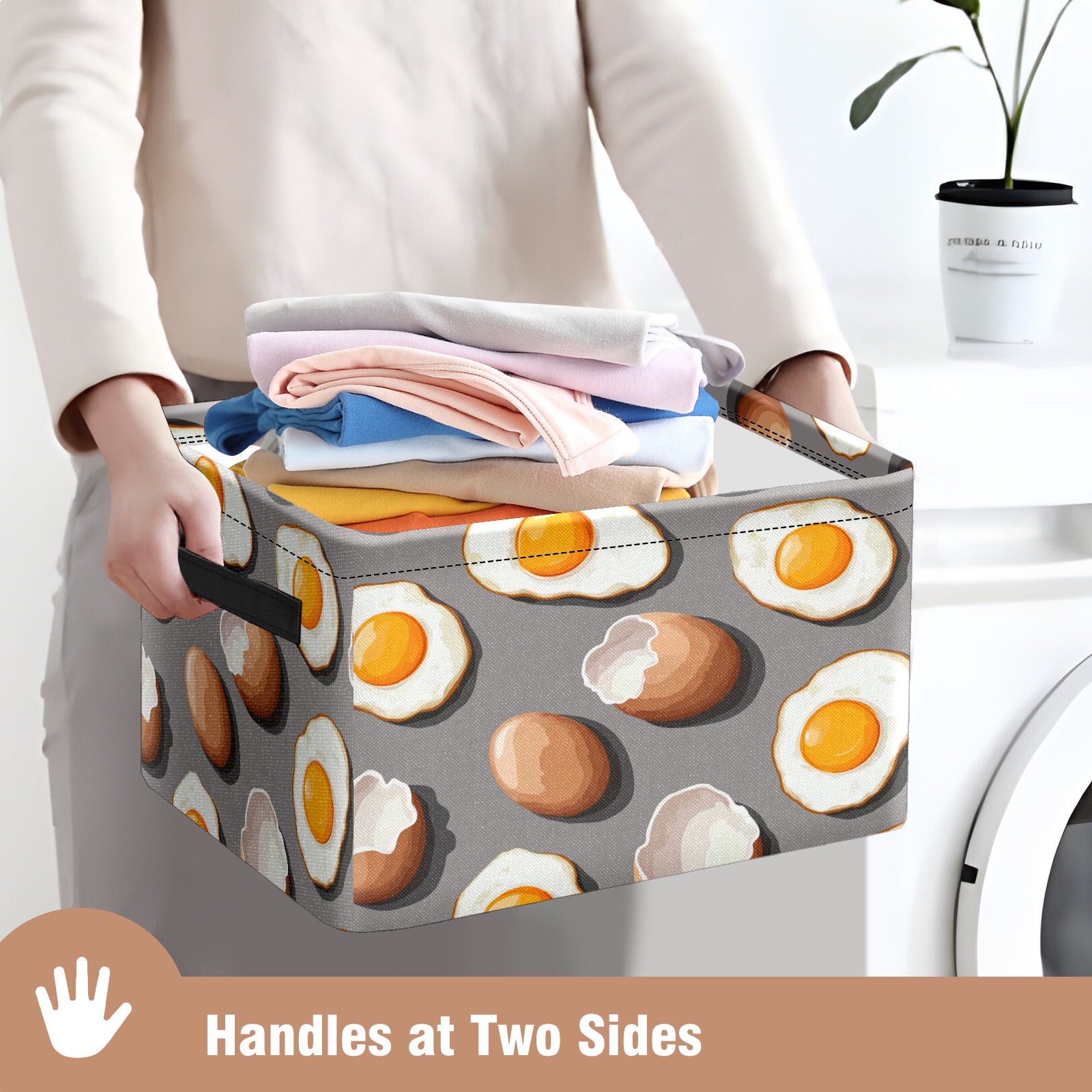 Foldable and Stackable Fabric Storage Basket for Home Organization with Handles, Decorative Closet Bins for Shelves and Laundry Storage( Fried Eggs And Eggshells)