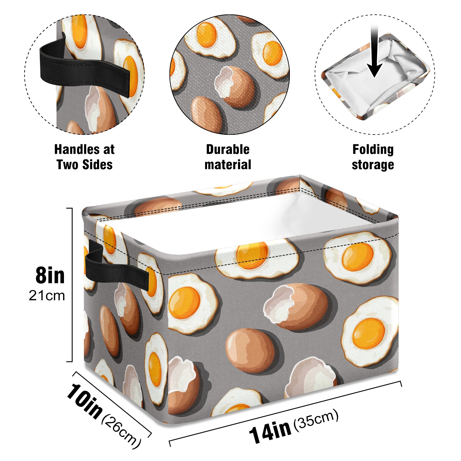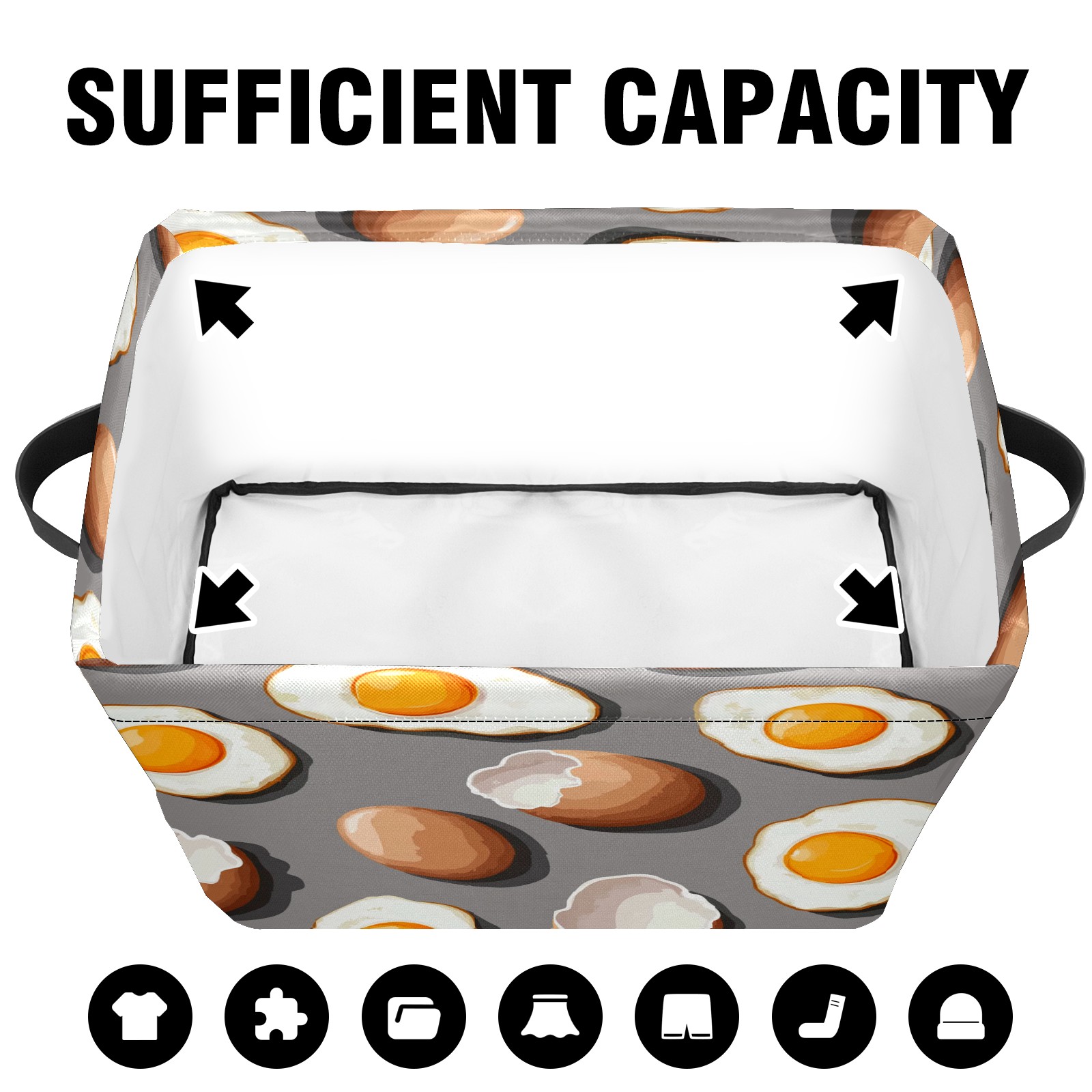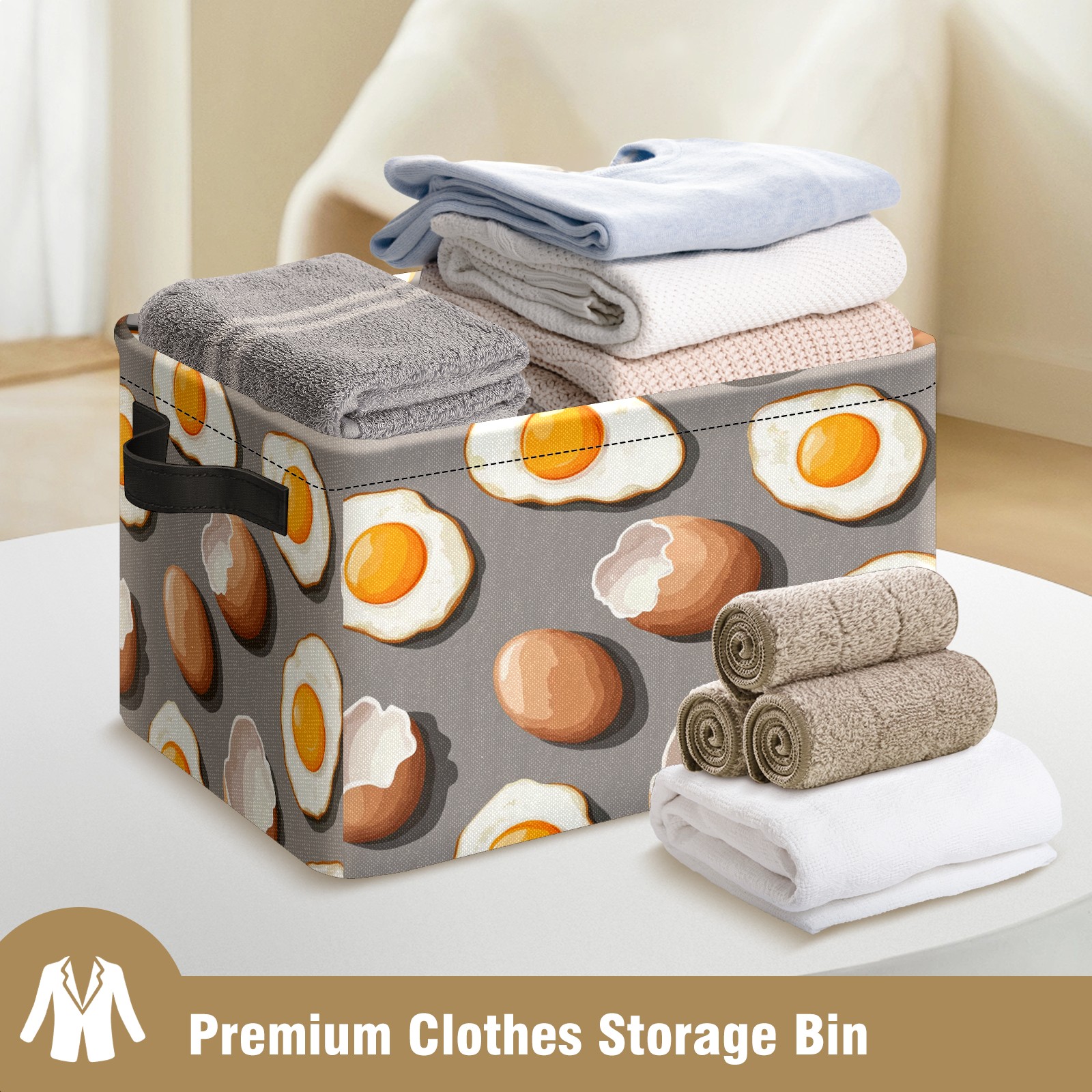 Foldable and Stackable Fabric Storage Basket for Home Organization with Handles, Decorative Closet Bins for Shelves and Laundry Storage( Fried Eggs And Eggshells)