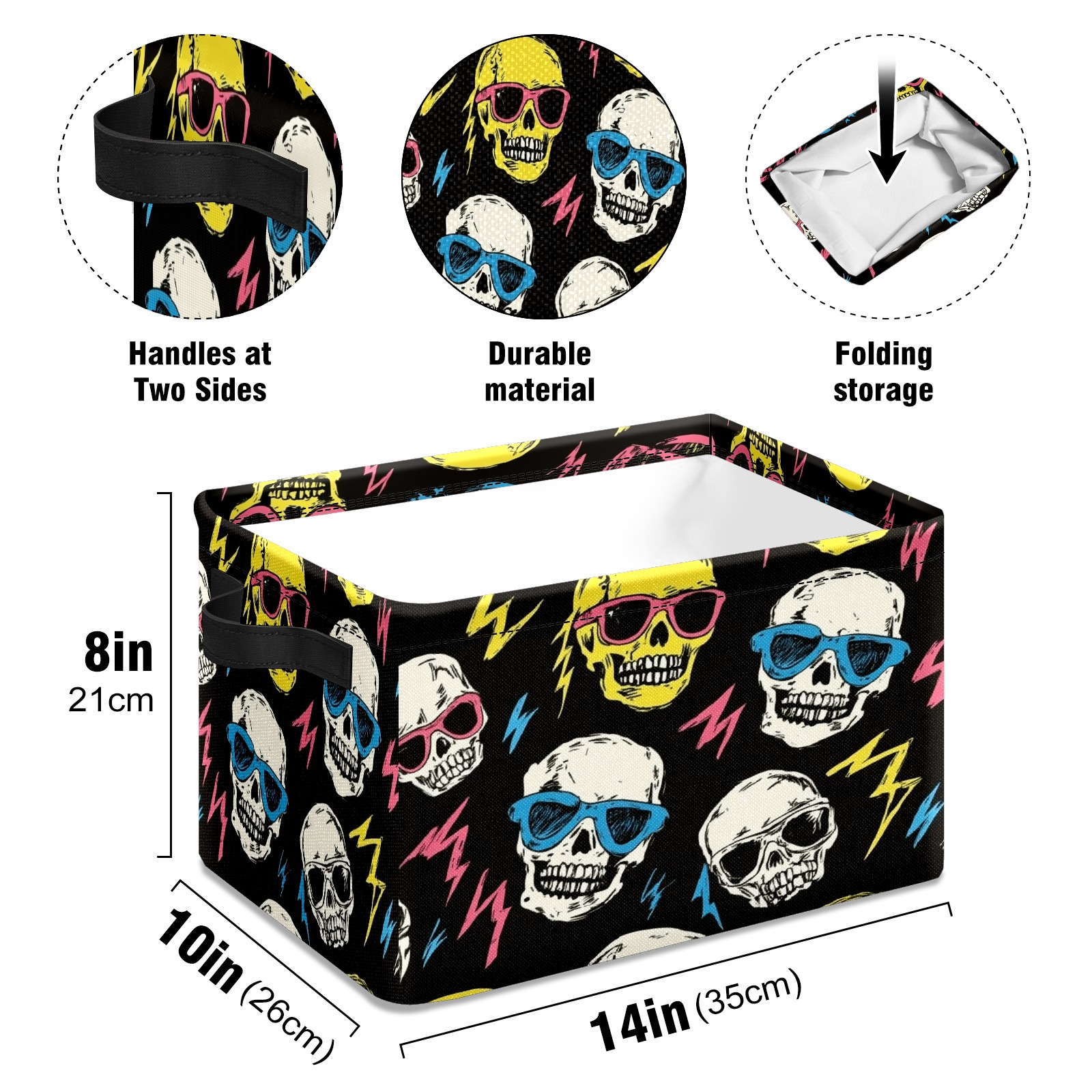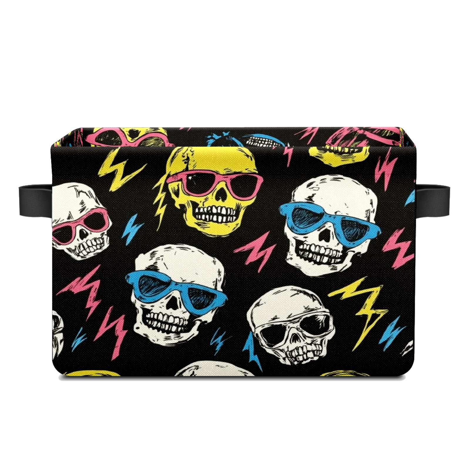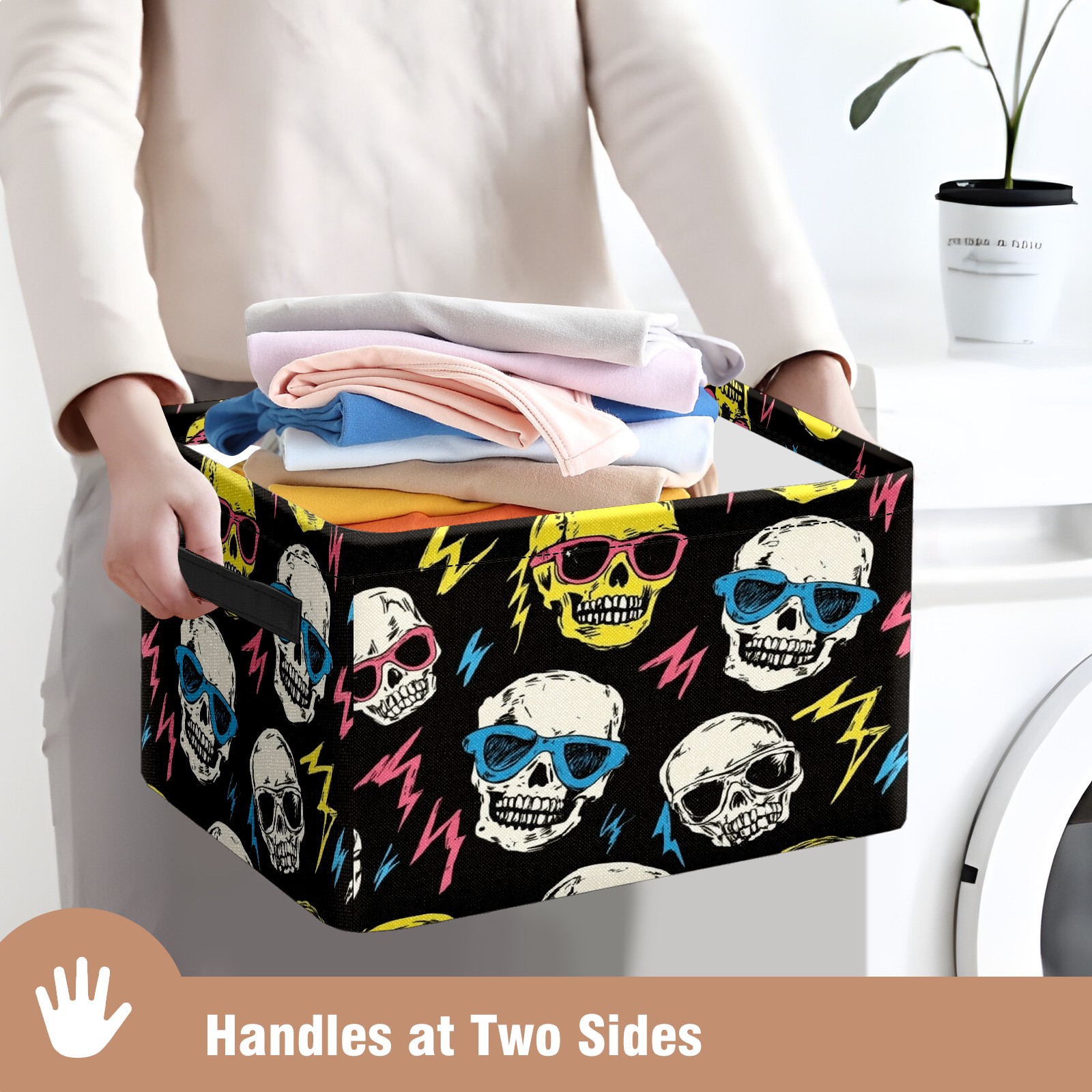 Foldable and Stackable Fabric Storage Basket for Home Organization with Handles, Decorative Closet Bins for Shelves and Laundry Storage( Colorful Cartoon Skulls)
