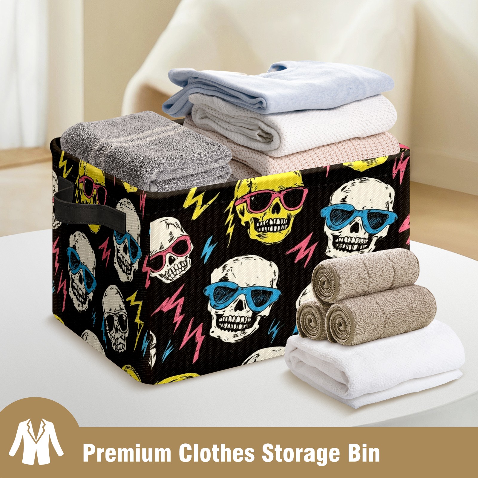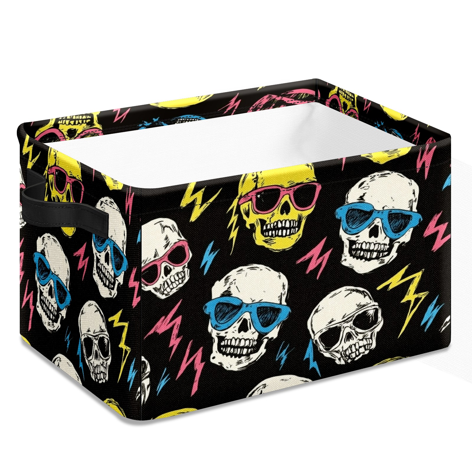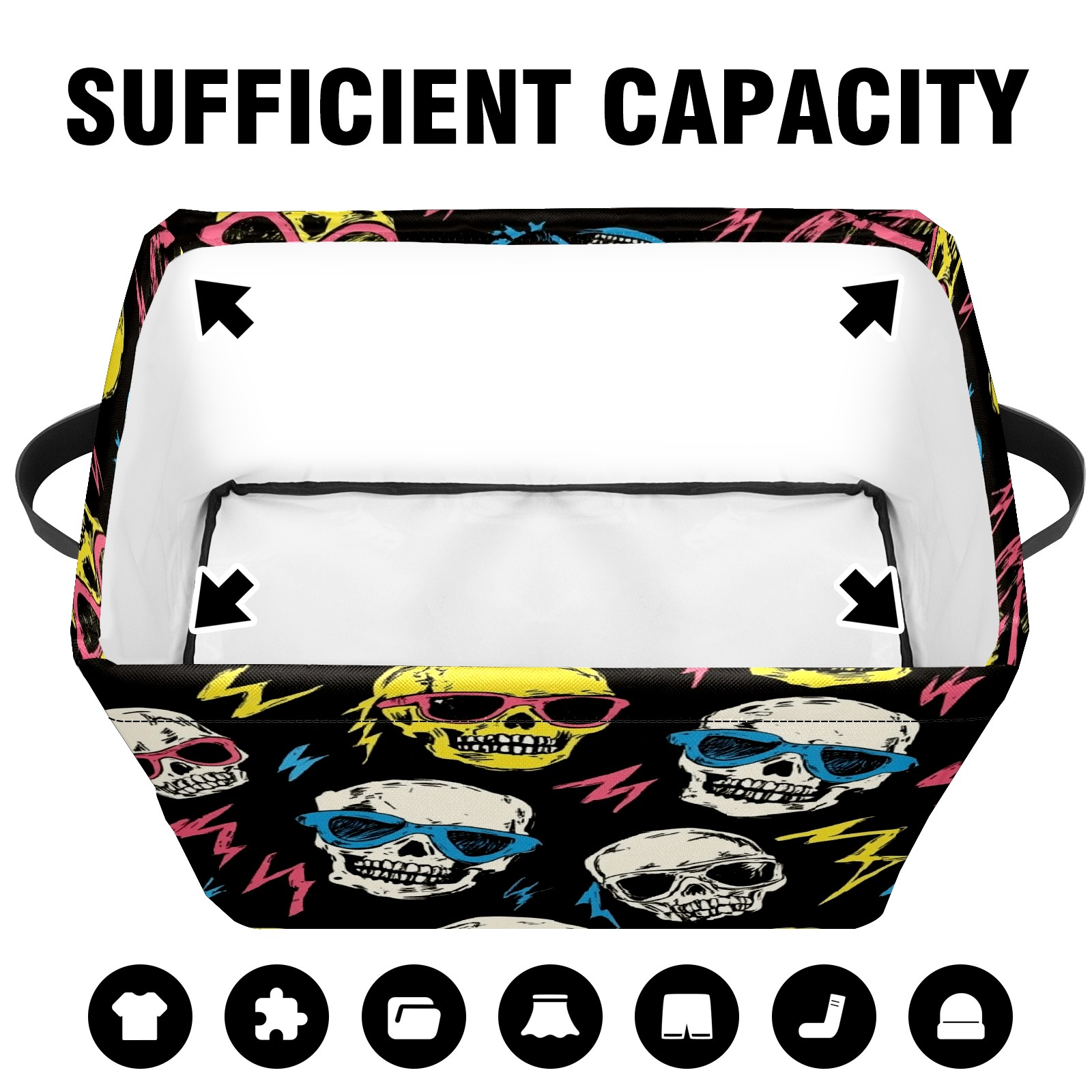 Foldable and Stackable Fabric Storage Basket for Home Organization with Handles, Decorative Closet Bins for Shelves and Laundry Storage( Colorful Cartoon Skulls)