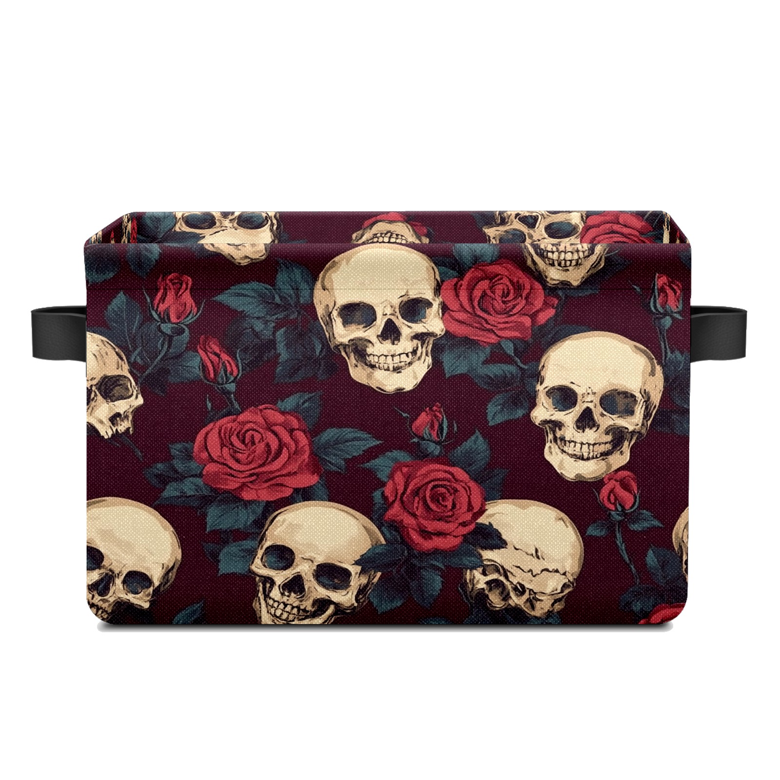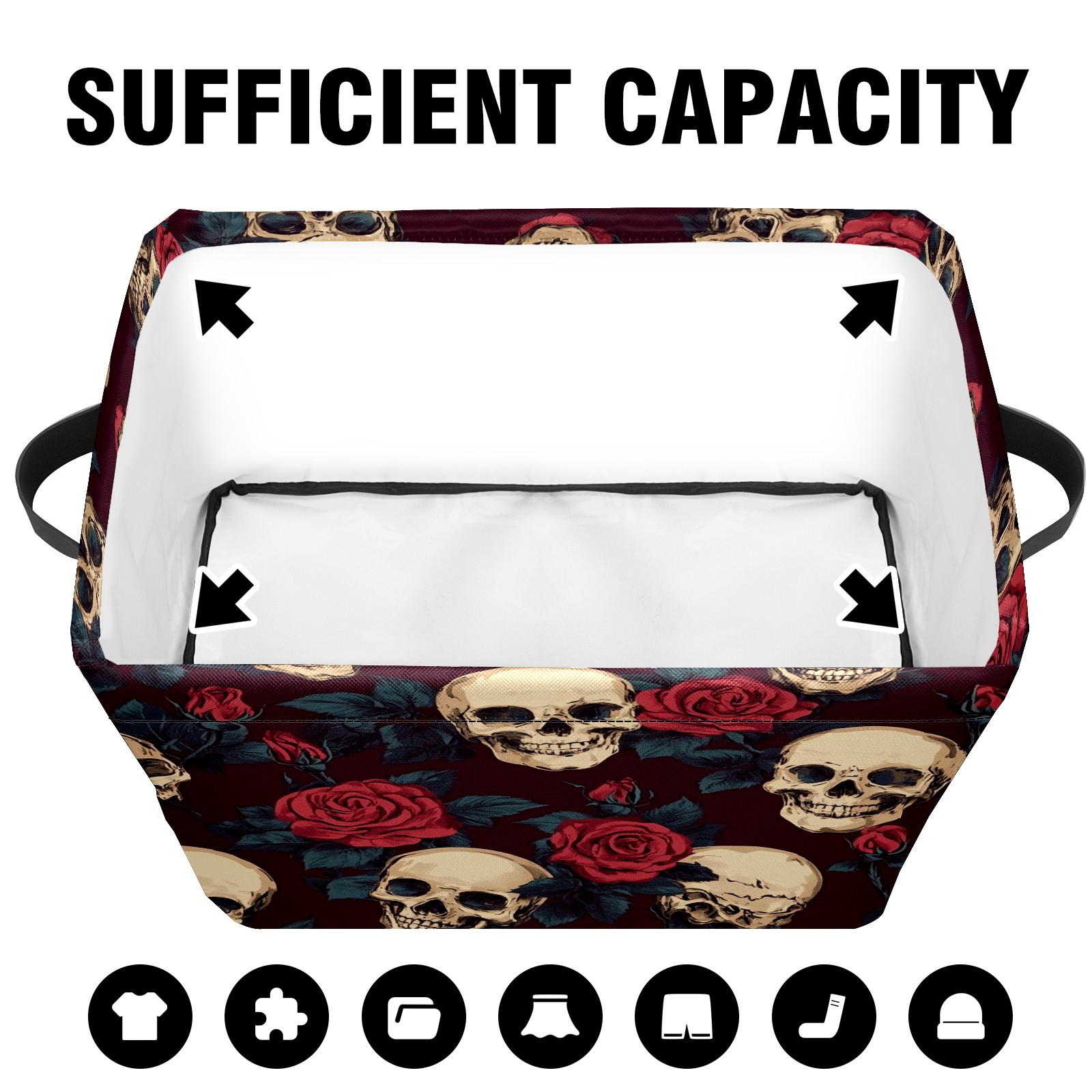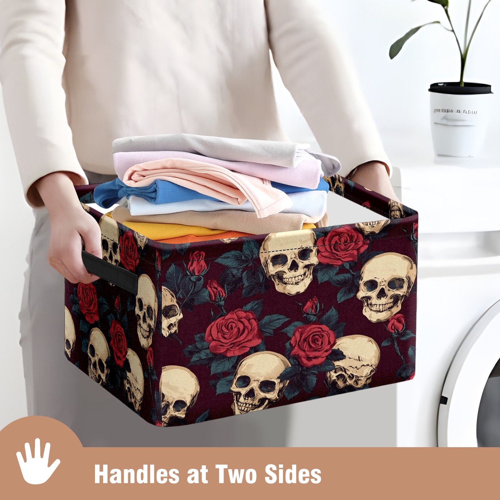 Foldable and Stackable Fabric Storage Basket for Home Organization with Handles, Decorative Closet Bins for Shelves and Laundry Storage( Skulls And Roses)