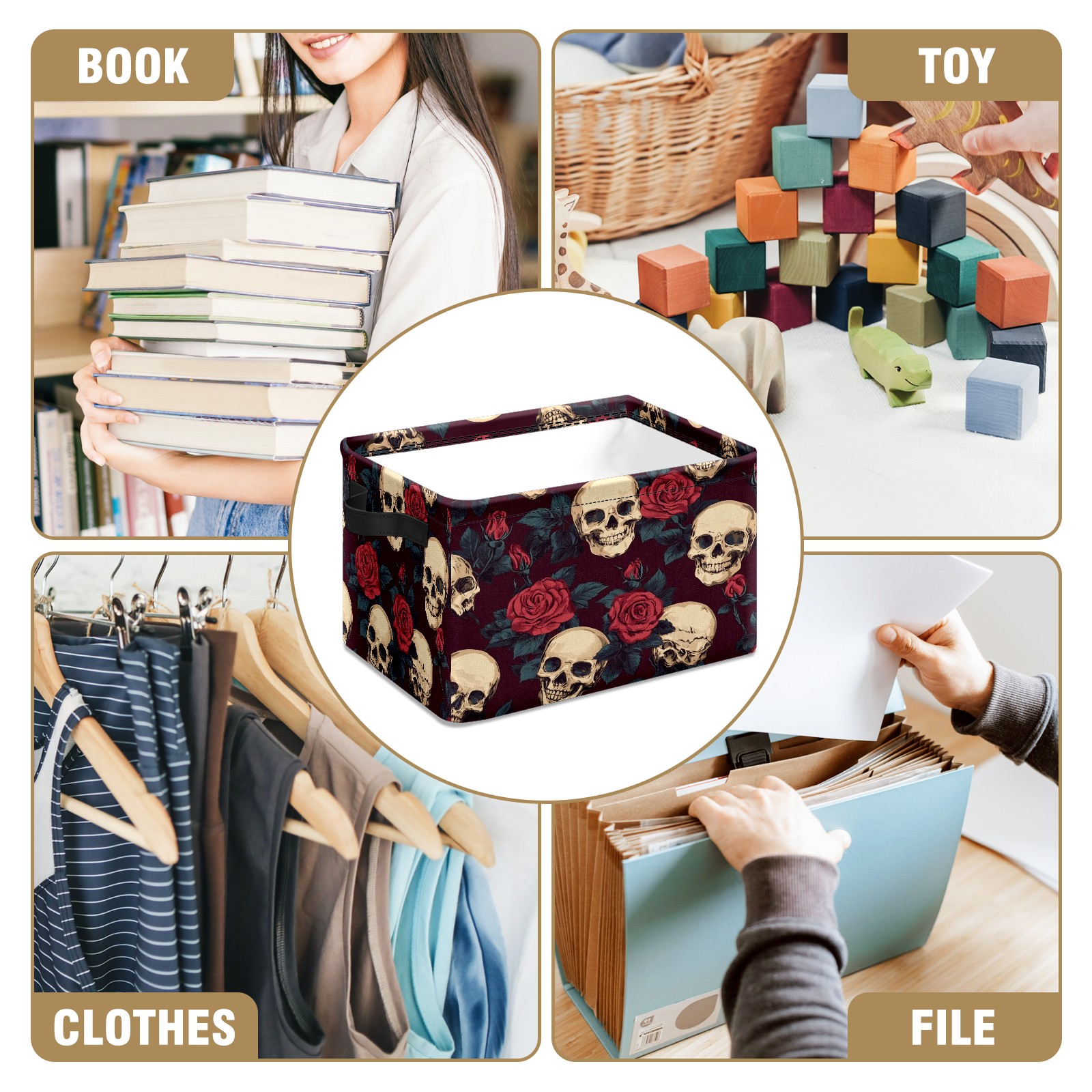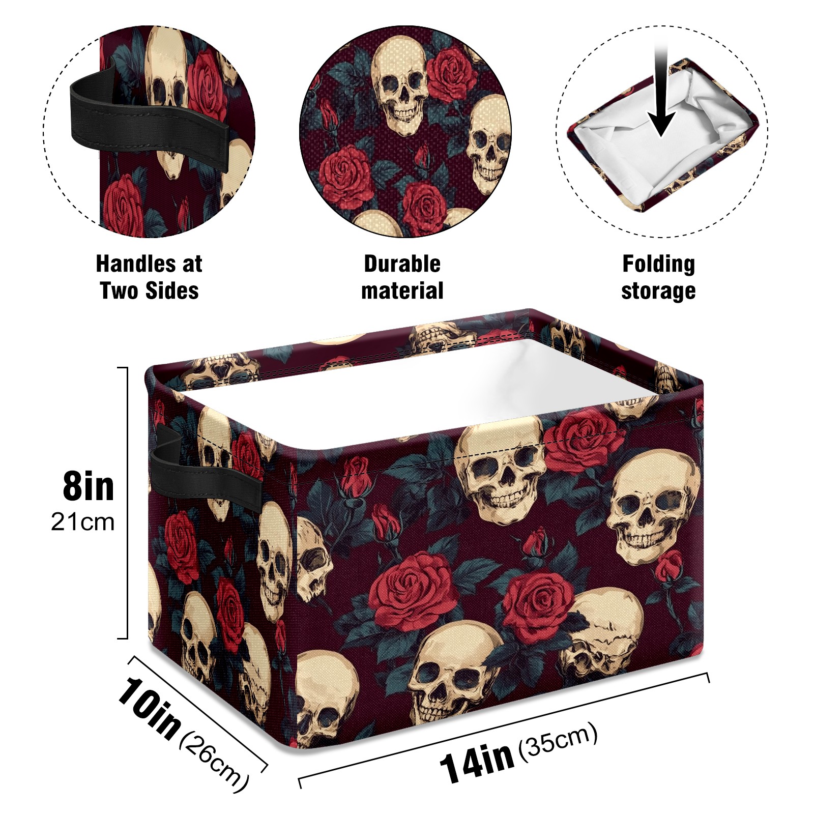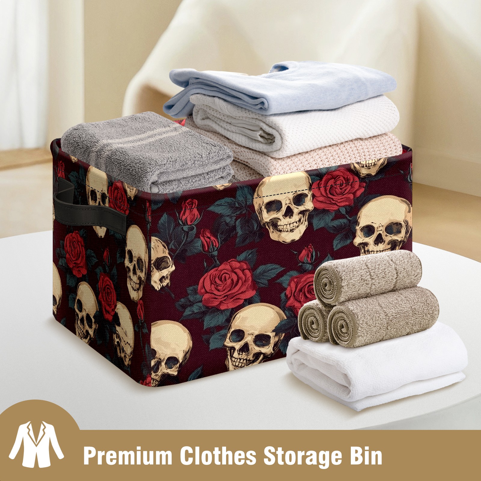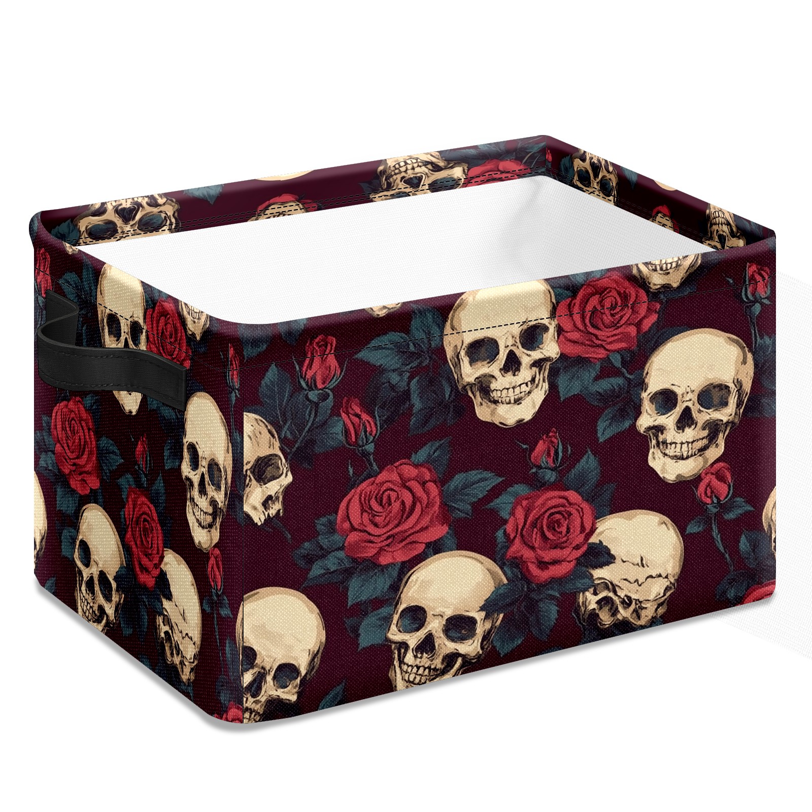 Foldable and Stackable Fabric Storage Basket for Home Organization with Handles, Decorative Closet Bins for Shelves and Laundry Storage( Skulls And Roses)