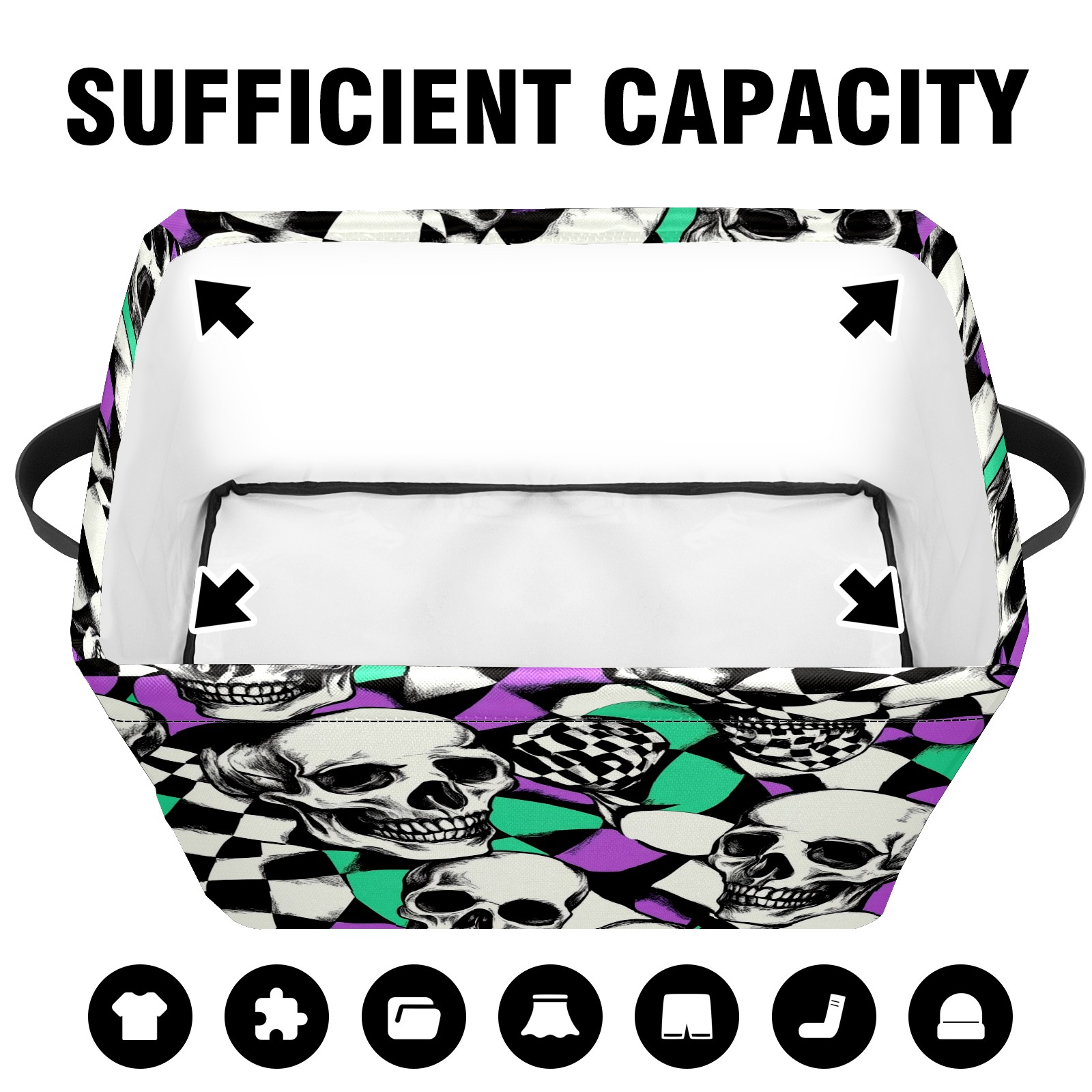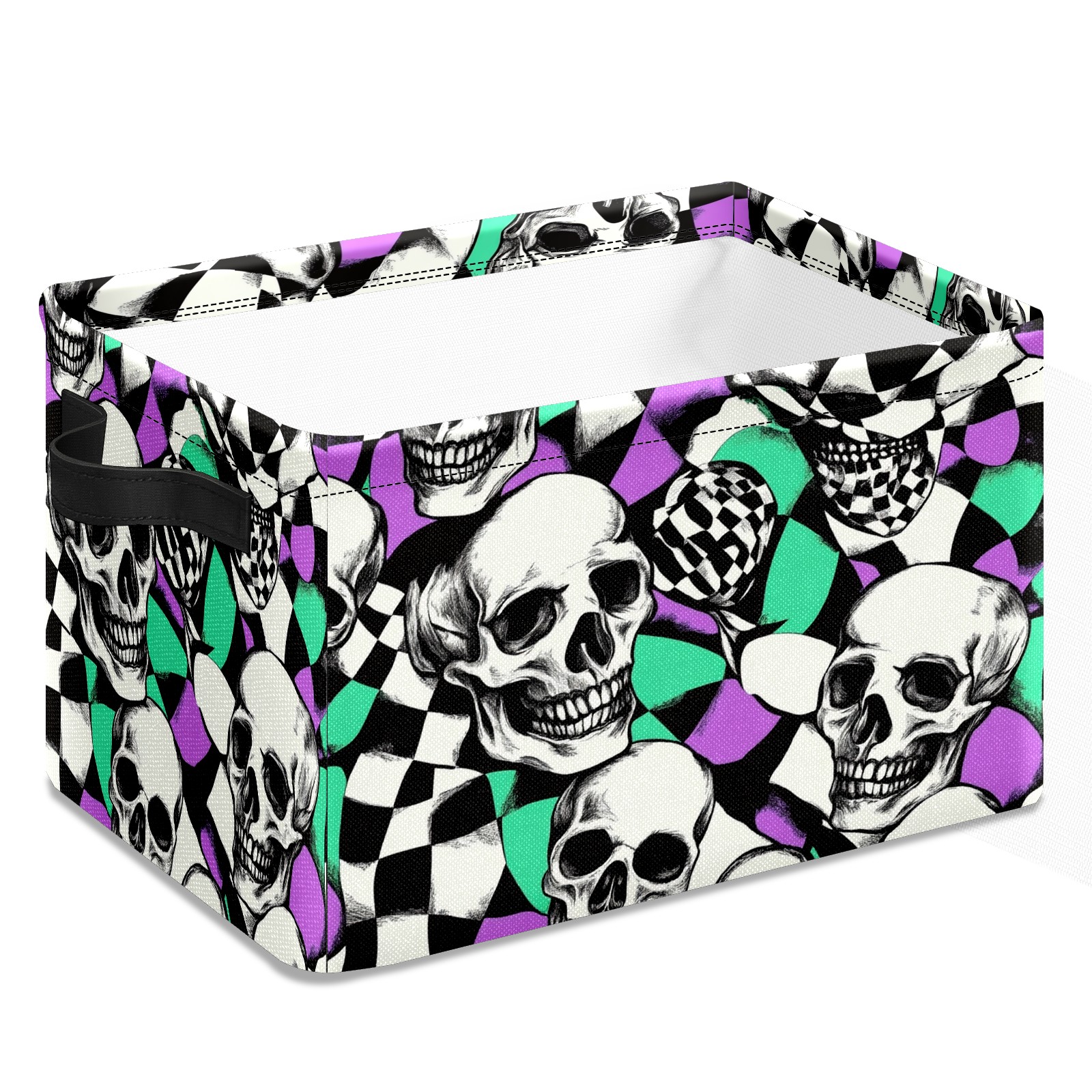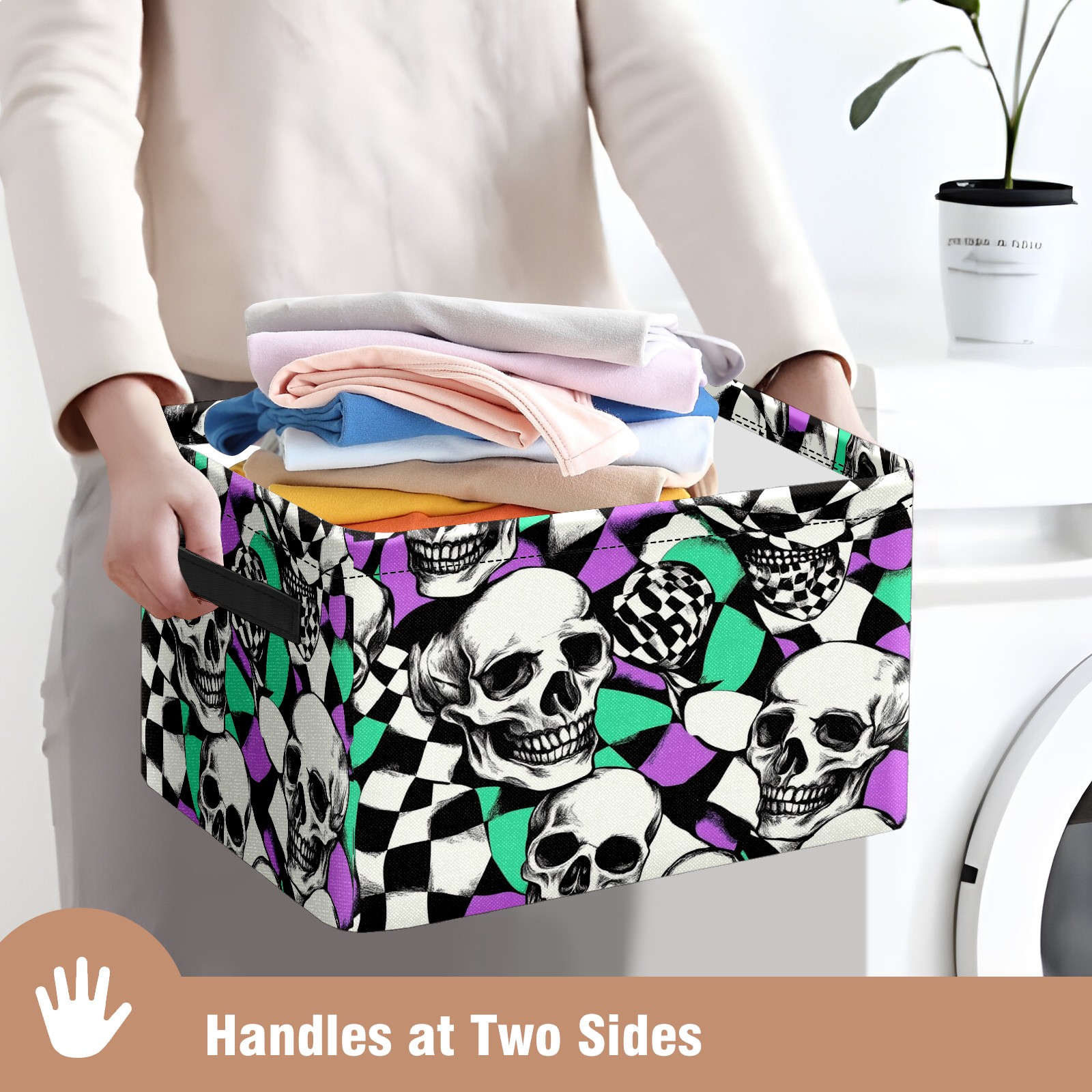 Foldable and Stackable Fabric Storage Basket for Home Organization with Handles, Decorative Closet Bins for Shelves and Laundry Storage( Skulls And Checkered Flag)