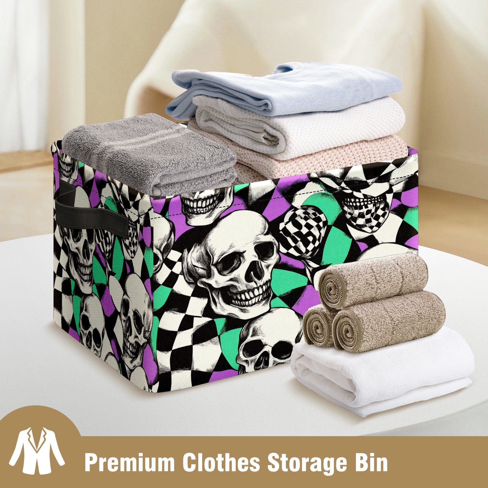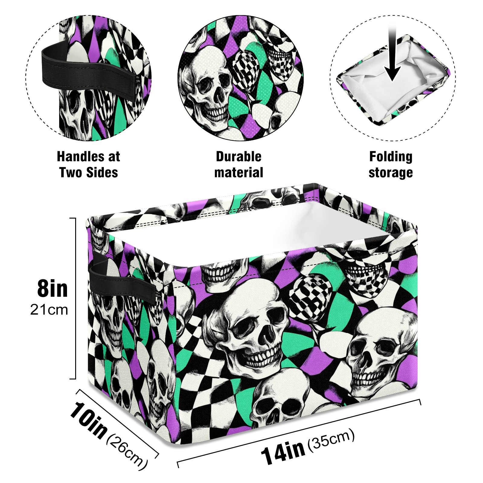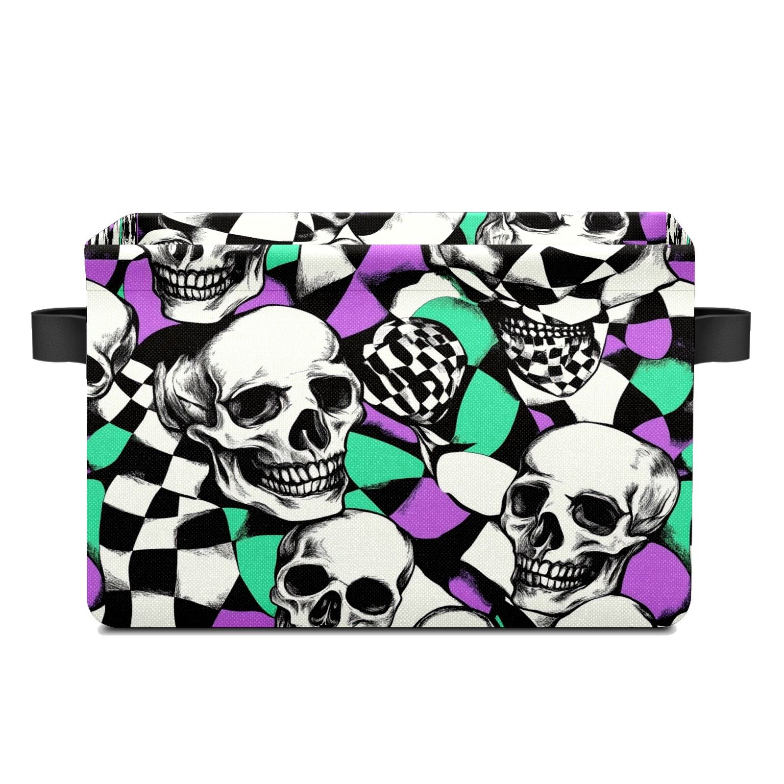 Foldable and Stackable Fabric Storage Basket for Home Organization with Handles, Decorative Closet Bins for Shelves and Laundry Storage( Skulls And Checkered Flag)