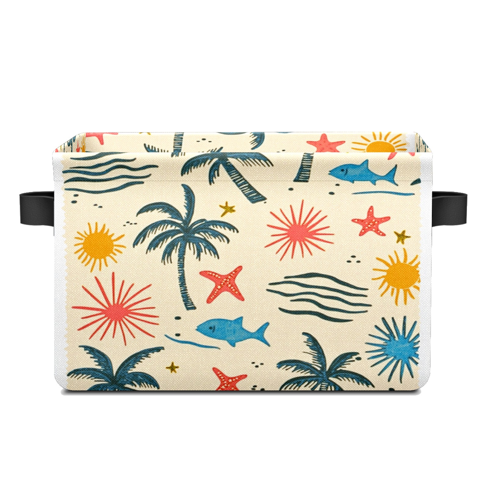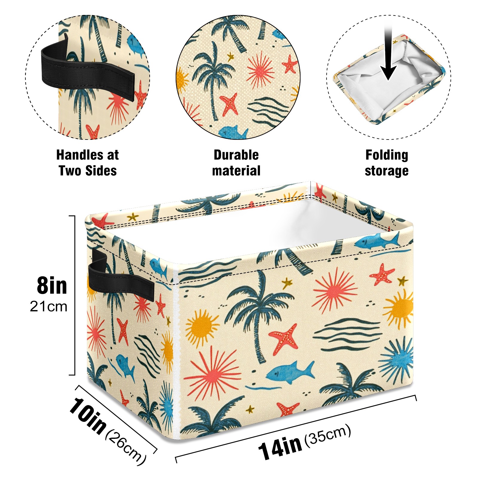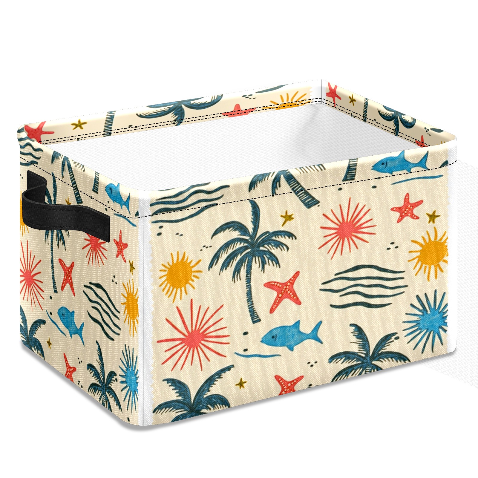 Foldable and Stackable Fabric Storage Basket for Home Organization with Handles, Decorative Closet Bins for Shelves and Laundry Storage( Palm Trees Suns And Starfish)