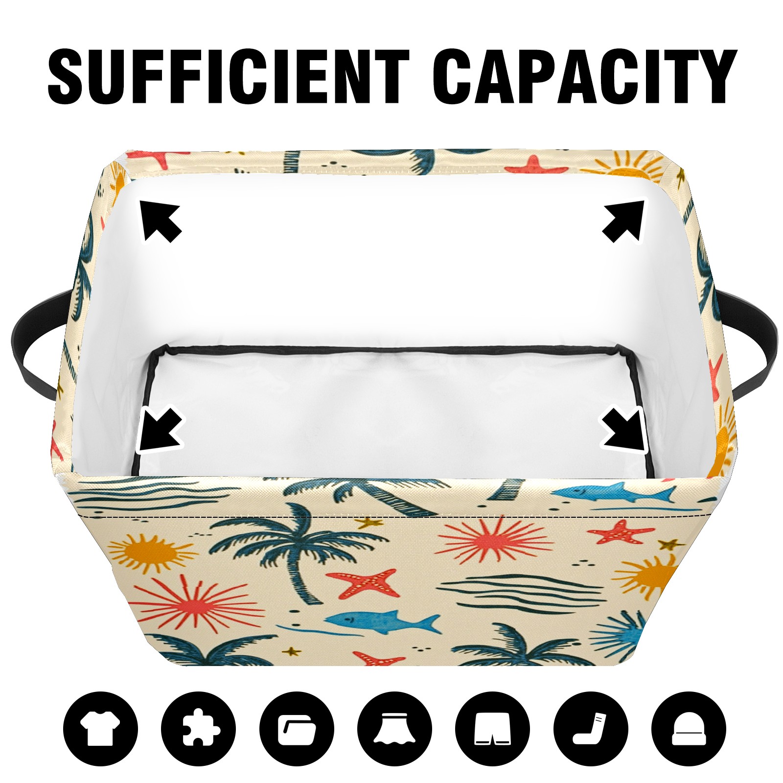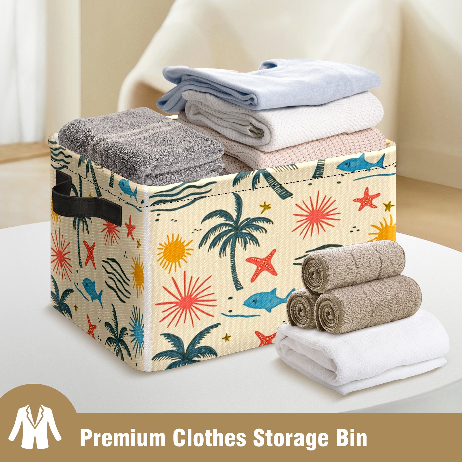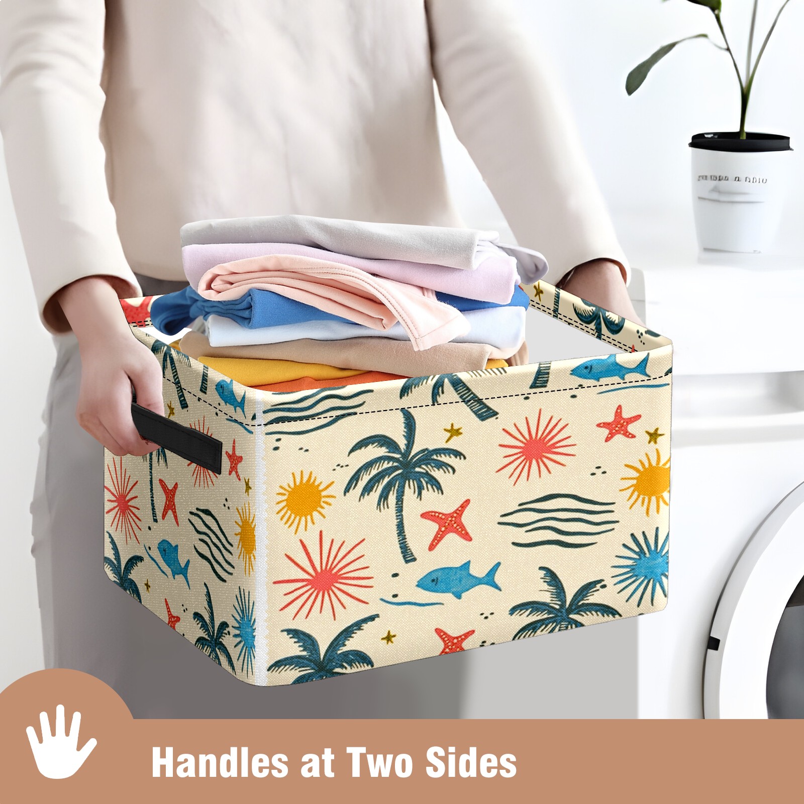 Foldable and Stackable Fabric Storage Basket for Home Organization with Handles, Decorative Closet Bins for Shelves and Laundry Storage( Palm Trees Suns And Starfish)