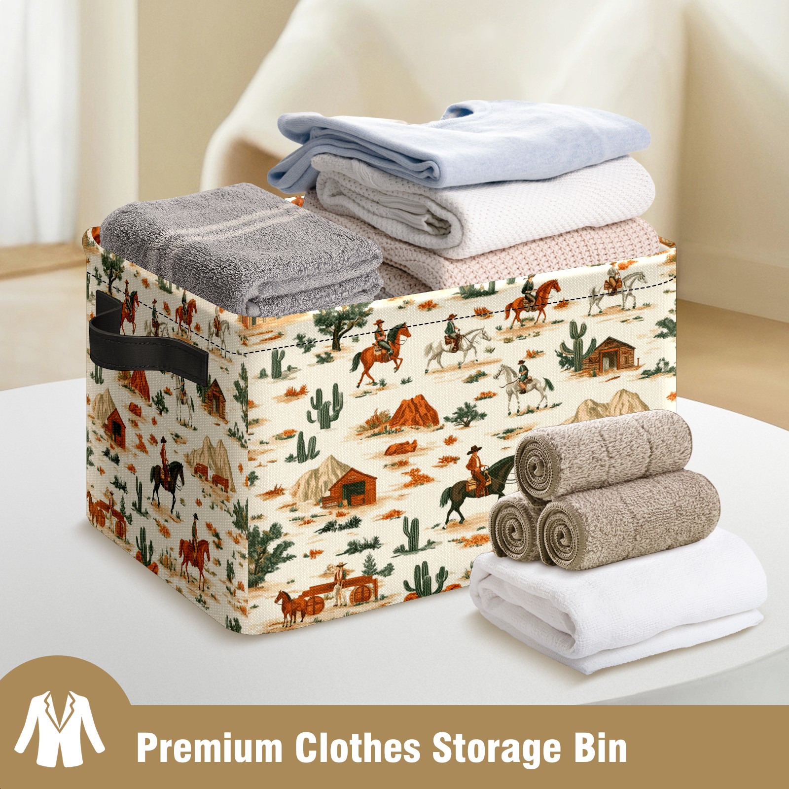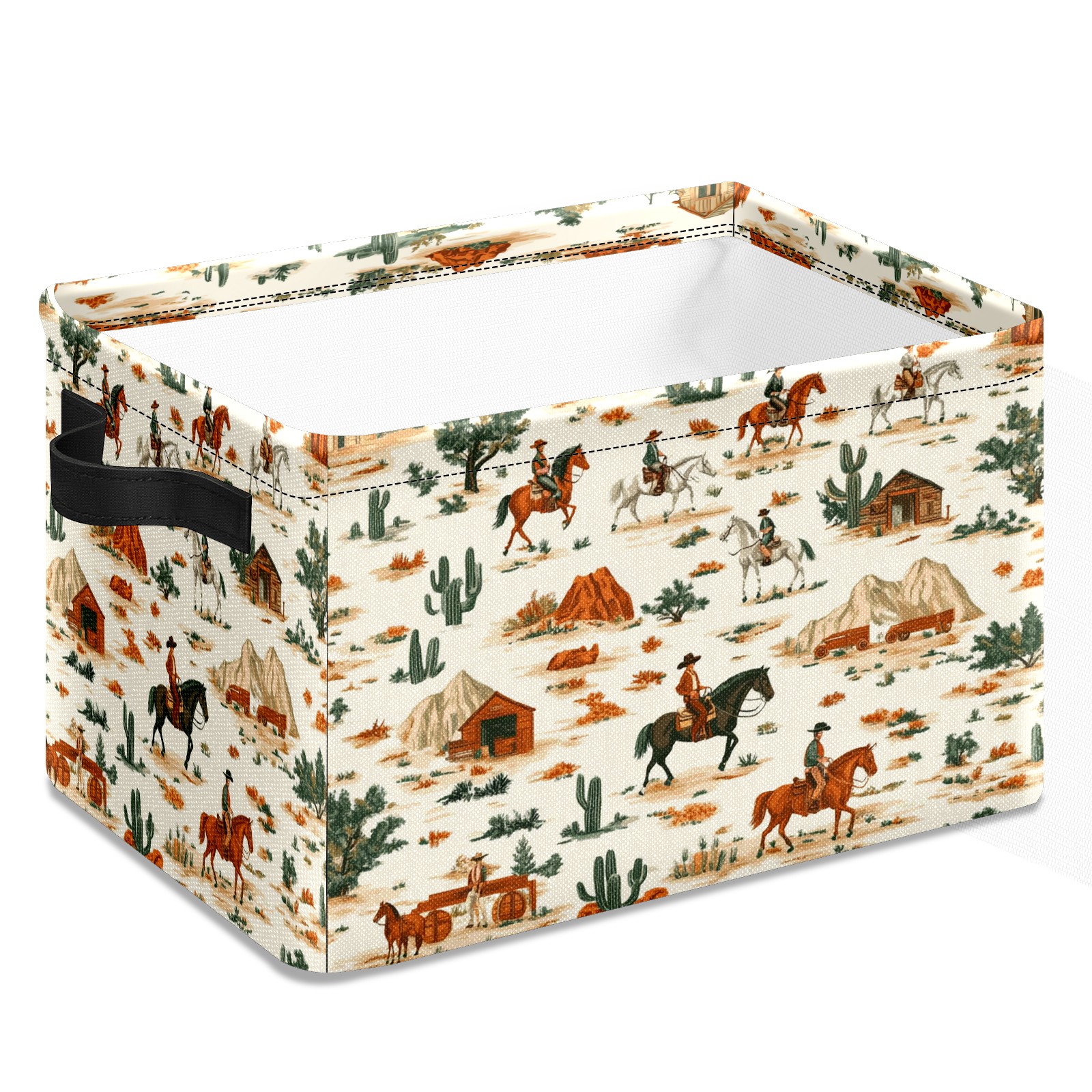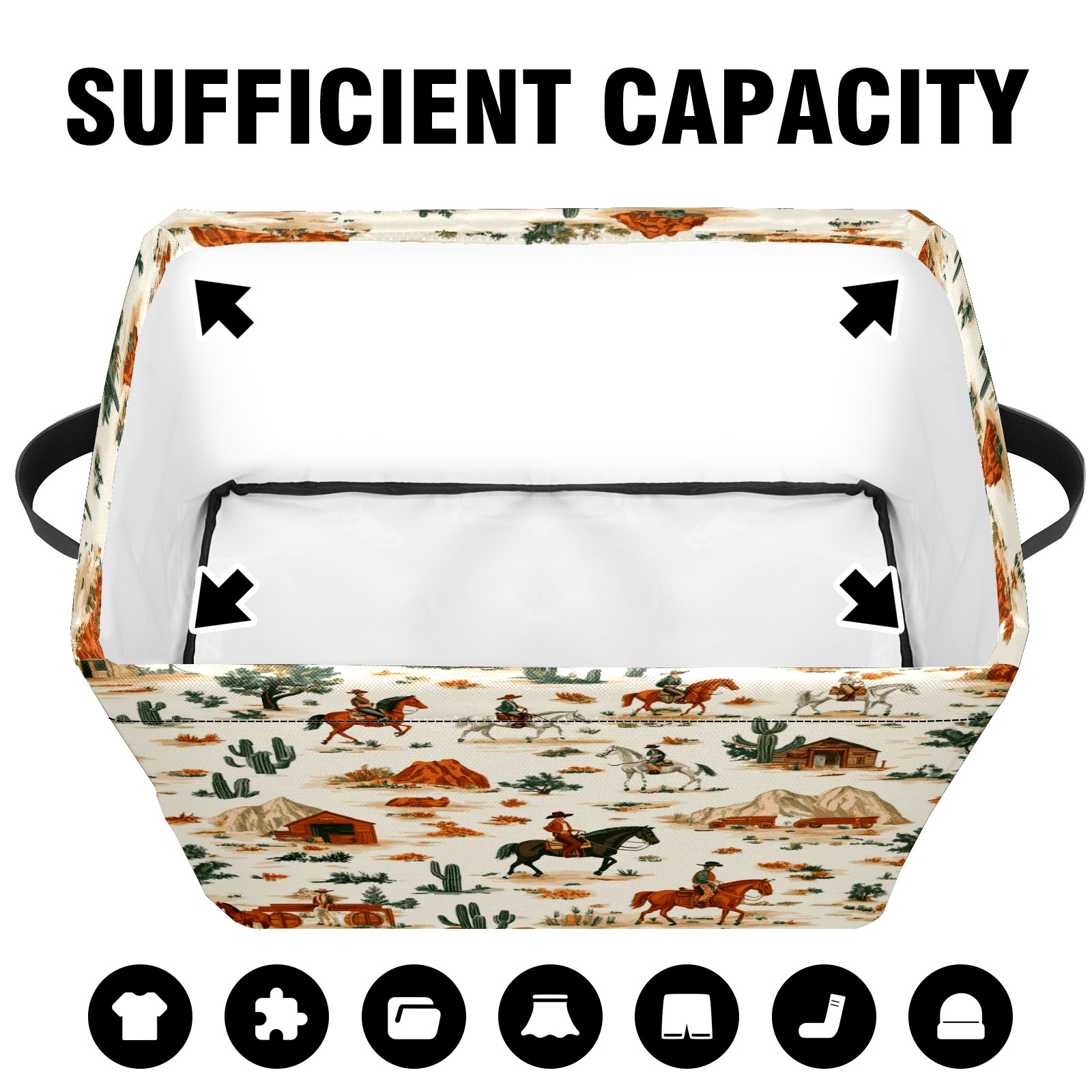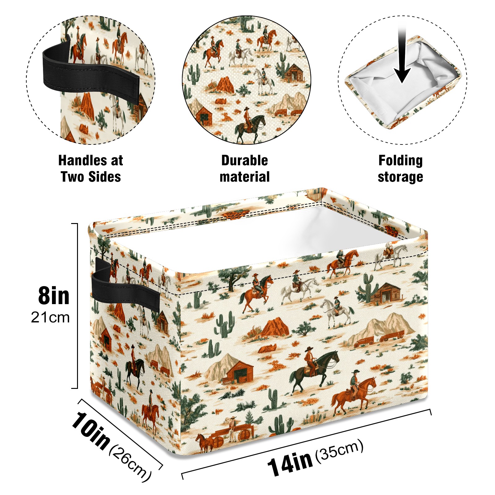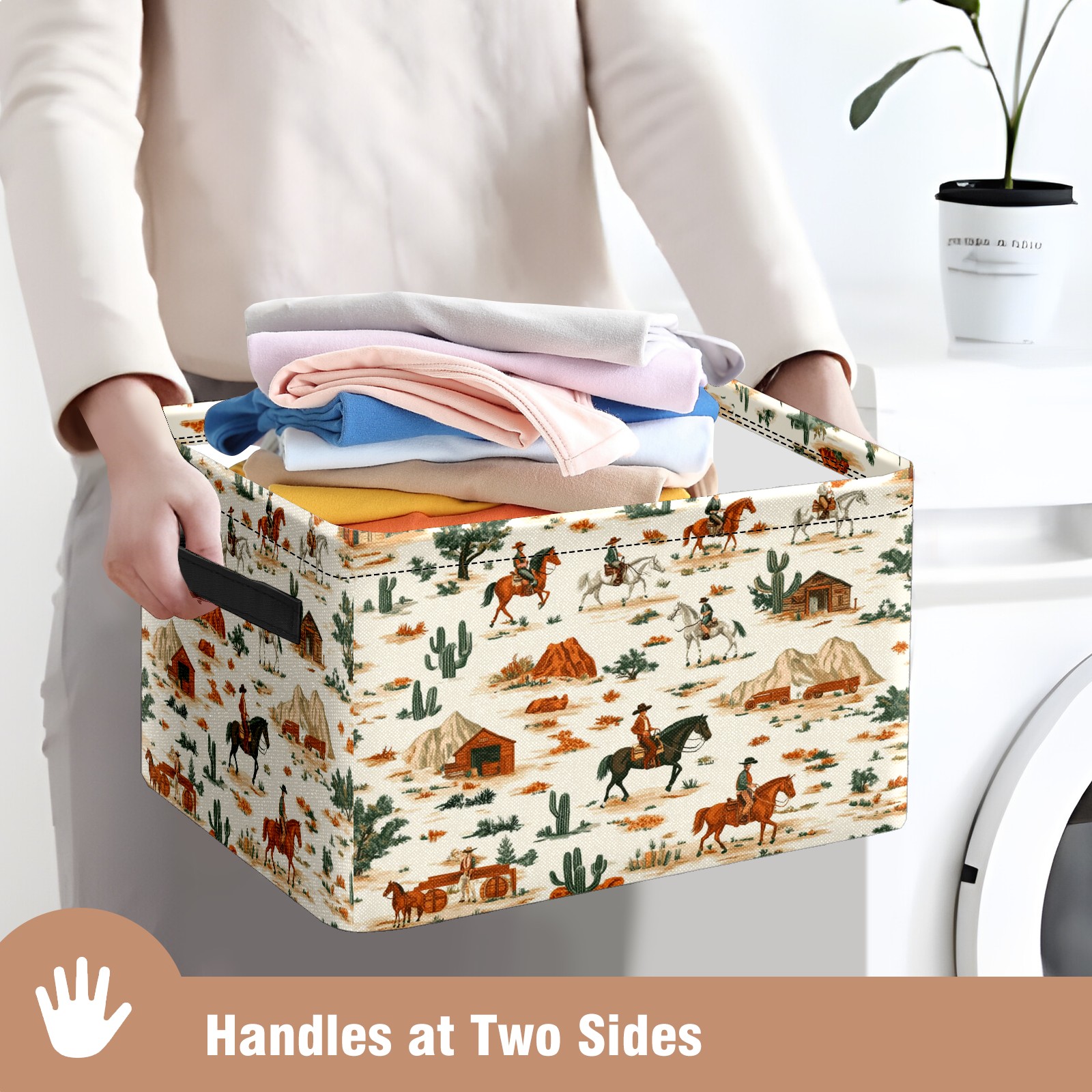 Foldable and Stackable Fabric Storage Basket for Home Organization with Handles, Decorative Closet Bins for Shelves and Laundry Storage( Western Theme Pattern)