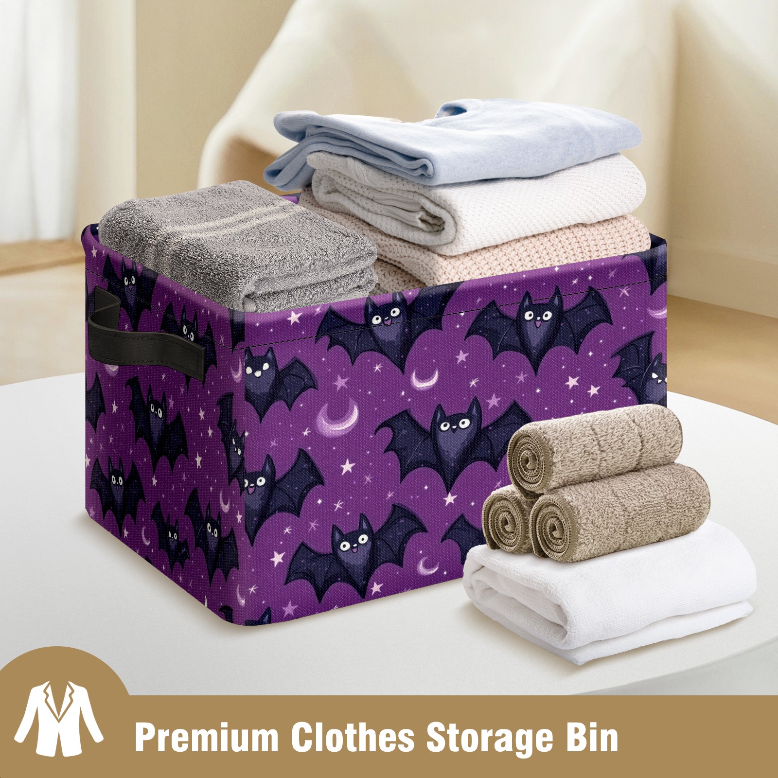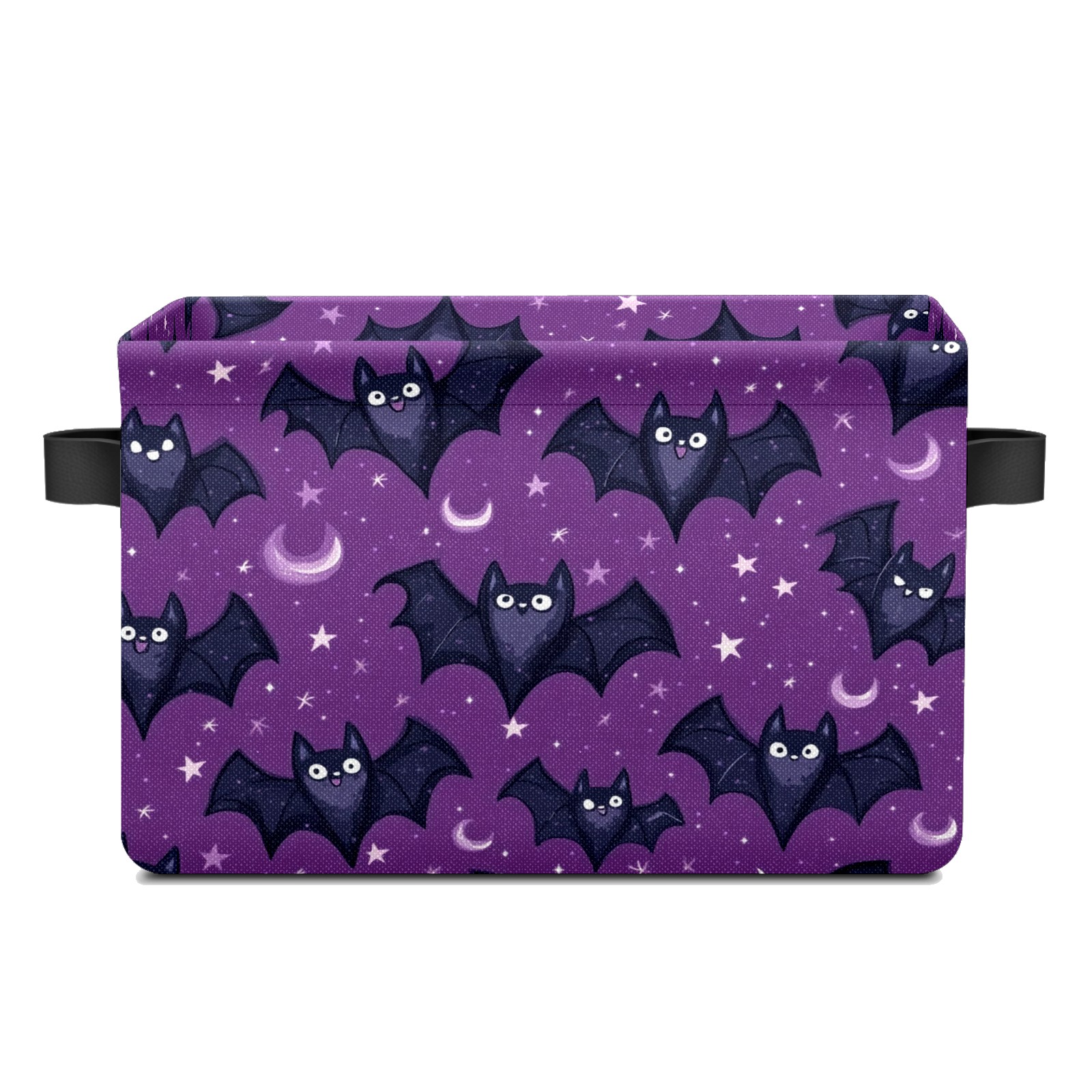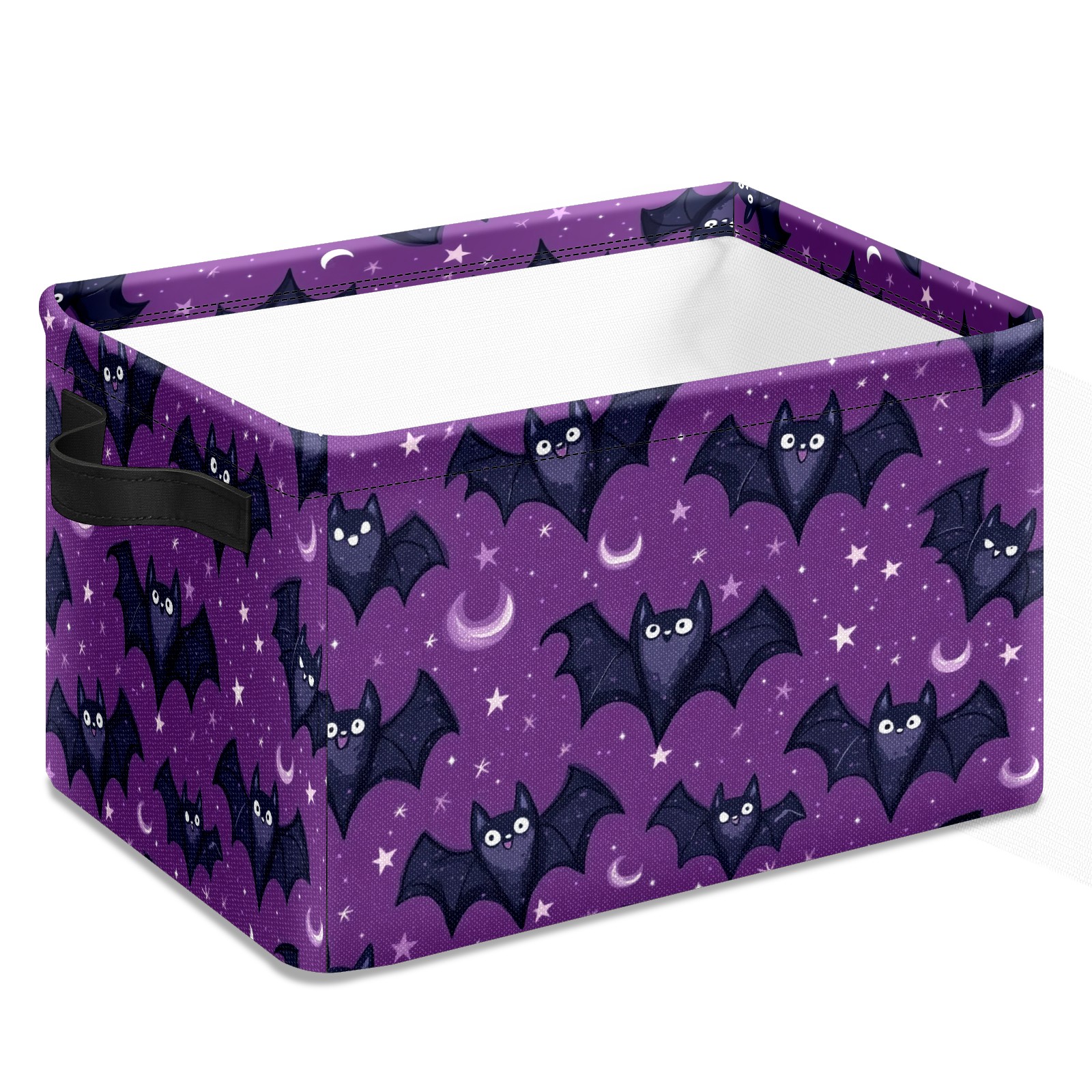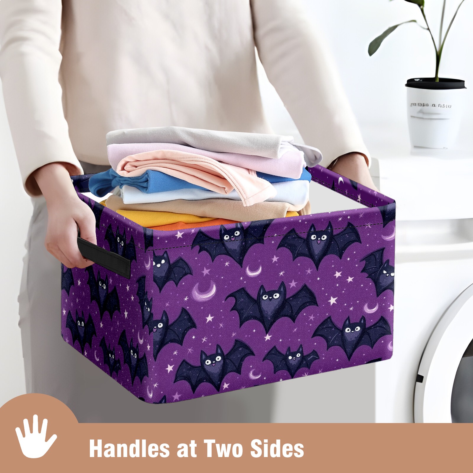 Foldable and Stackable Fabric Storage Basket for Home Organization with Handles, Decorative Closet Bins for Shelves and Laundry Storage( Bats With Tiny Stars)