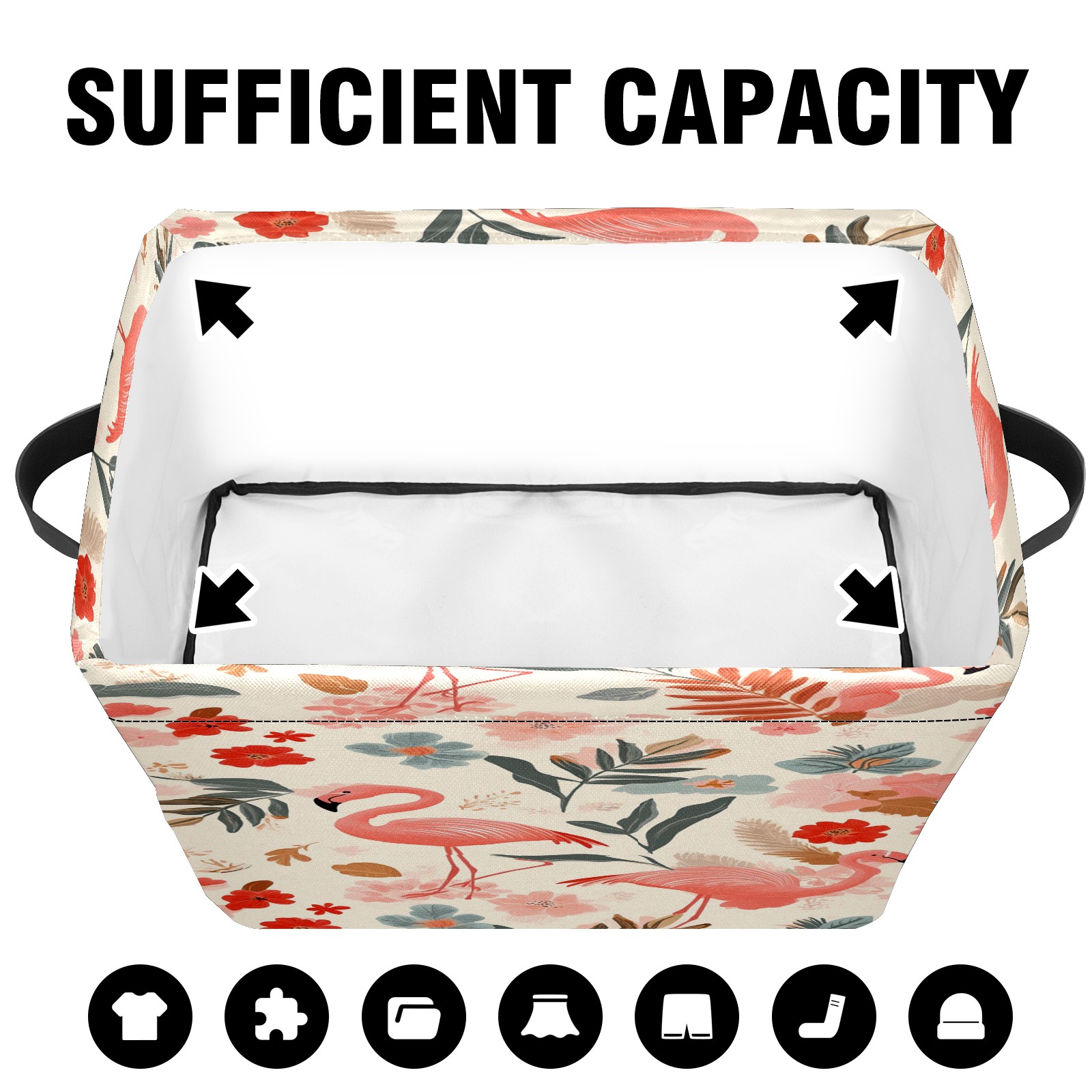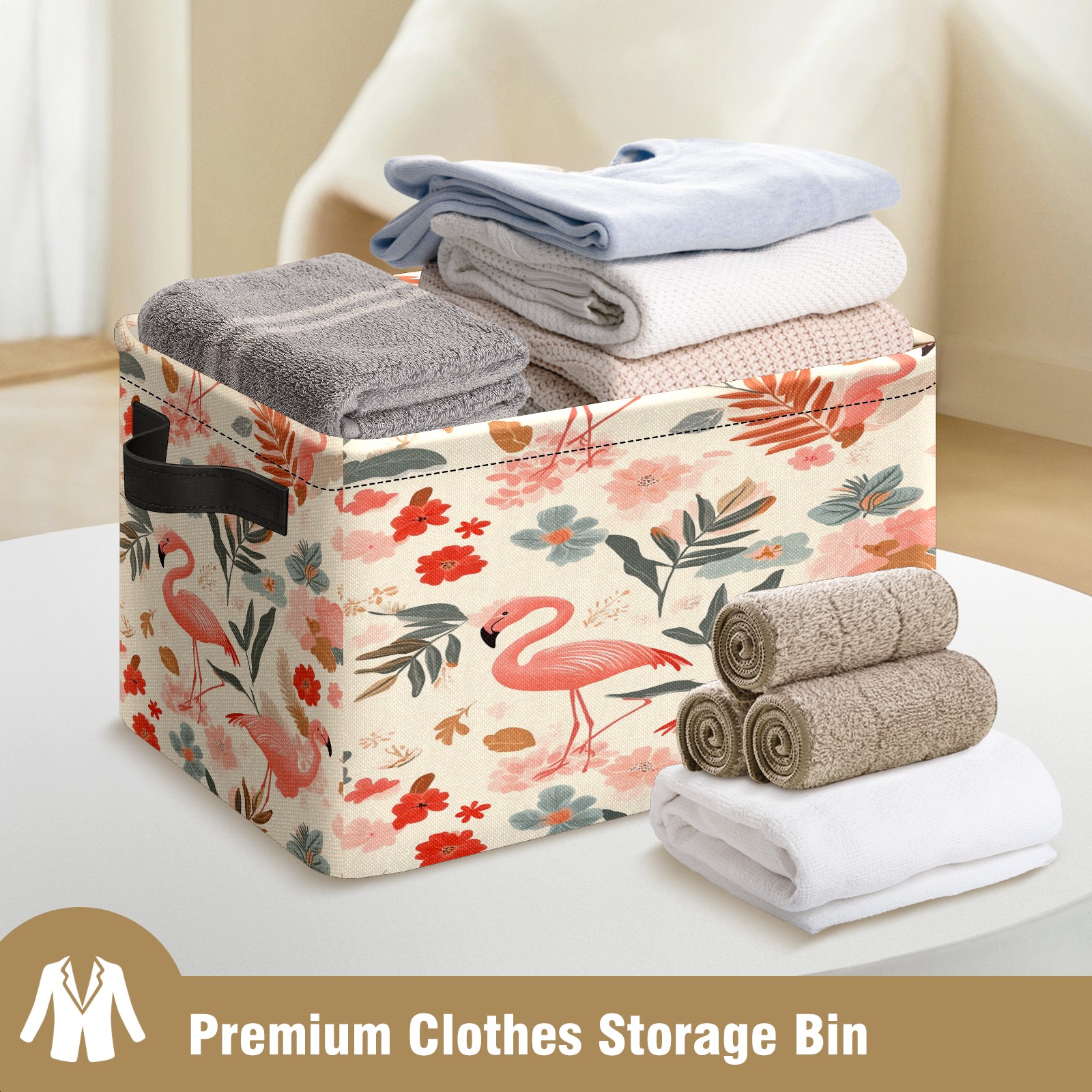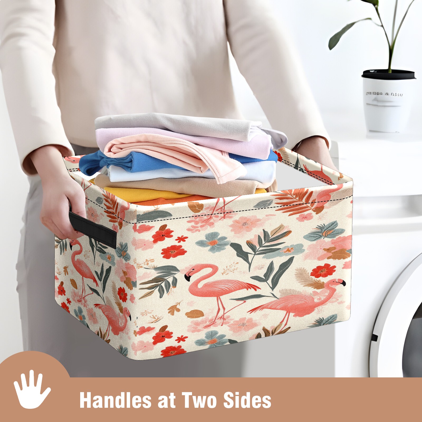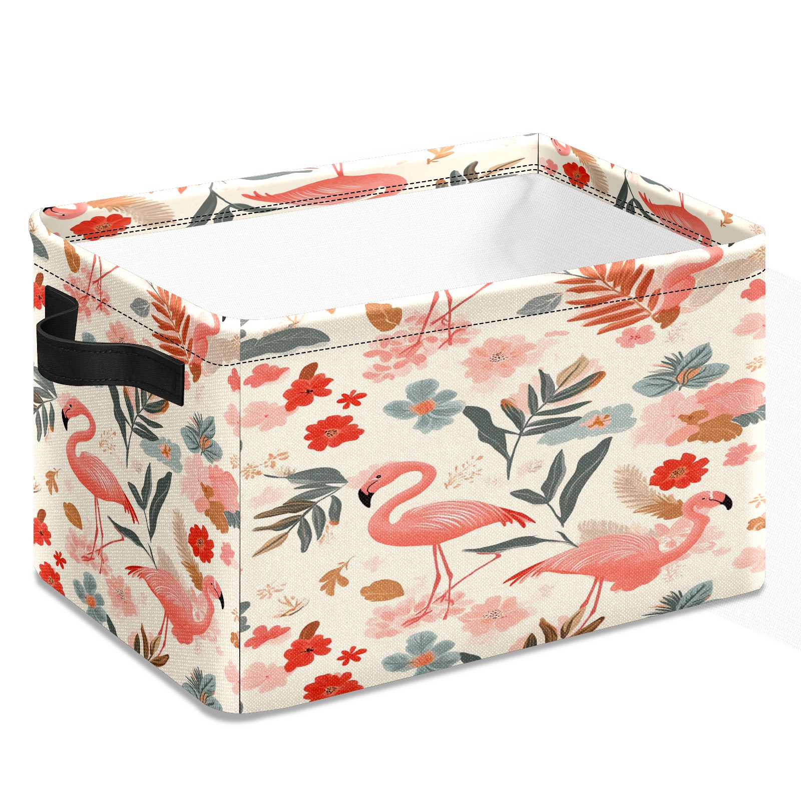 Foldable and Stackable Fabric Storage Basket for Home Organization with Handles, Decorative Closet Bins for Shelves and Laundry Storage( Pink Flamingos)