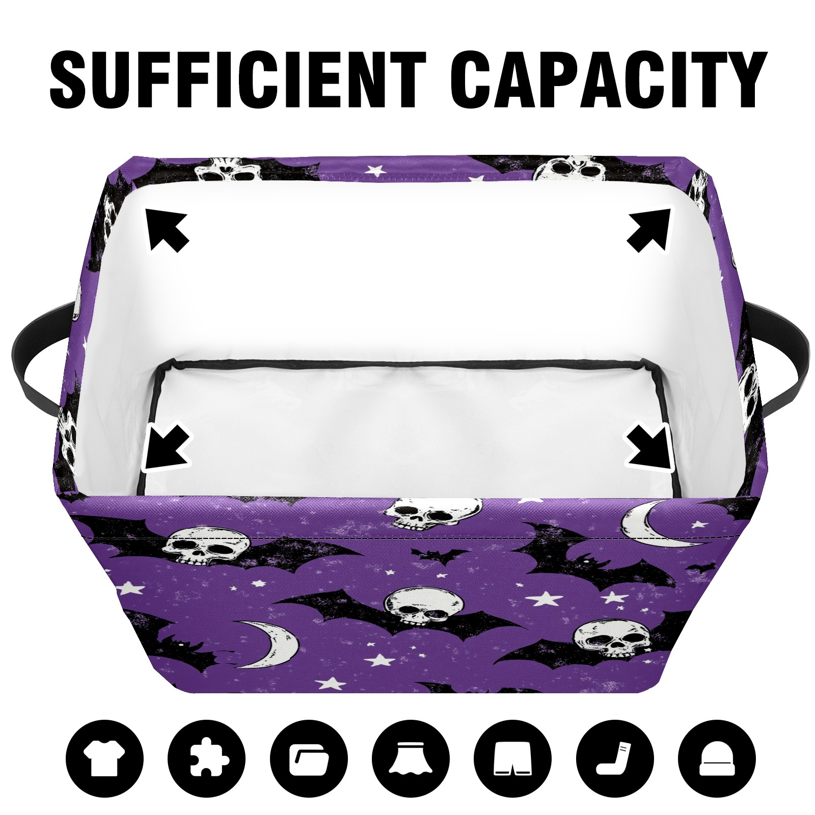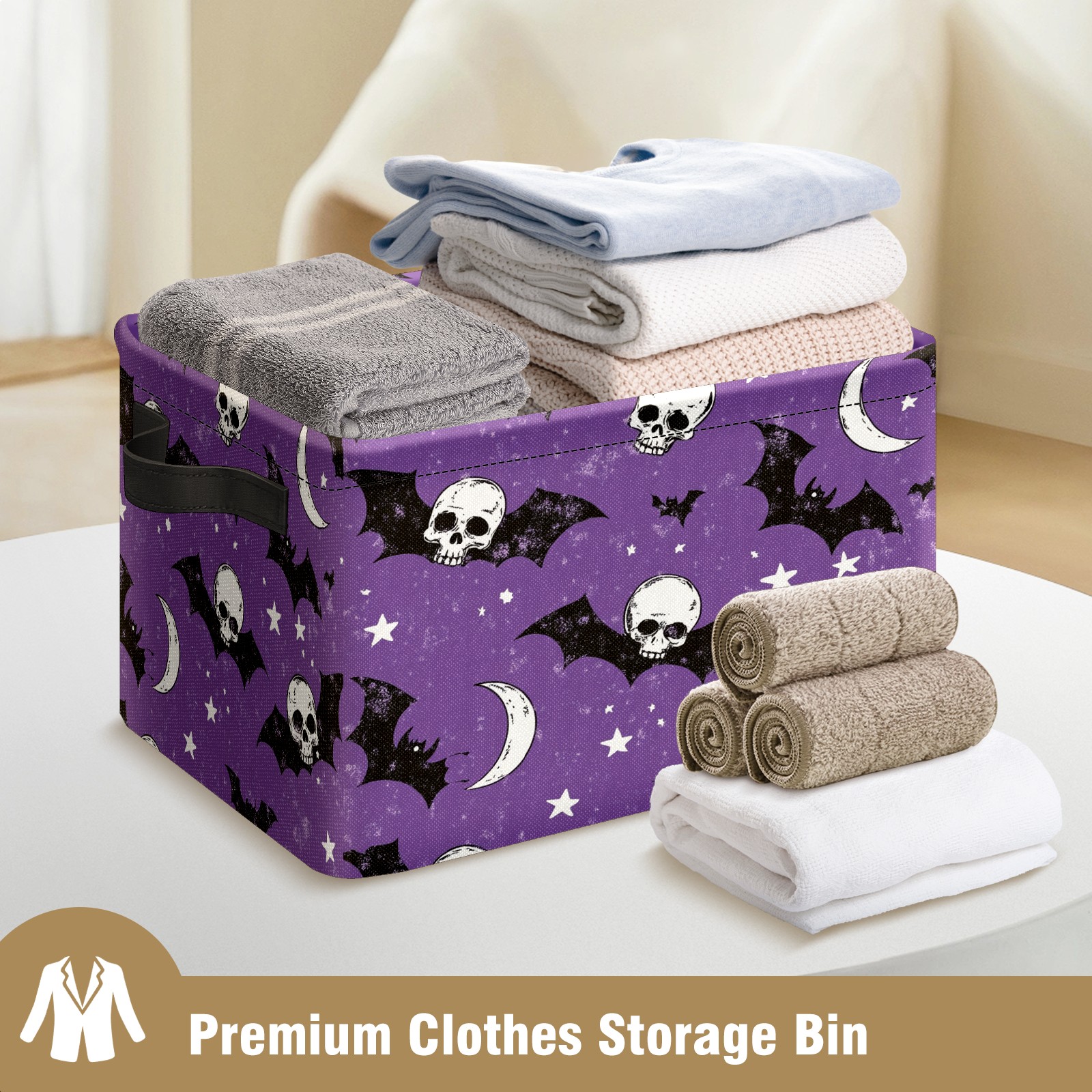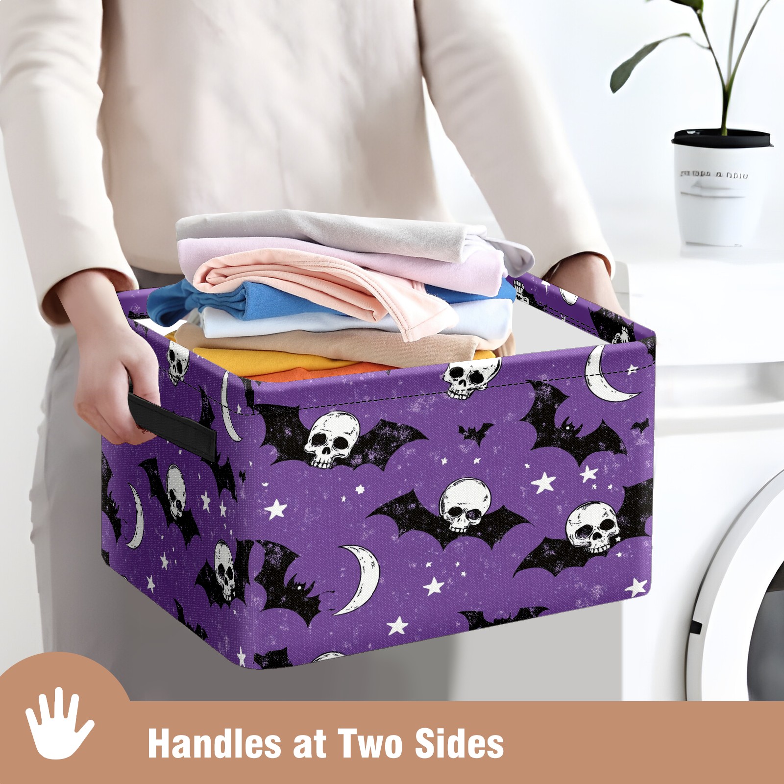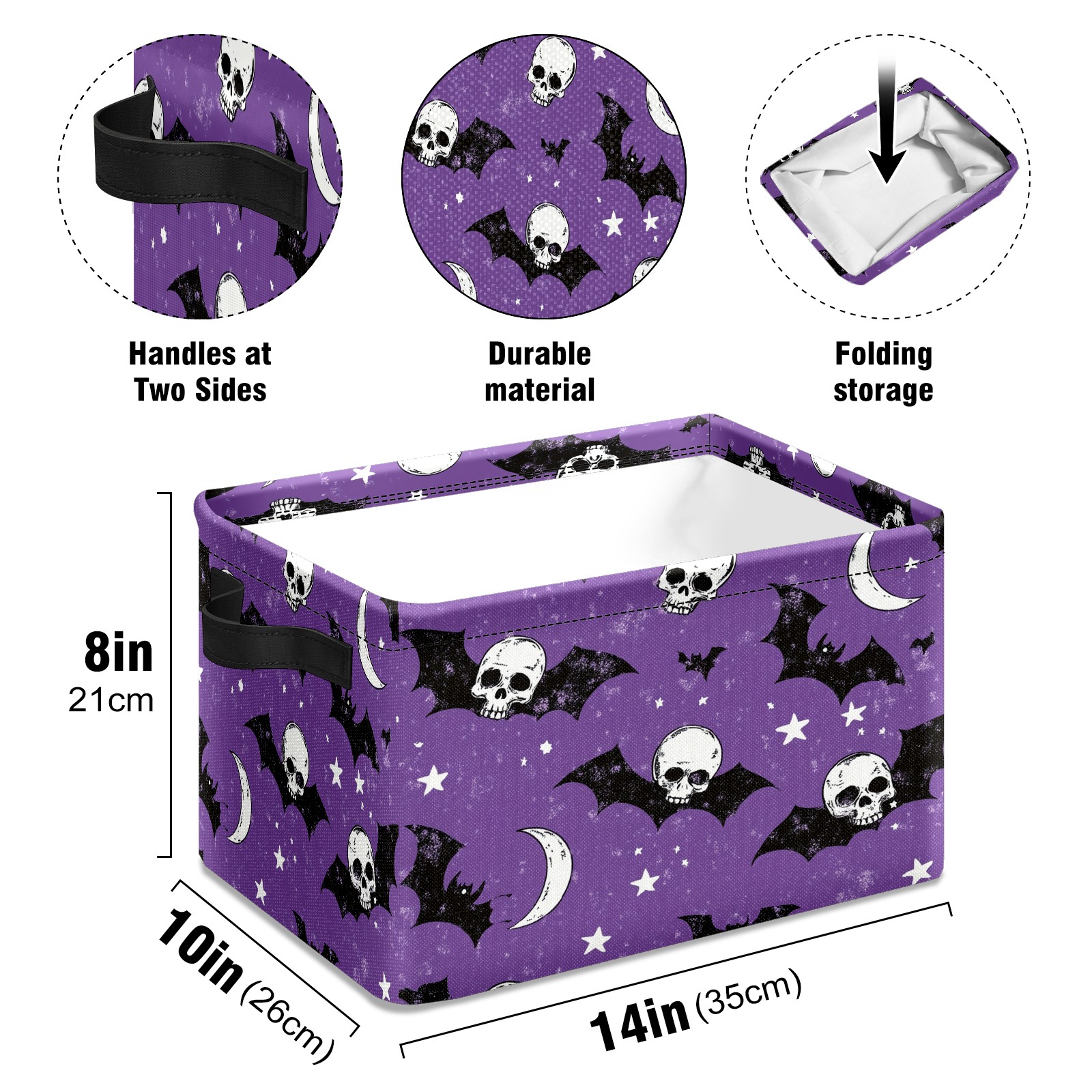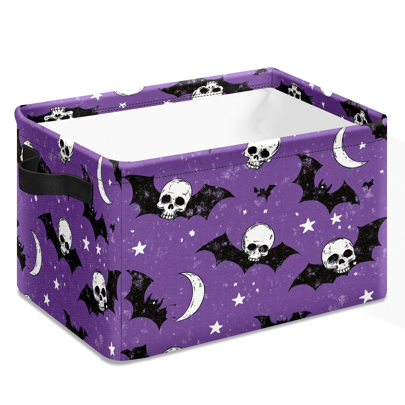 Foldable and Stackable Fabric Storage Basket for Home Organization with Handles, Decorative Closet Bins for Shelves and Laundry Storage( Bats And Skulls)