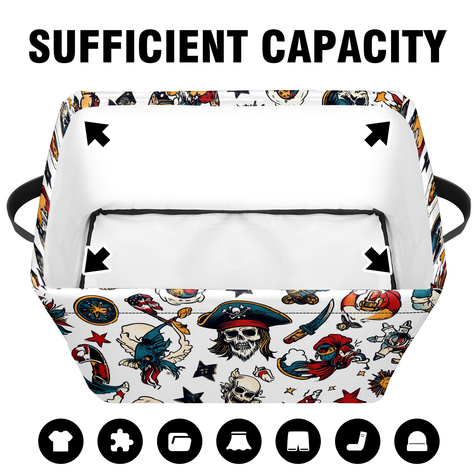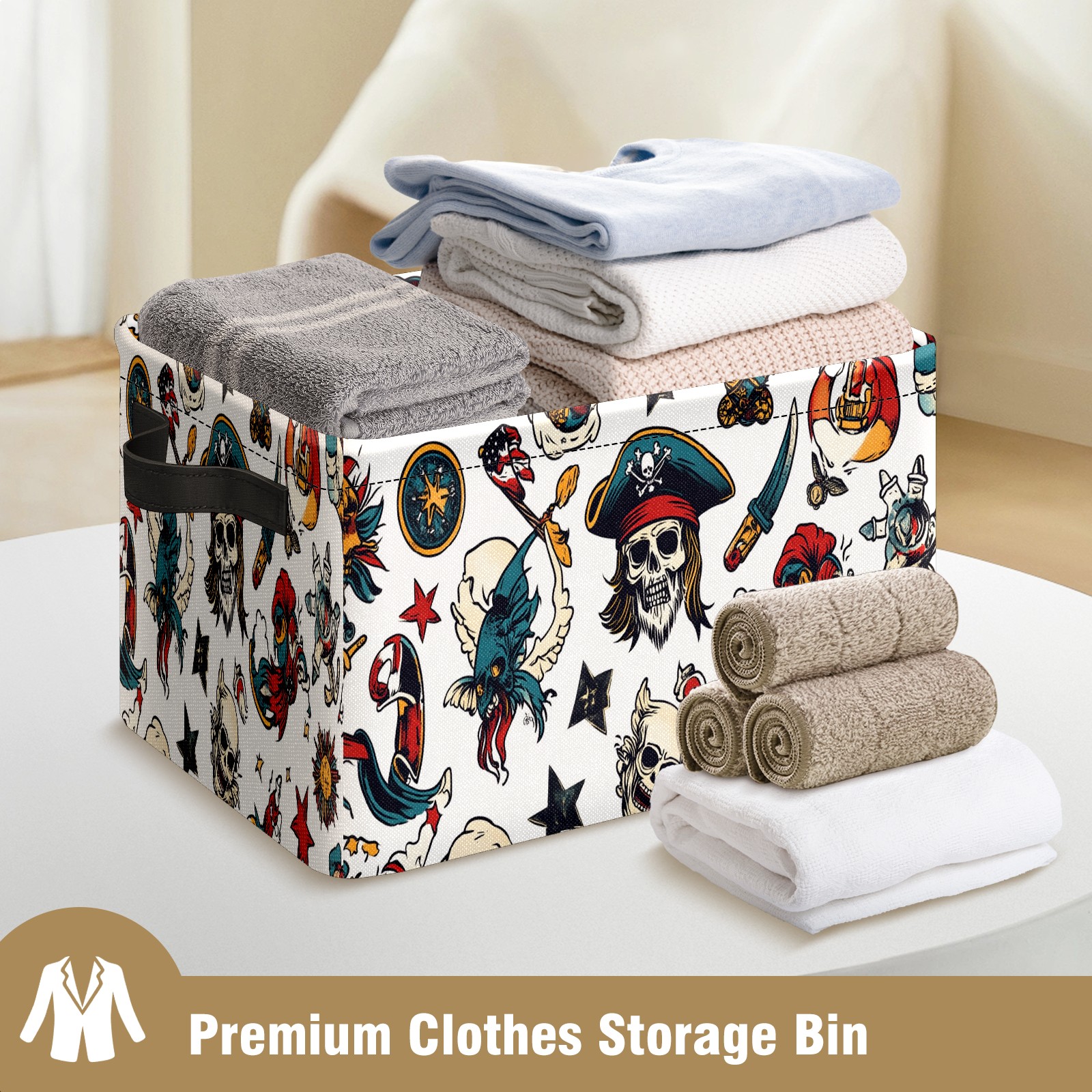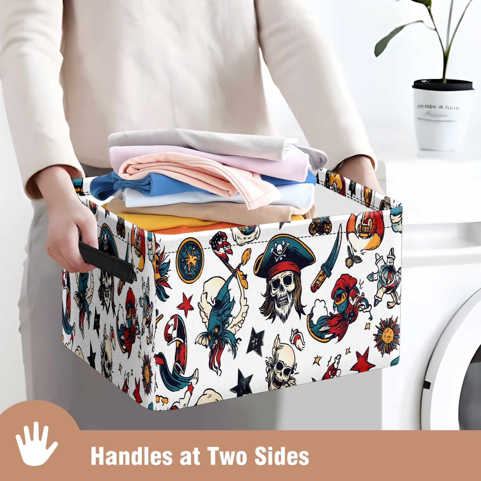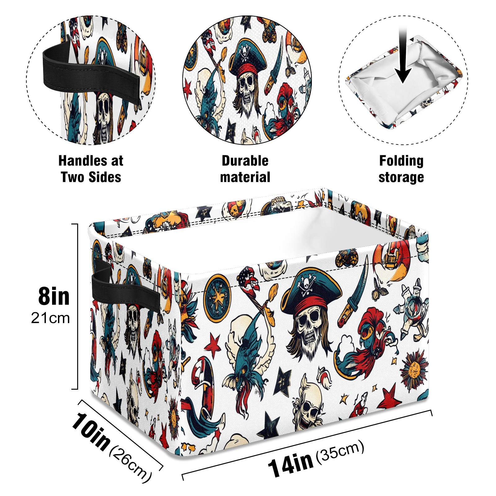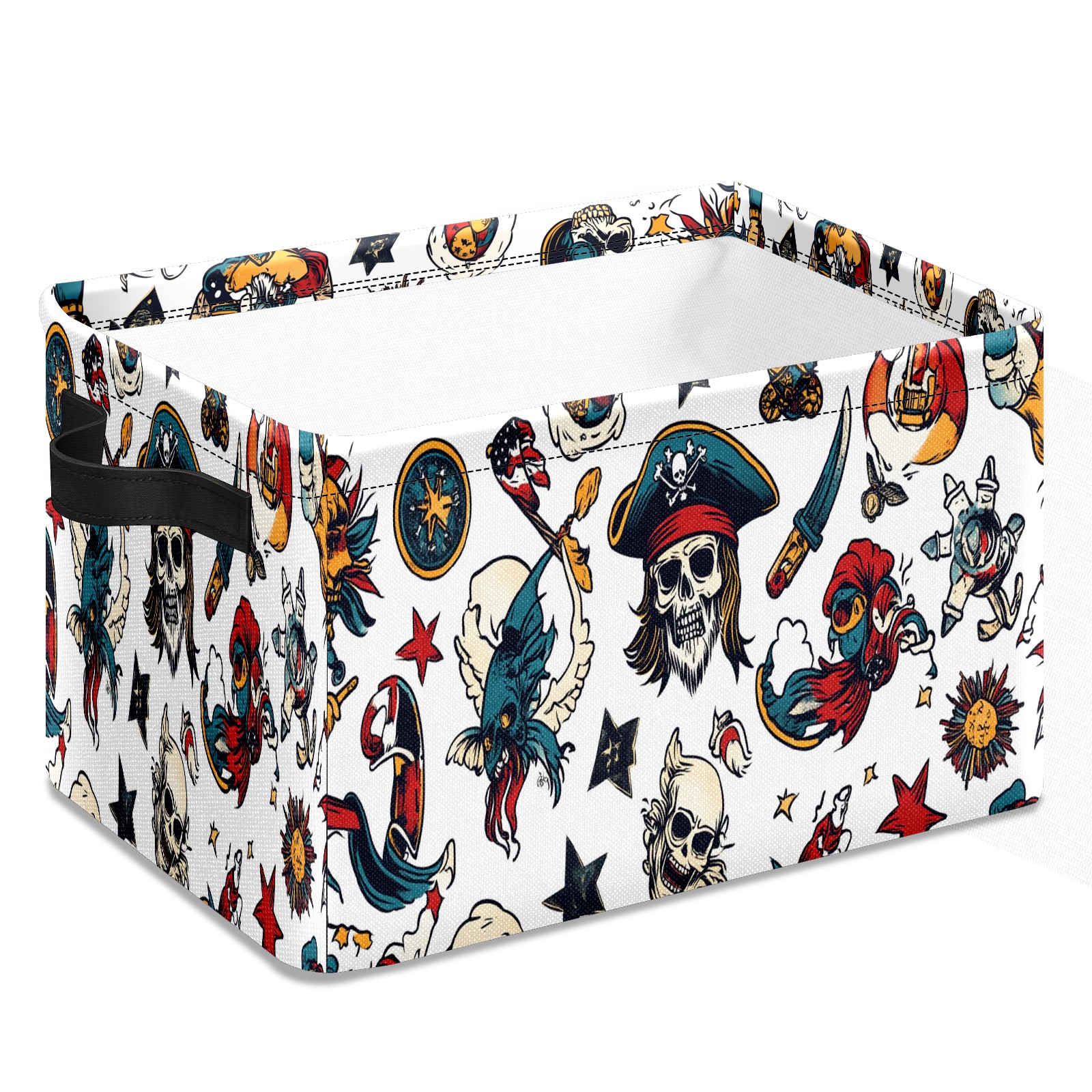 Foldable and Stackable Fabric Storage Basket for Home Organization with Handles, Decorative Closet Bins for Shelves and Laundry Storage( Cartoon-style Pirate)