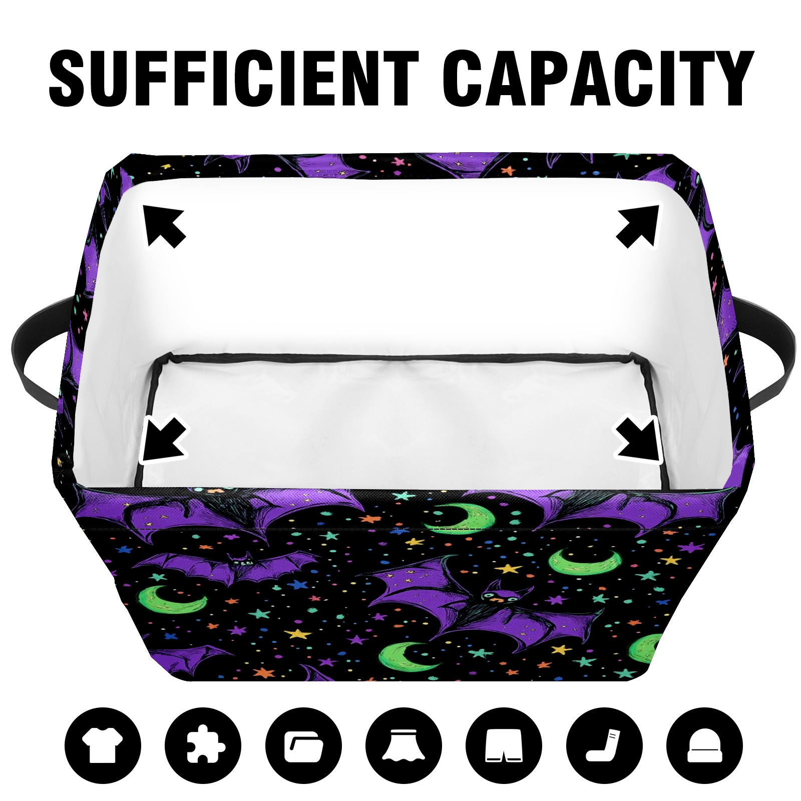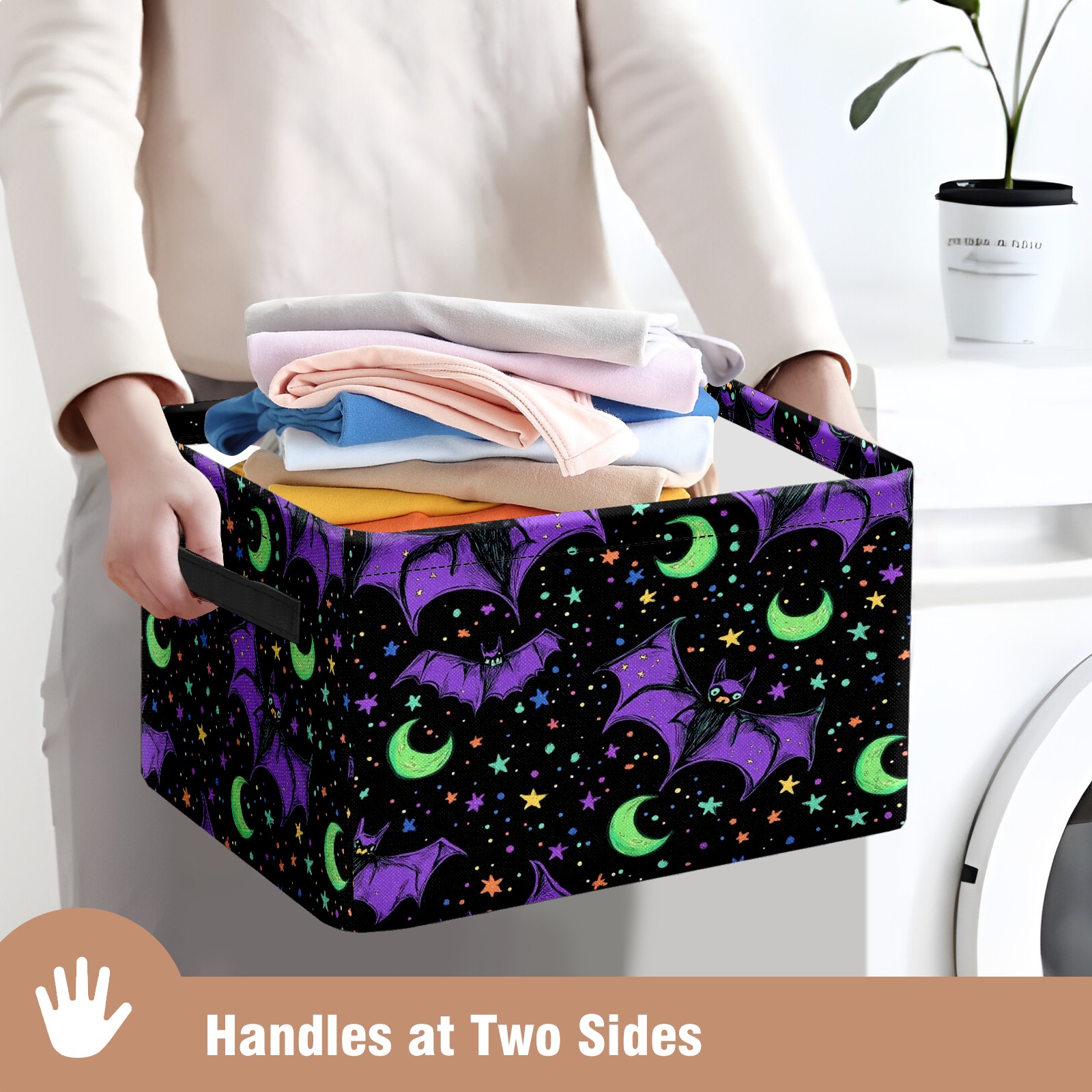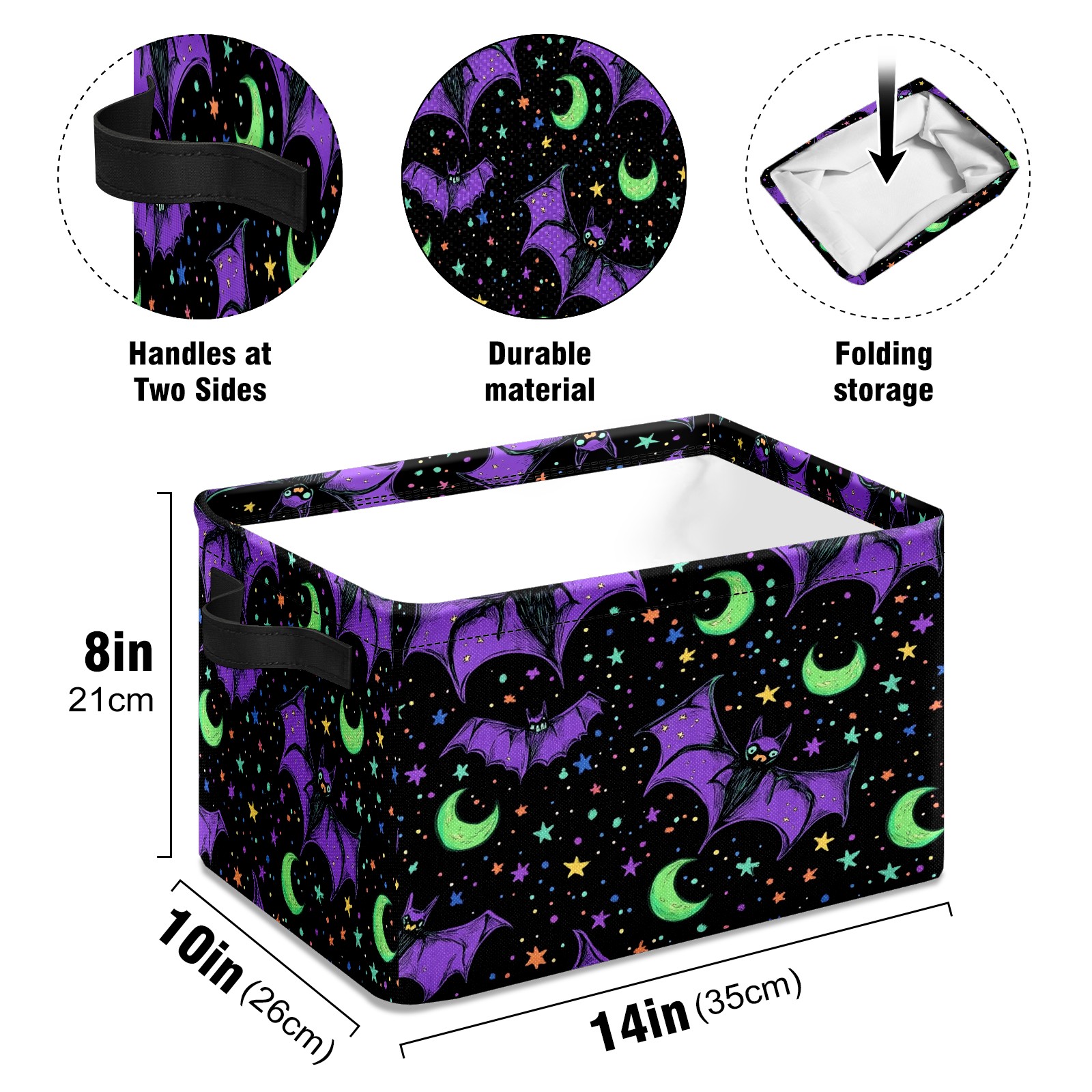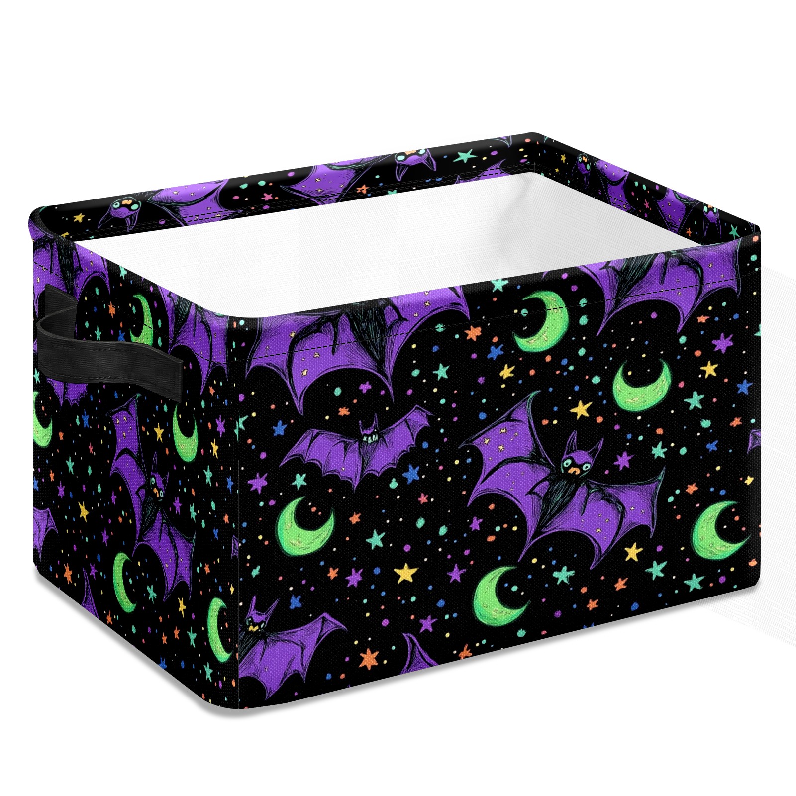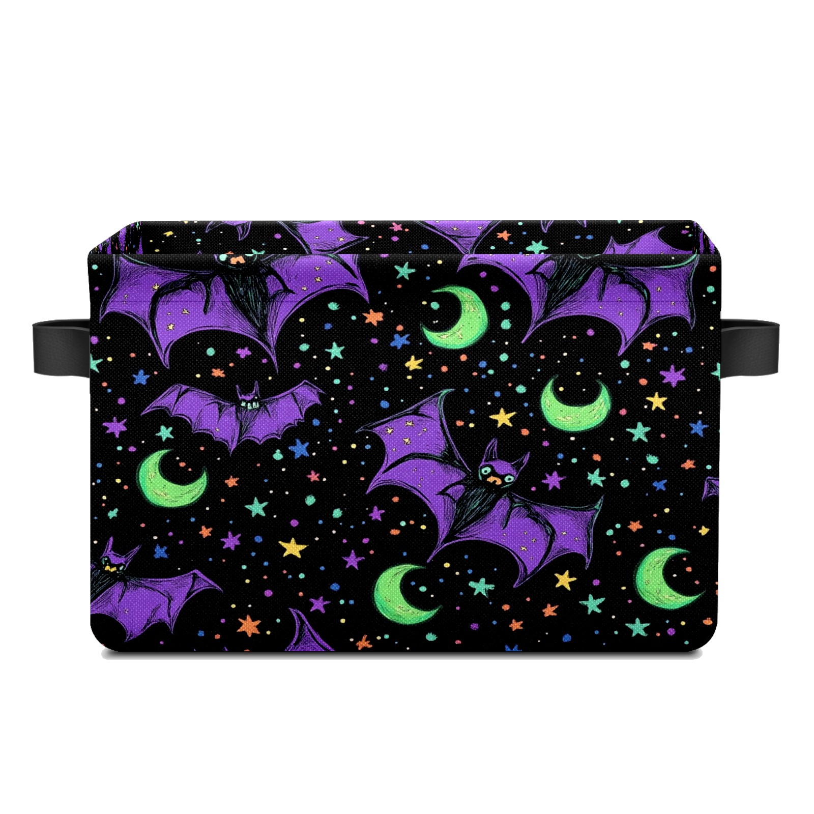 Foldable and Stackable Fabric Storage Basket for Home Organization with Handles, Decorative Closet Bins for Shelves and Laundry Storage( Bats And Green Moons)