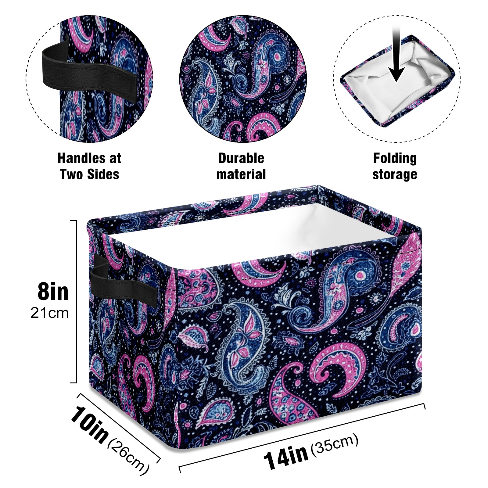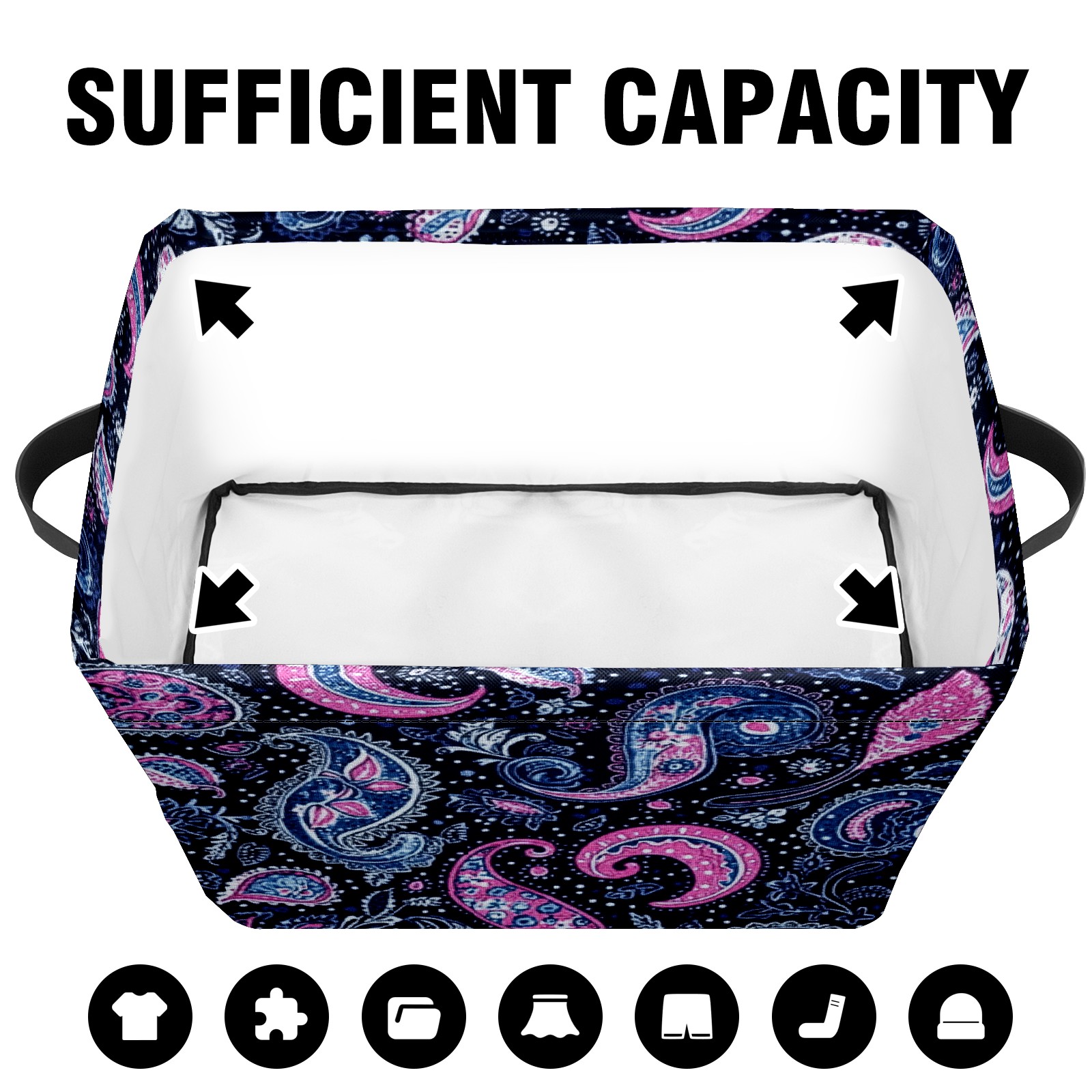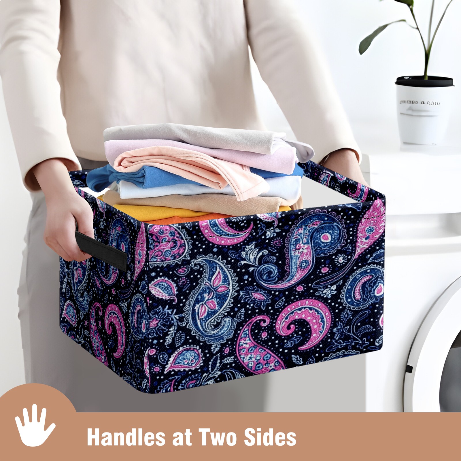 Foldable and Stackable Fabric Storage Basket for Home Organization with Handles, Decorative Closet Bins for Shelves and Laundry Storage( Blue Pink And Purple Paisley)