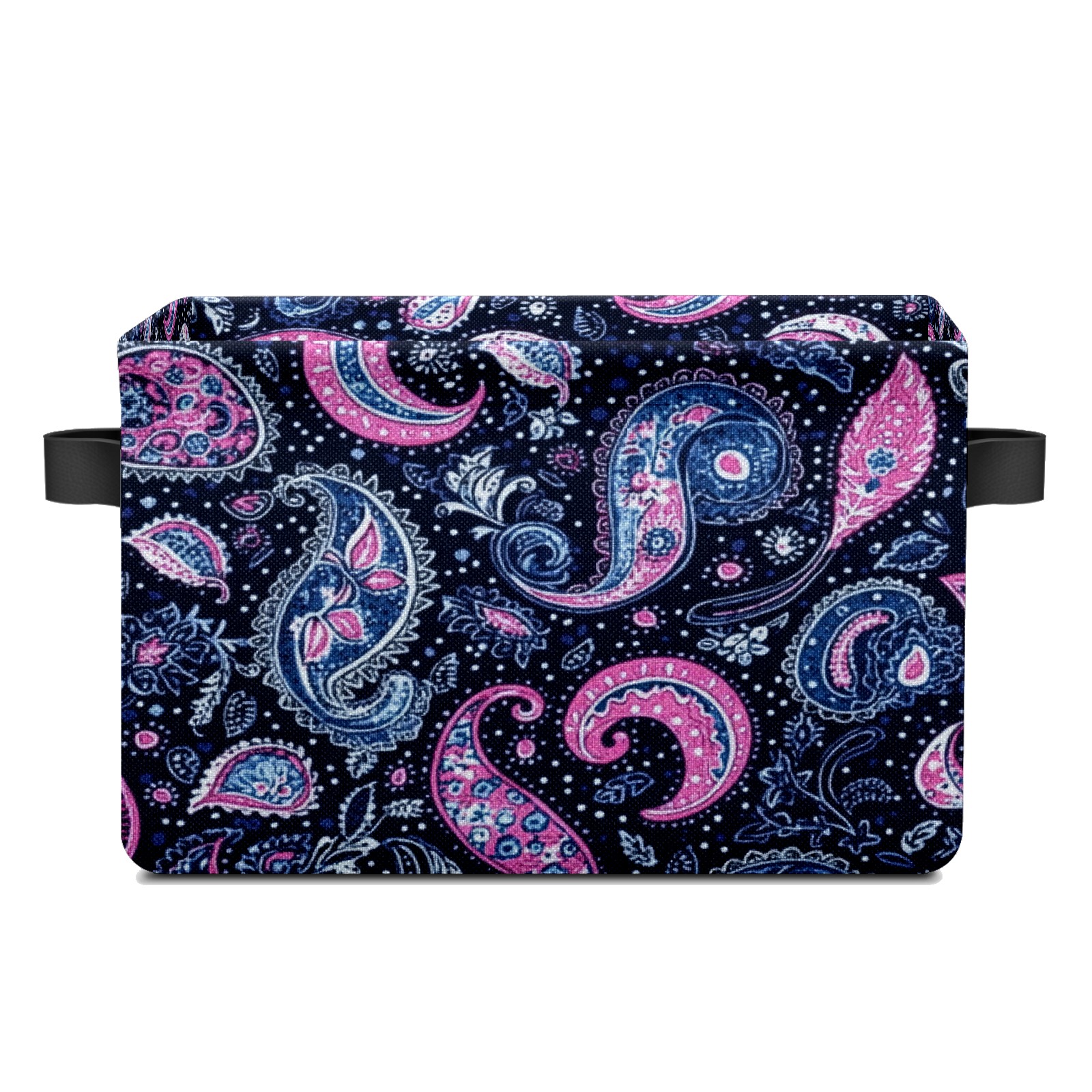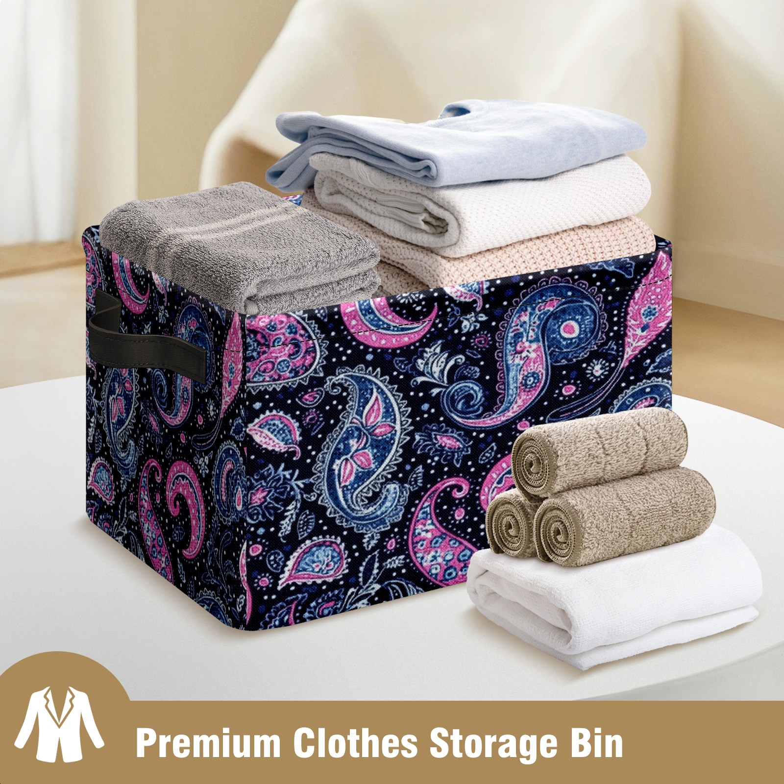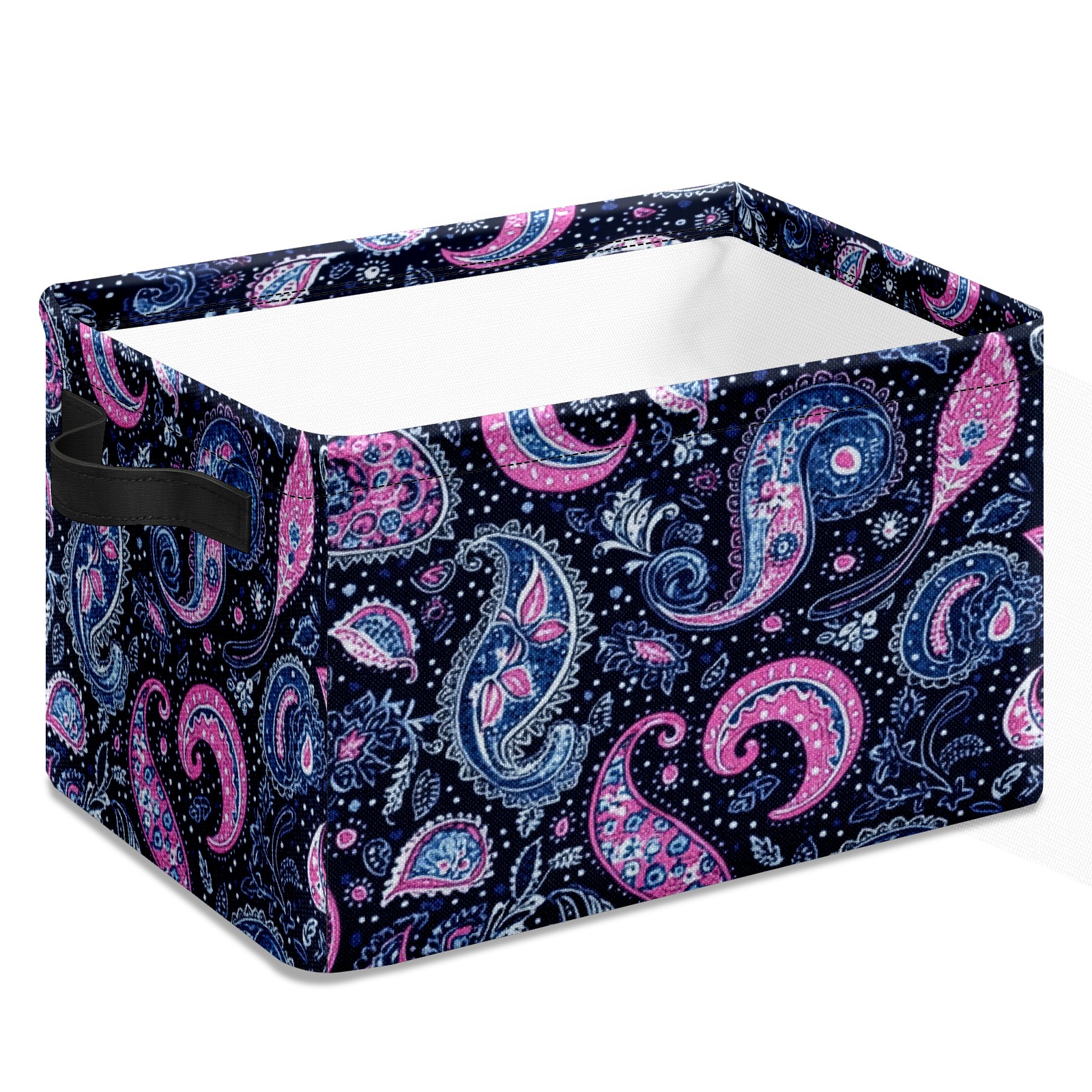 Foldable and Stackable Fabric Storage Basket for Home Organization with Handles, Decorative Closet Bins for Shelves and Laundry Storage( Blue Pink And Purple Paisley)