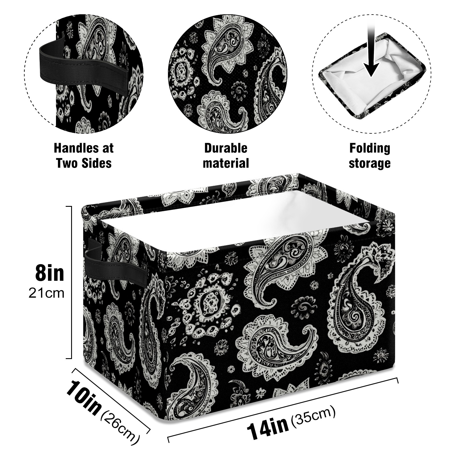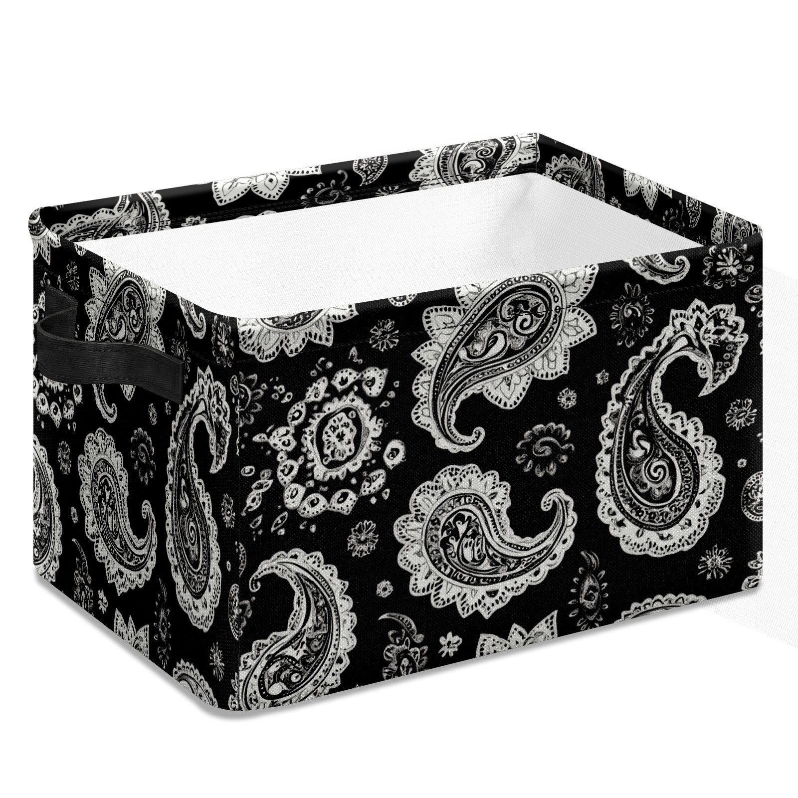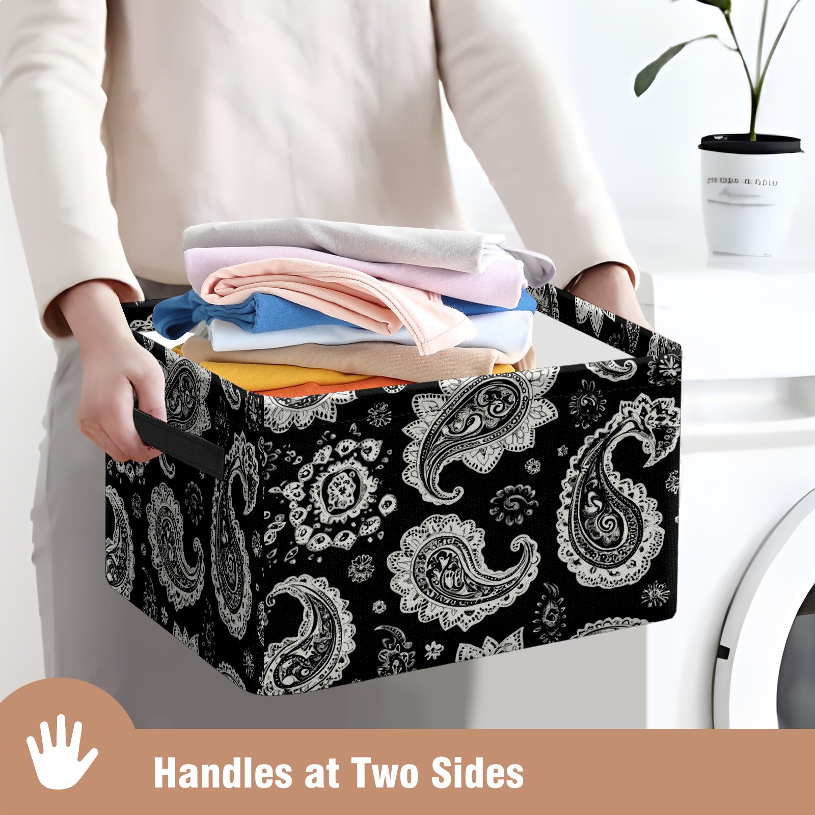 Foldable and Stackable Fabric Storage Basket for Home Organization with Handles, Decorative Closet Bins for Shelves and Laundry Storage( Black And White Paisley)