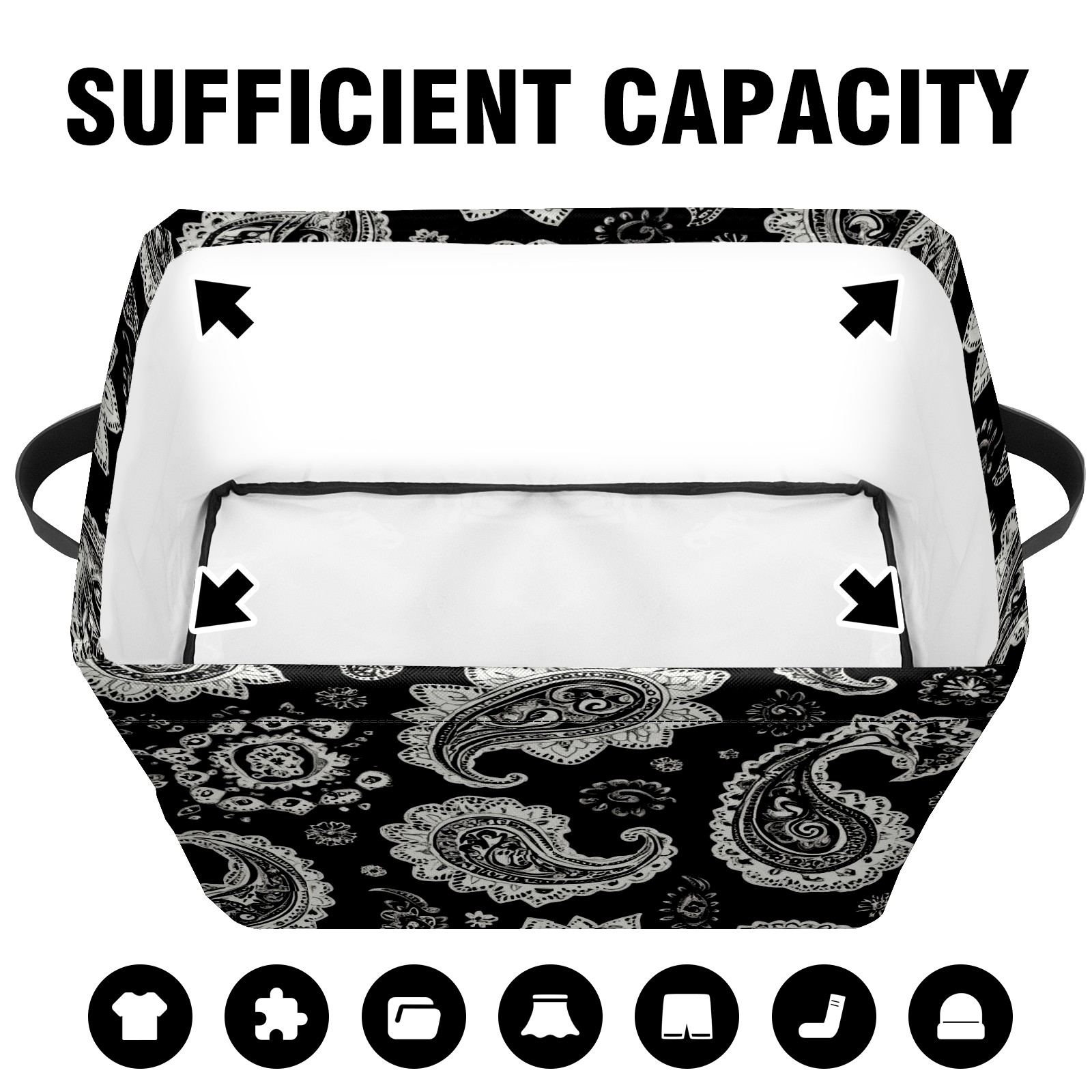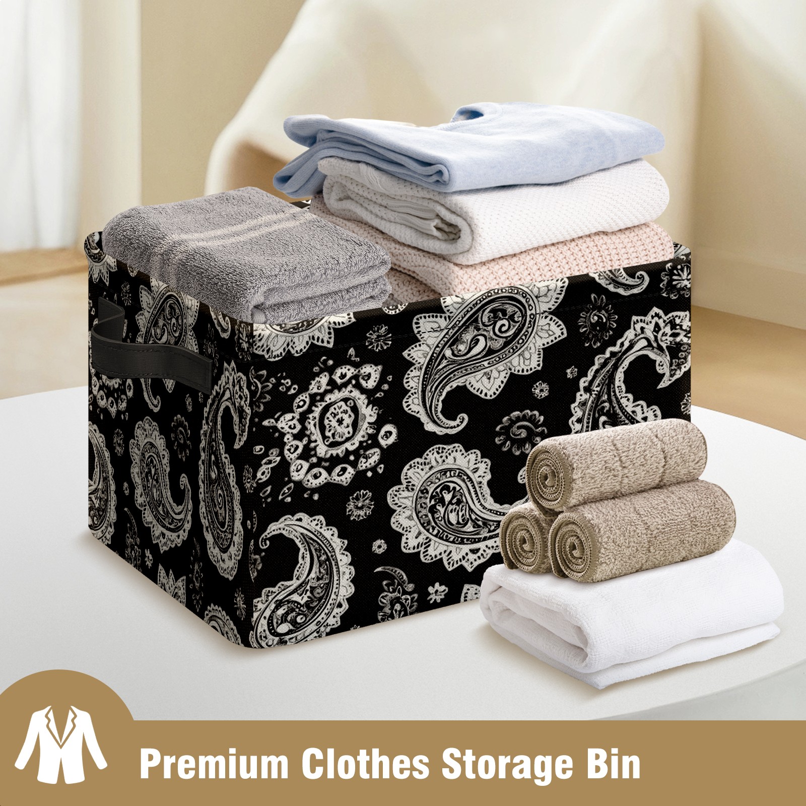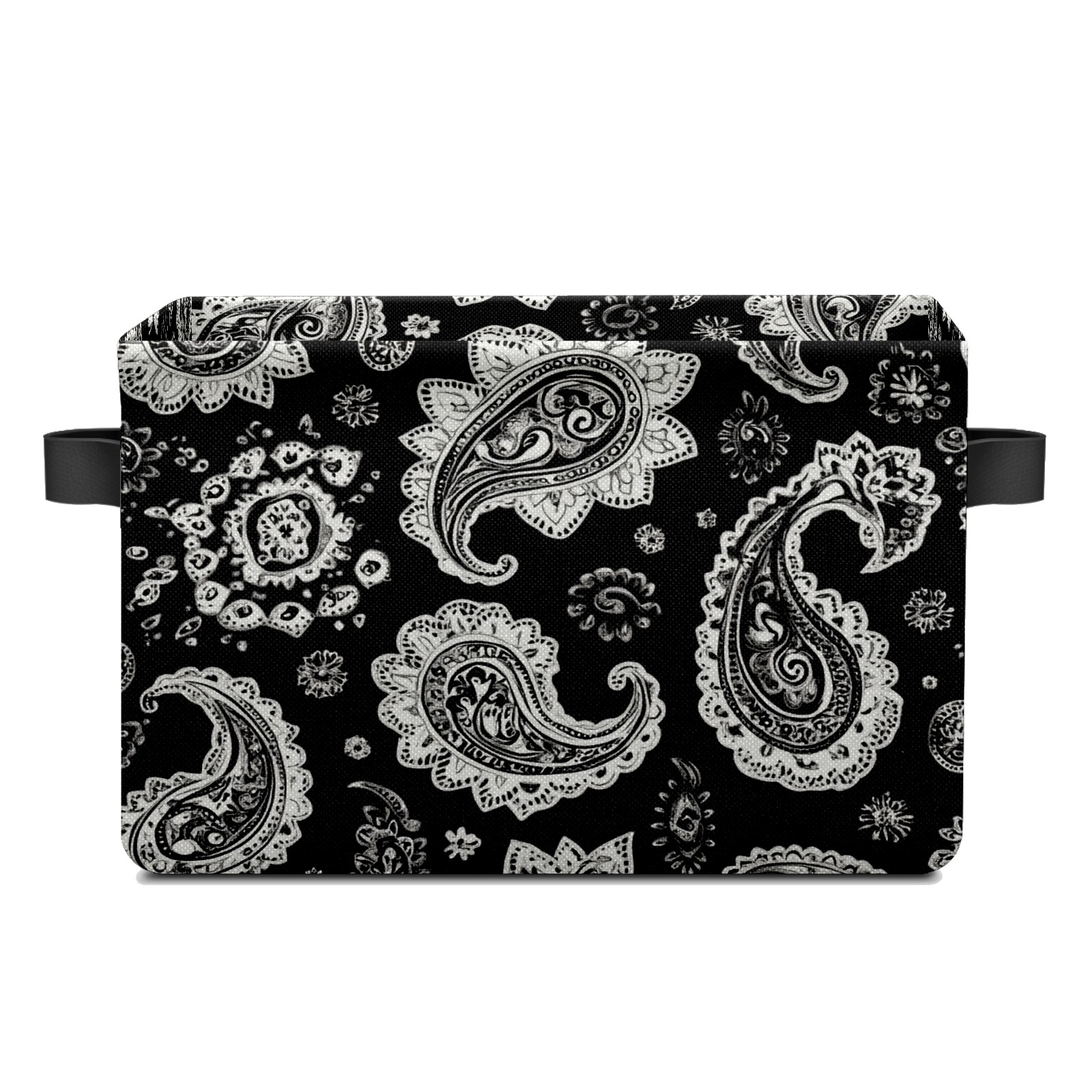 Foldable and Stackable Fabric Storage Basket for Home Organization with Handles, Decorative Closet Bins for Shelves and Laundry Storage( Black And White Paisley)