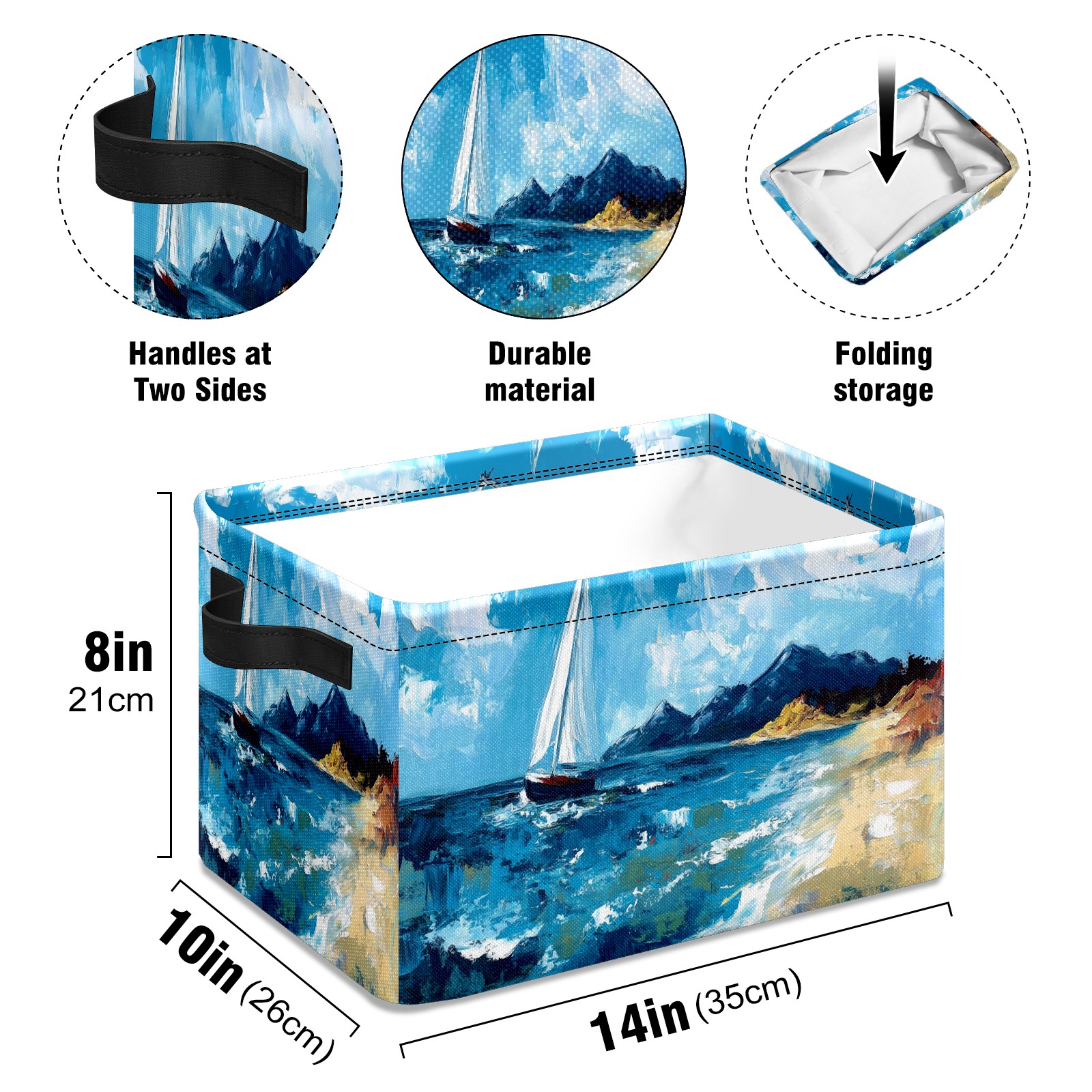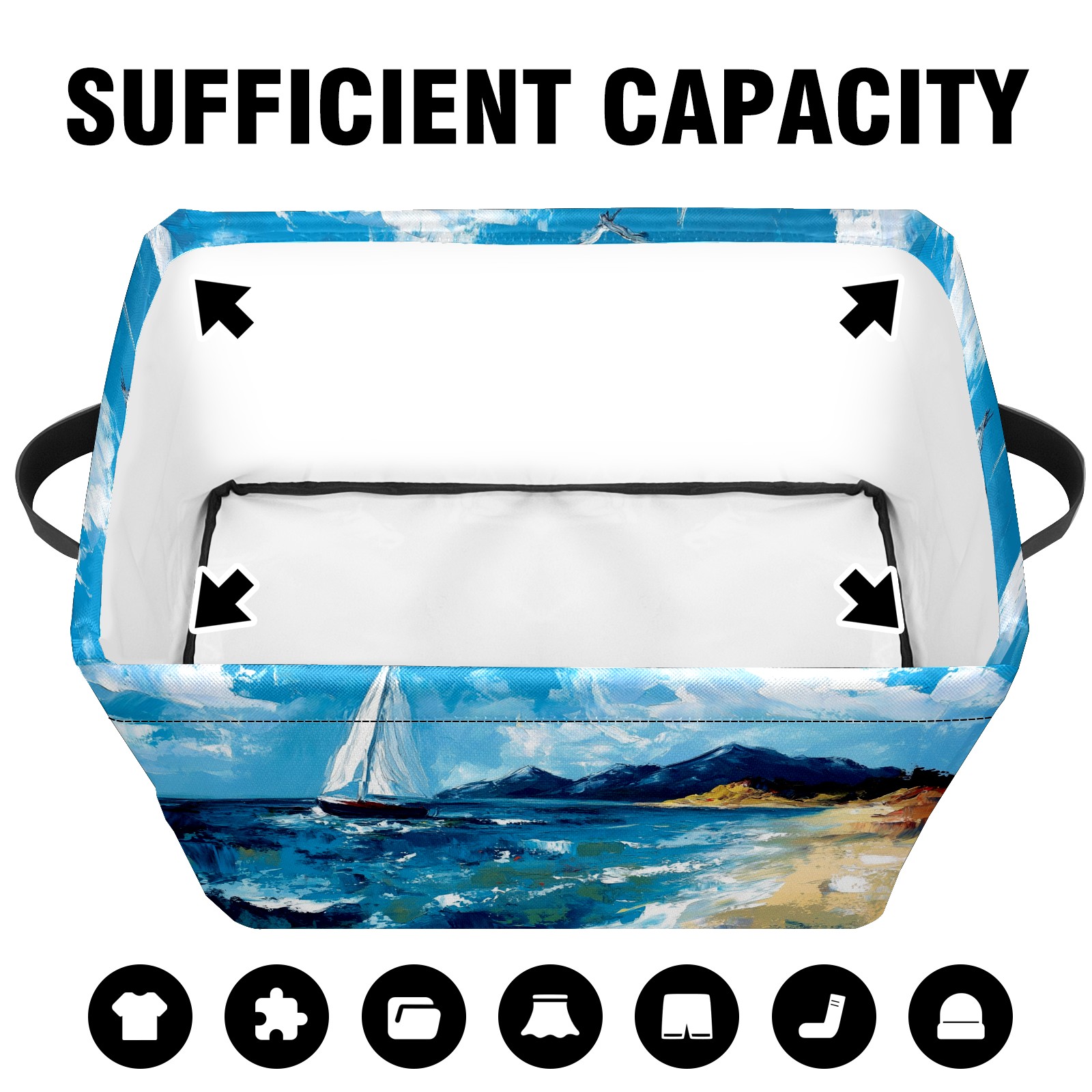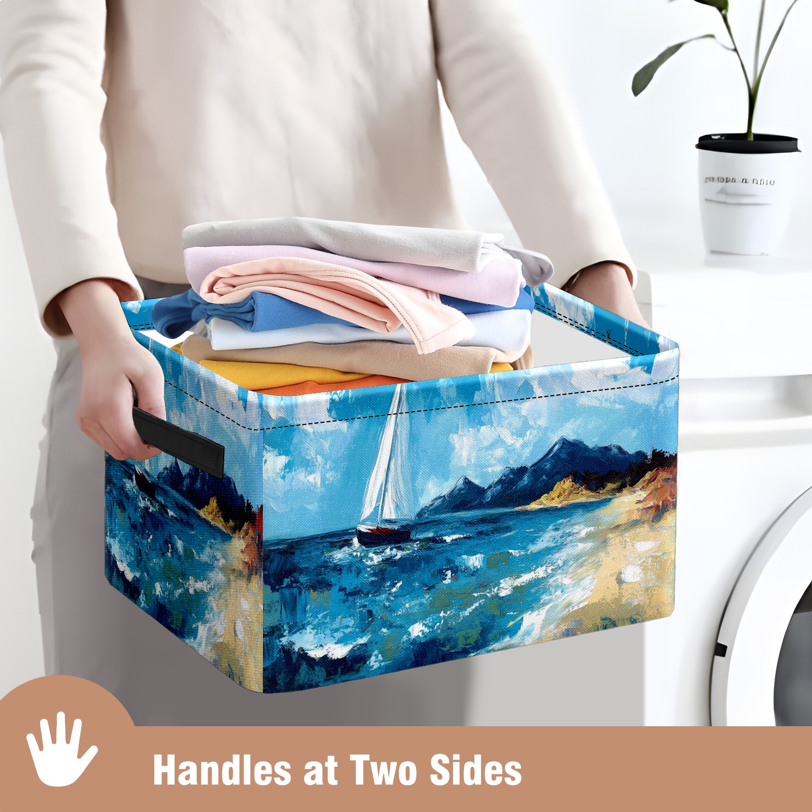 Foldable and Stackable Fabric Storage Basket for Home Organization with Handles, Decorative Closet Bins for Shelves and Laundry Storage( Sea)