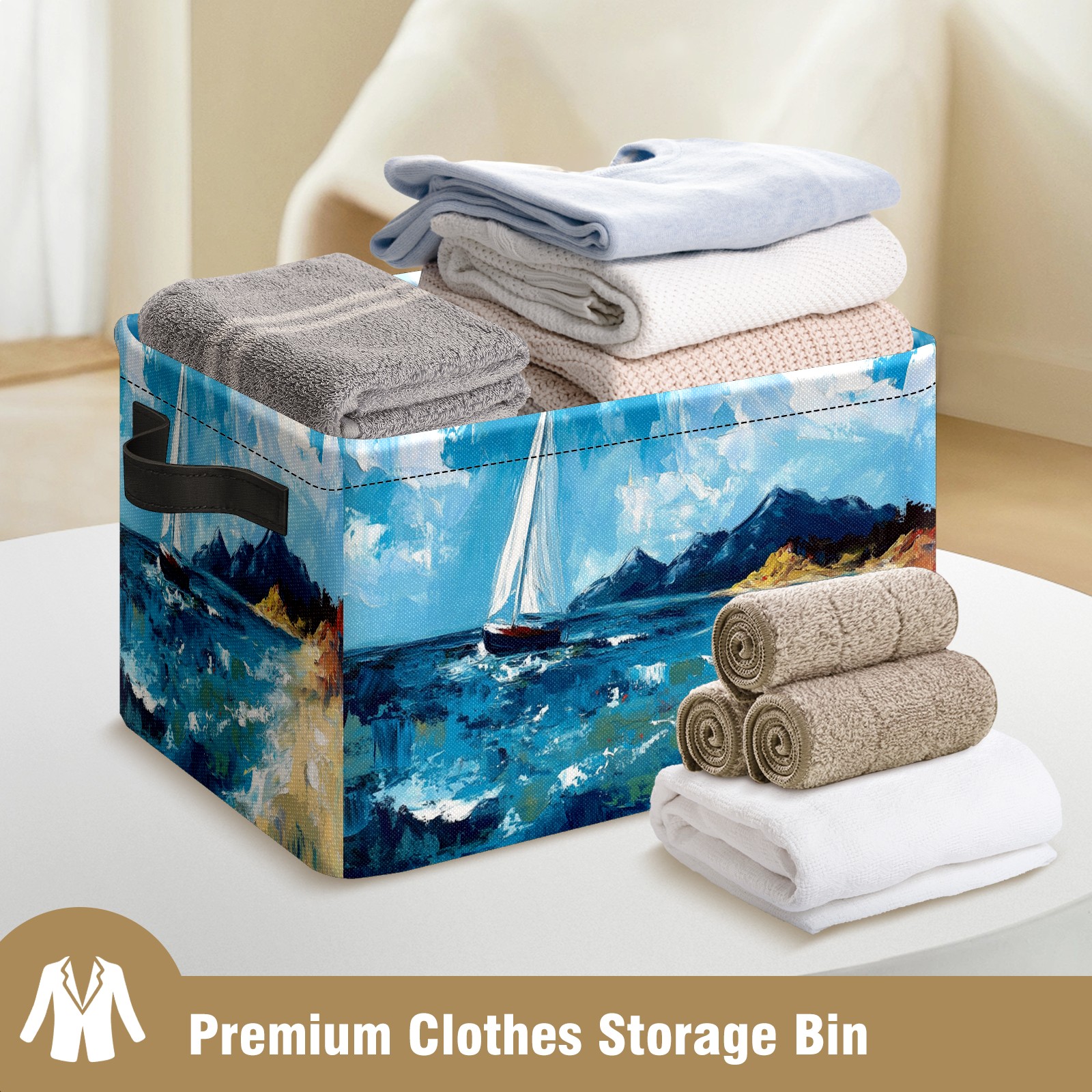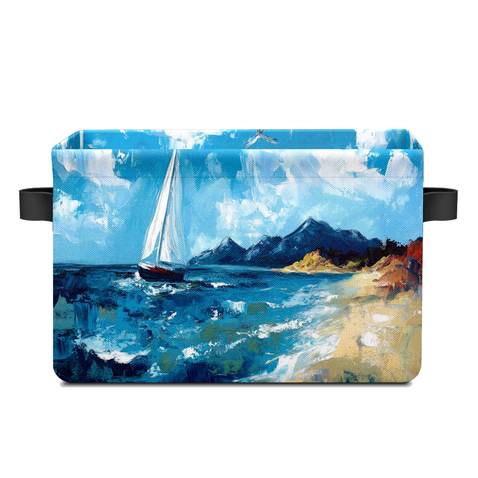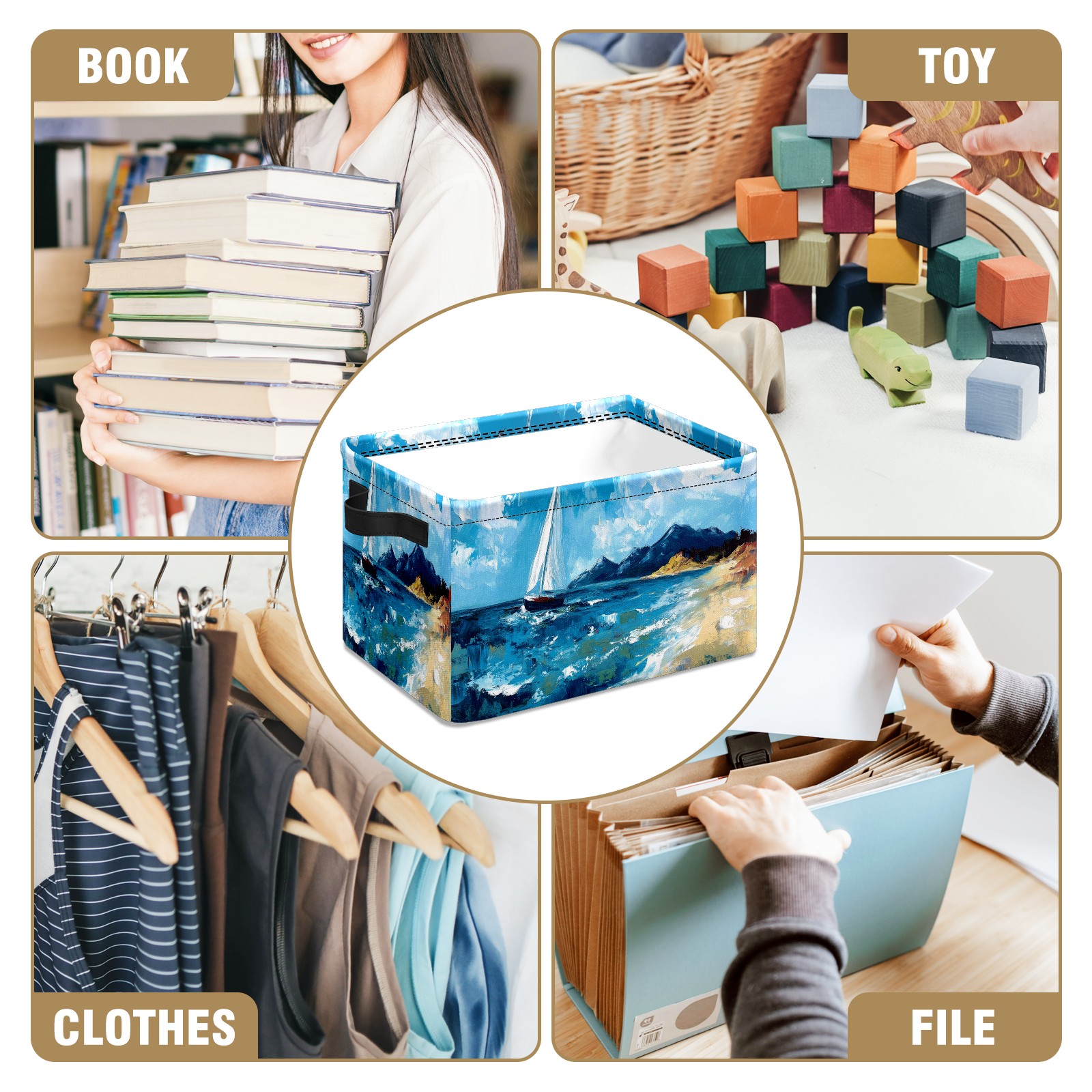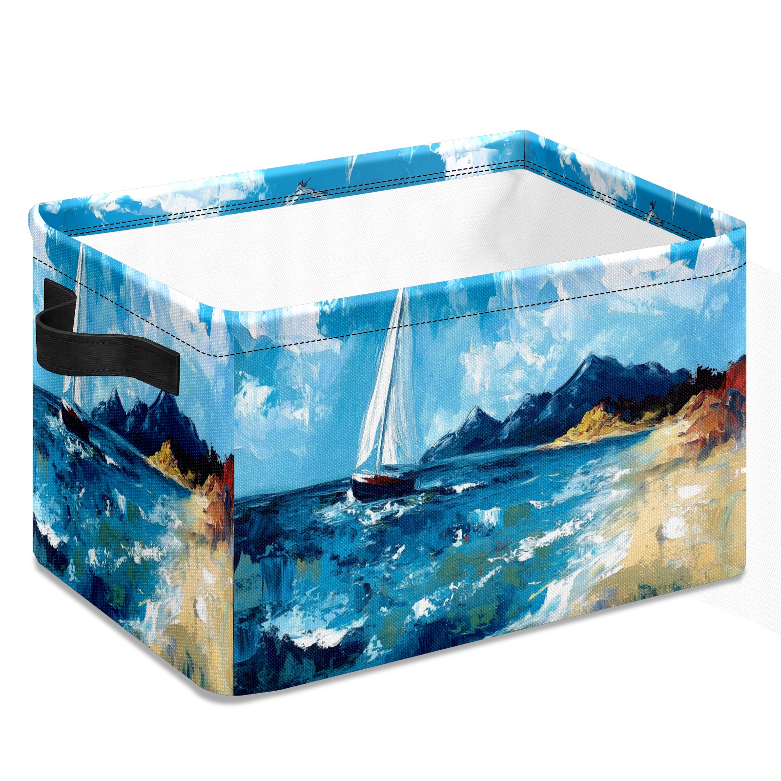 Foldable and Stackable Fabric Storage Basket for Home Organization with Handles, Decorative Closet Bins for Shelves and Laundry Storage( Sea)