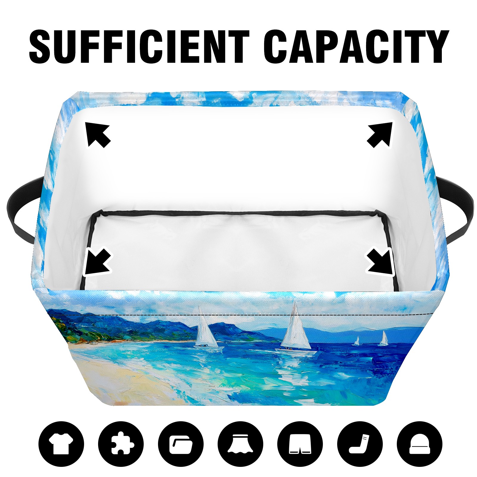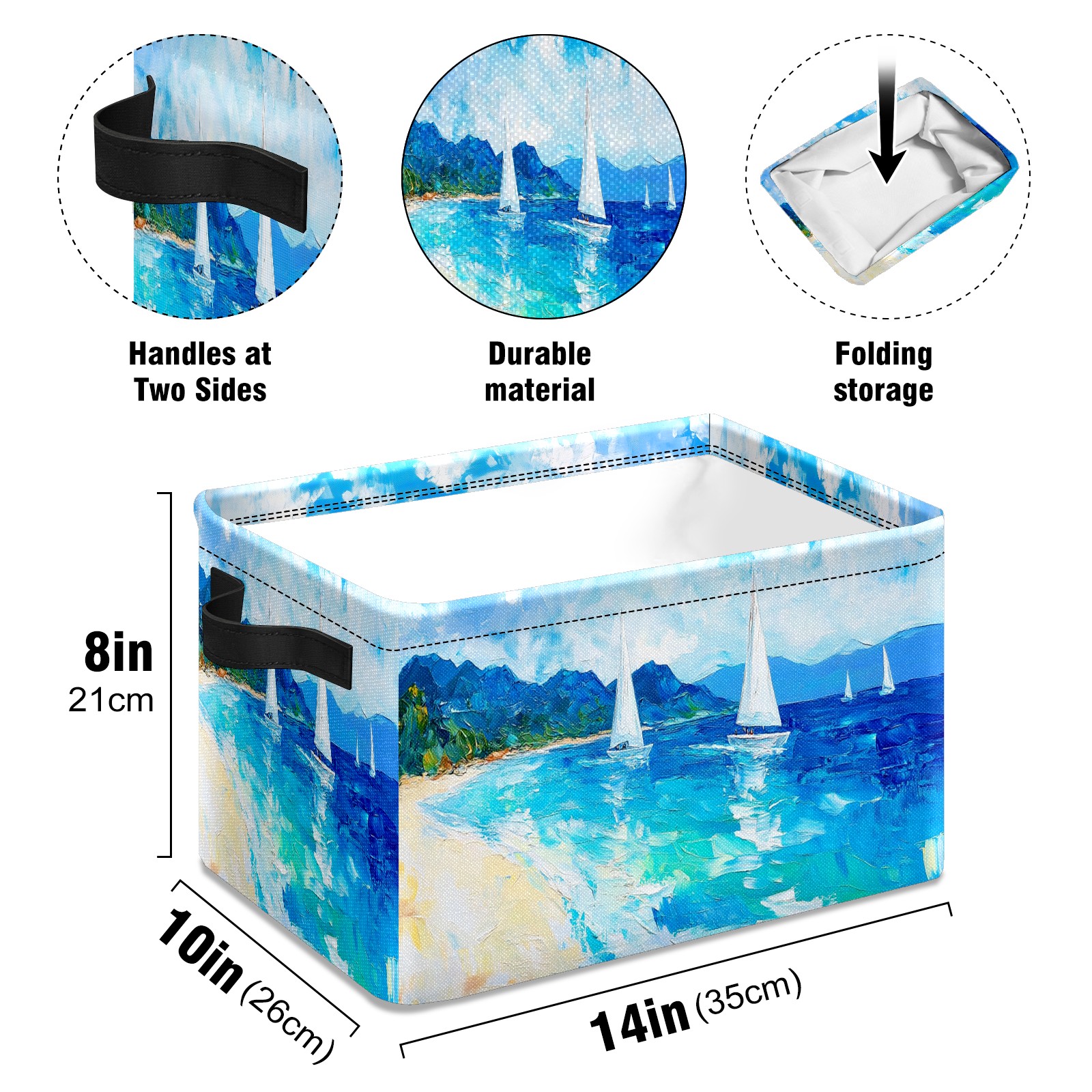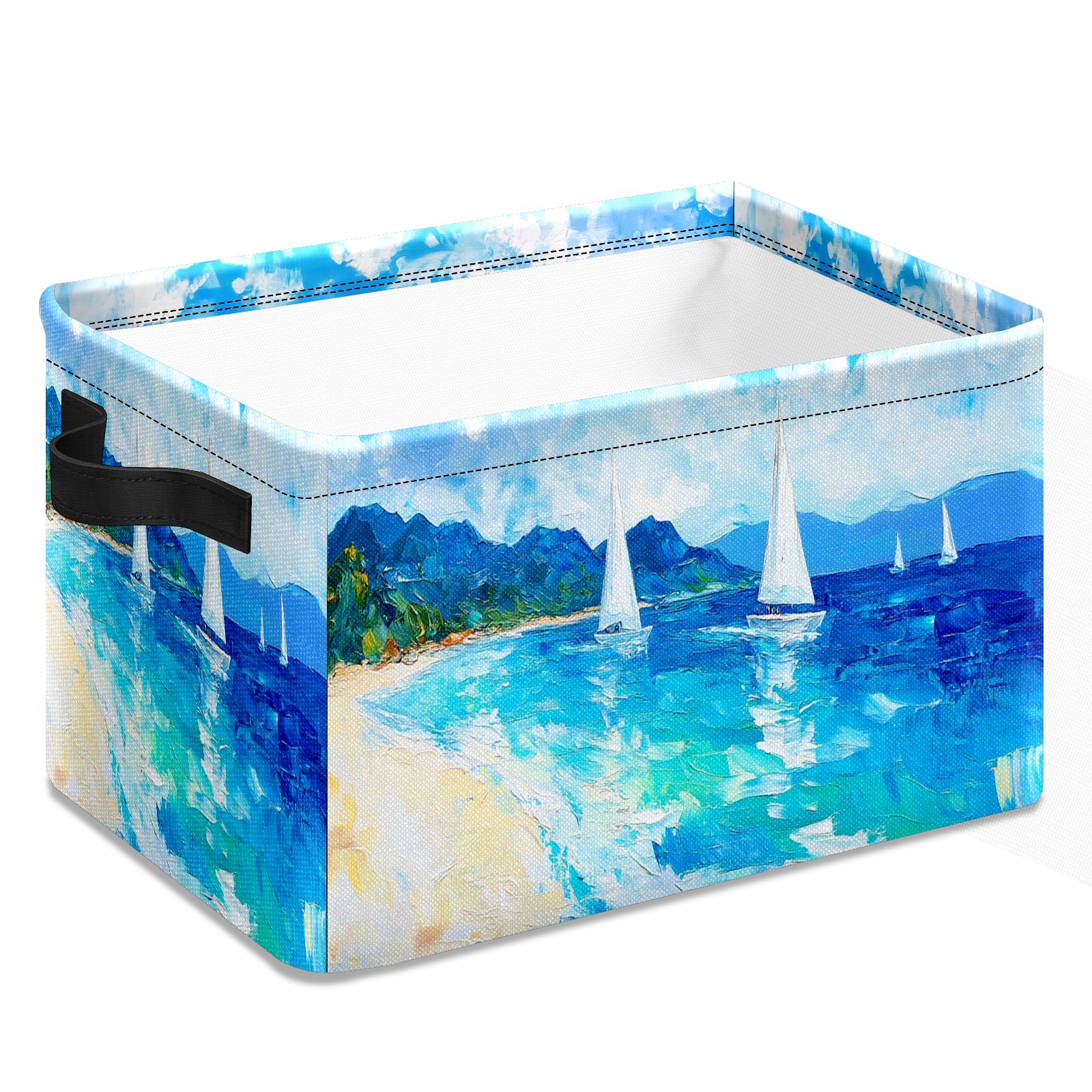 Foldable and Stackable Fabric Storage Basket for Home Organization with Handles, Decorative Closet Bins for Shelves and Laundry Storage( Sailing Sea)