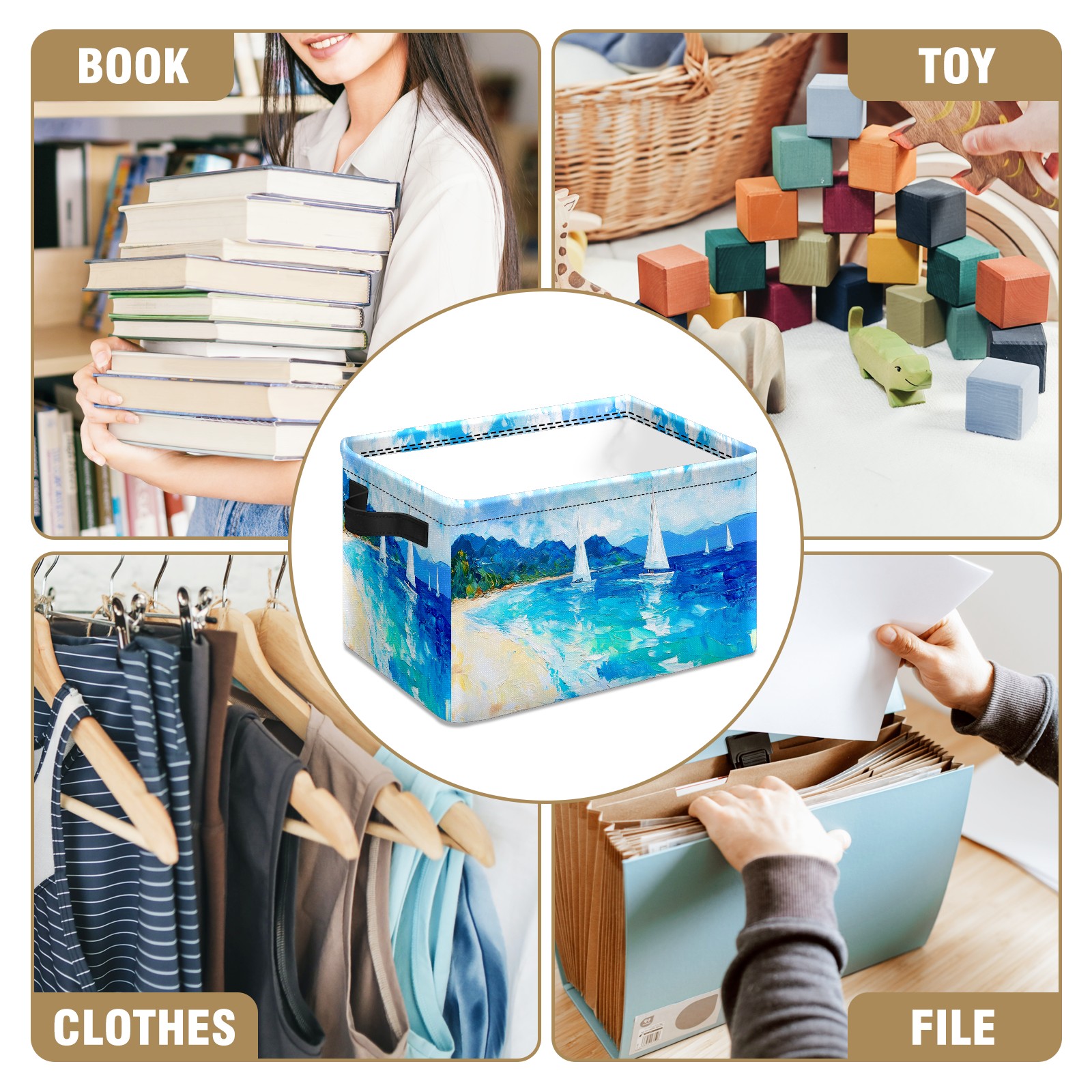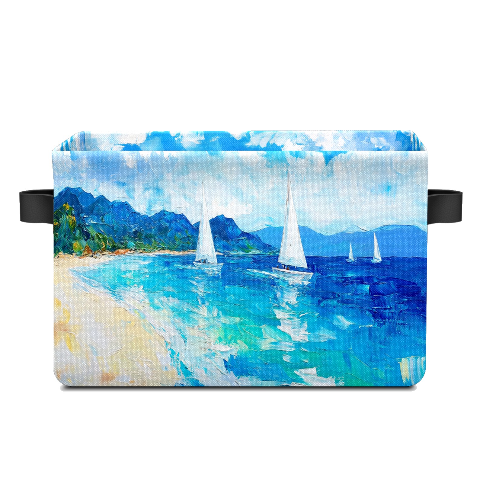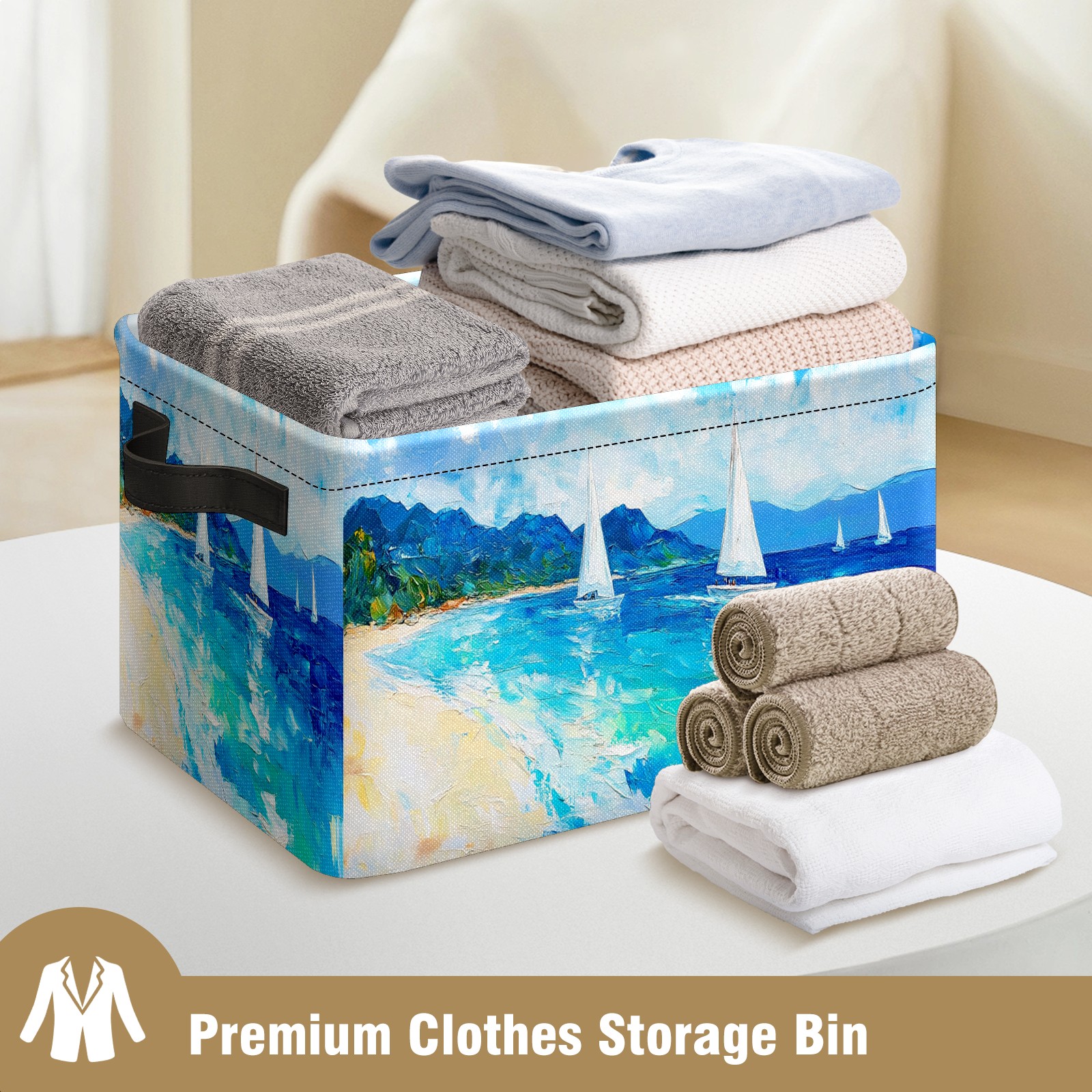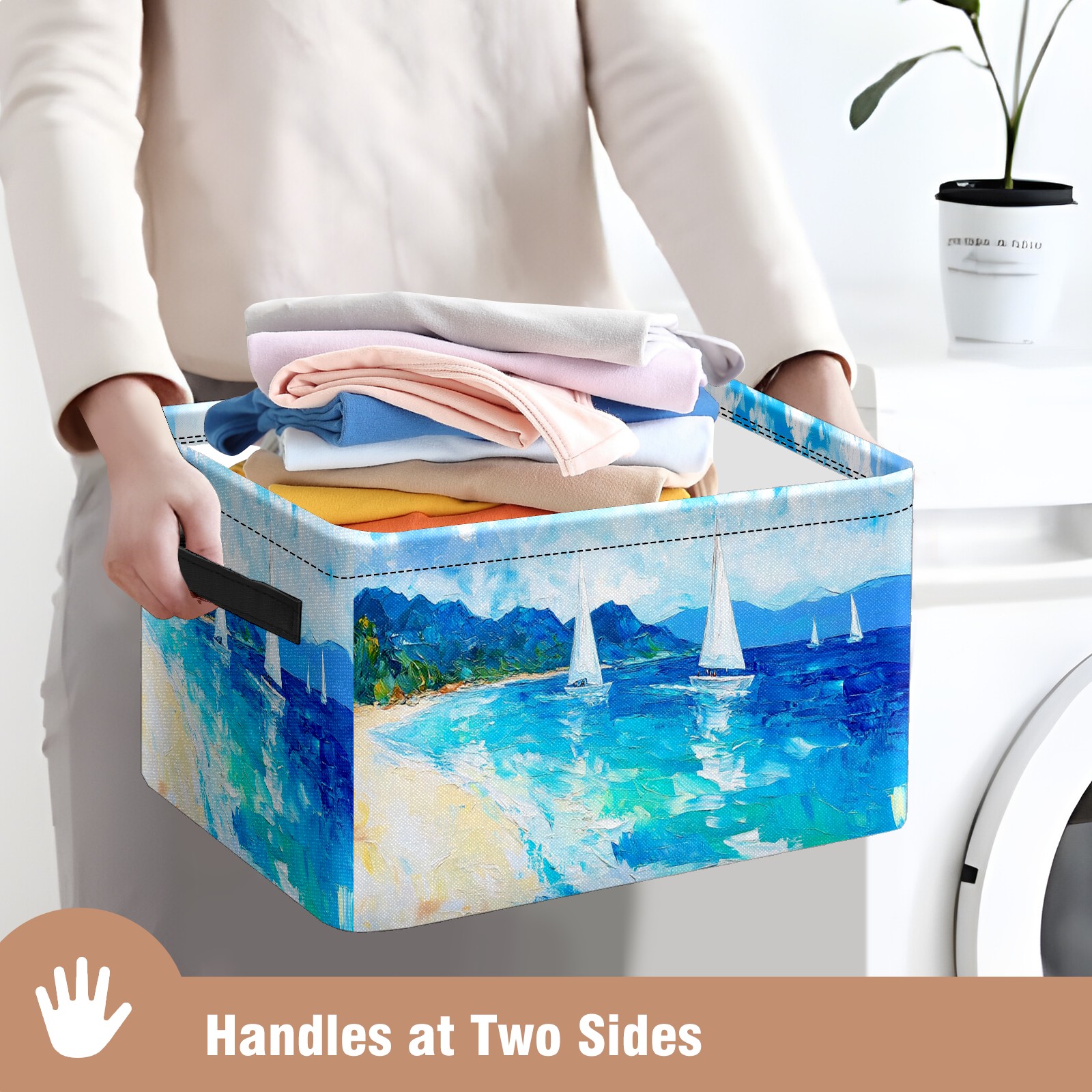 Foldable and Stackable Fabric Storage Basket for Home Organization with Handles, Decorative Closet Bins for Shelves and Laundry Storage( Sailing Sea)