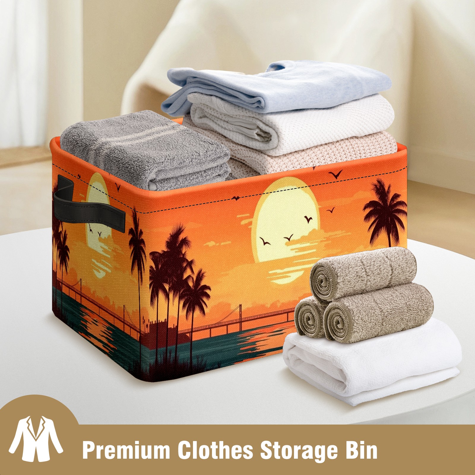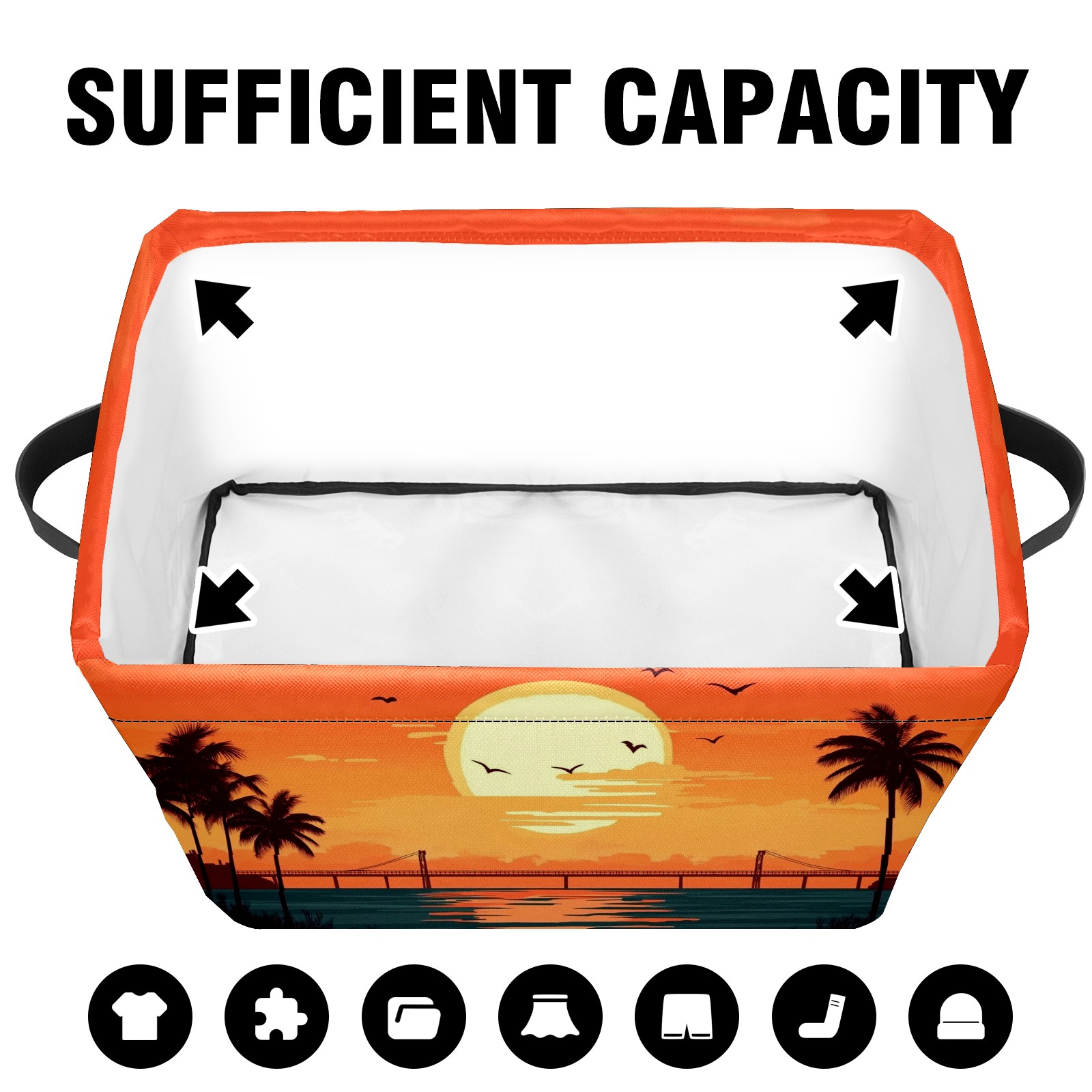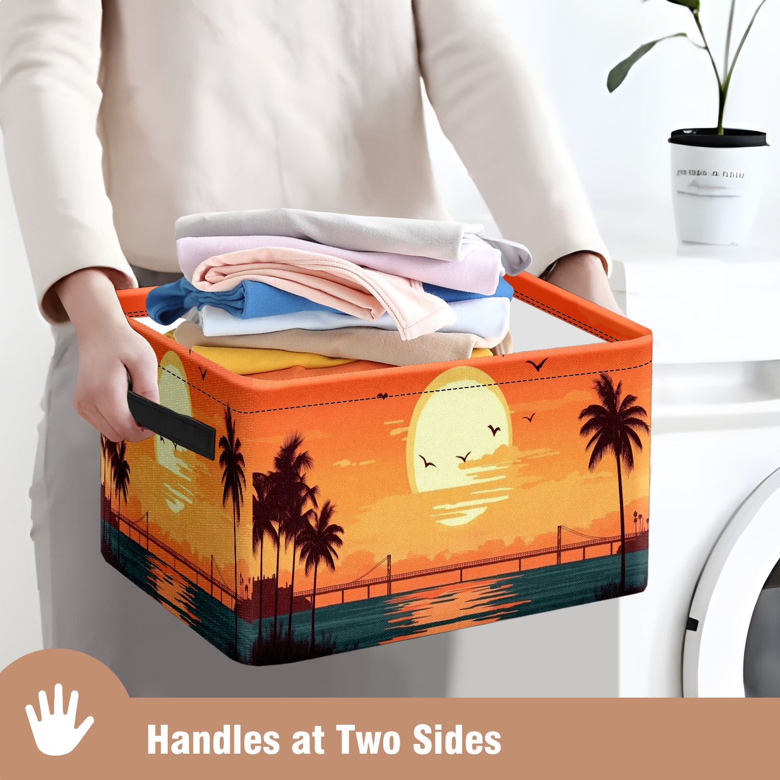 Foldable and Stackable Fabric Storage Basket for Home Organization with Handles, Decorative Closet Bins for Shelves and Laundry Storage( Sunset)