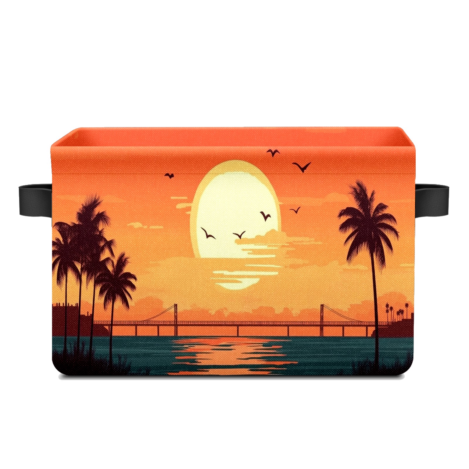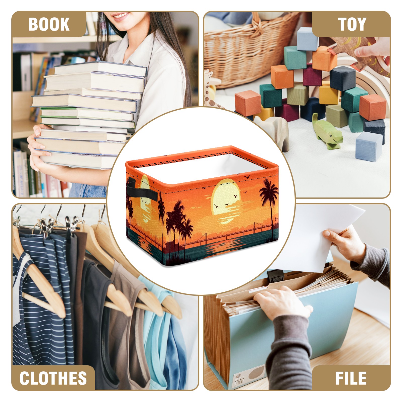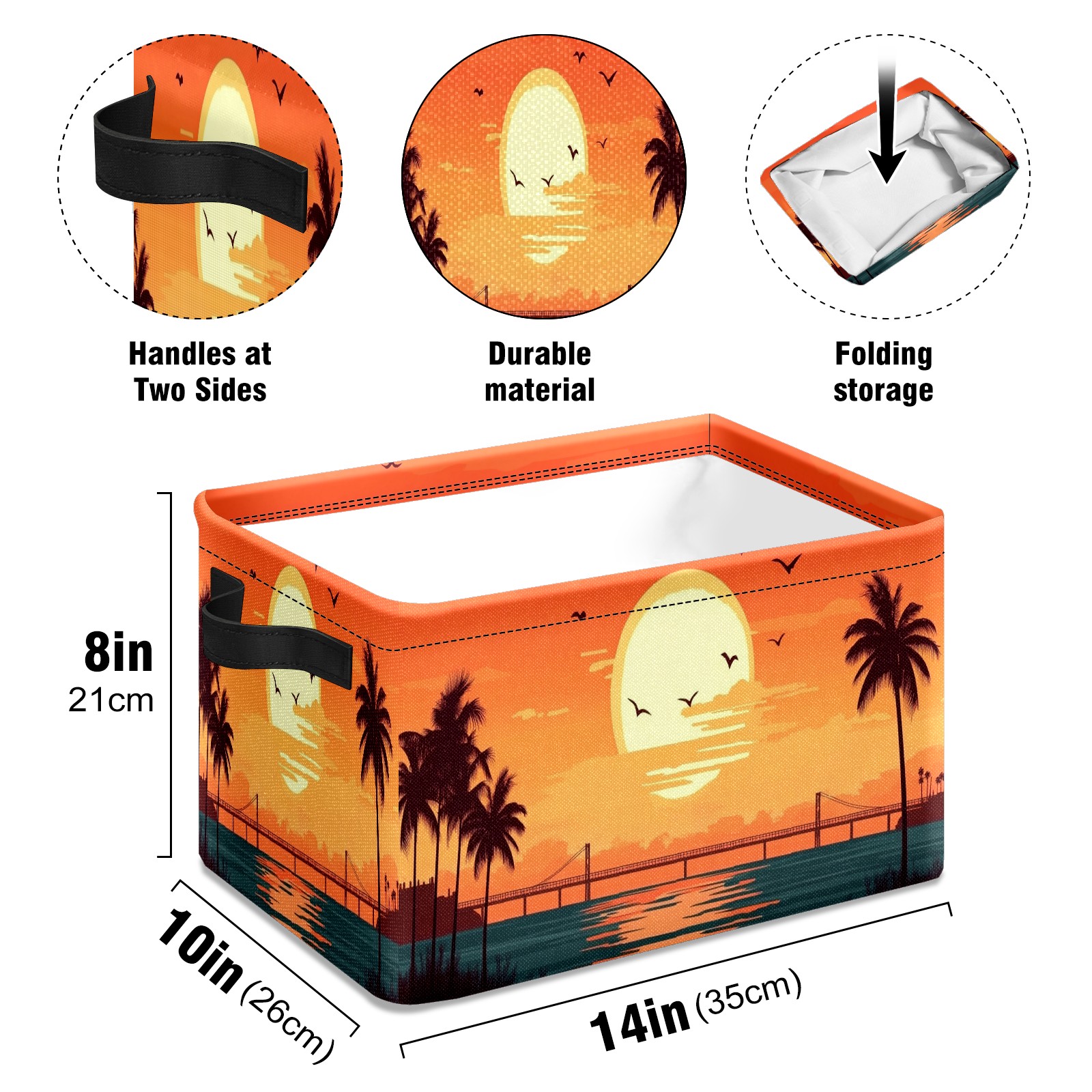 Foldable and Stackable Fabric Storage Basket for Home Organization with Handles, Decorative Closet Bins for Shelves and Laundry Storage( Sunset)