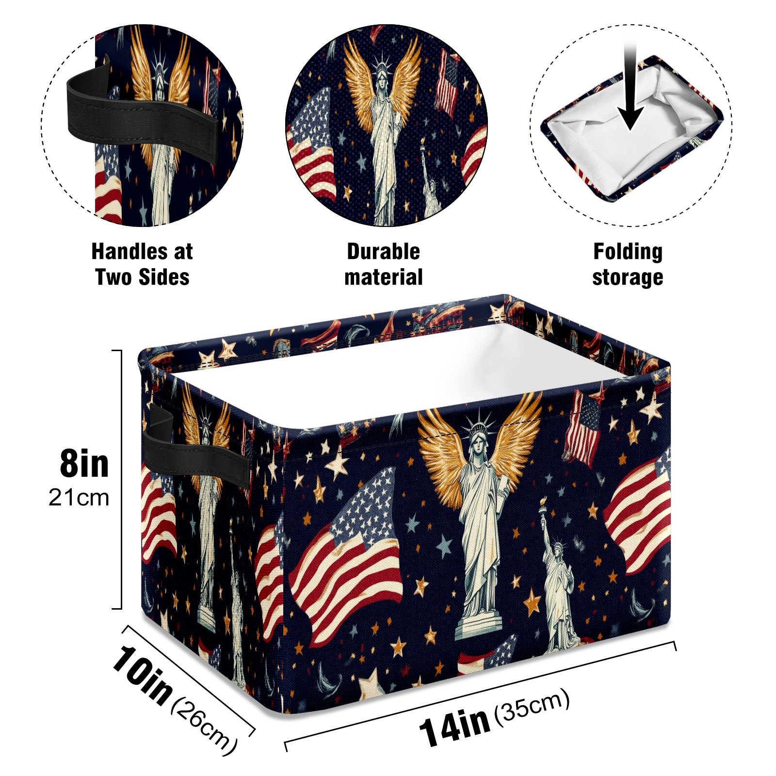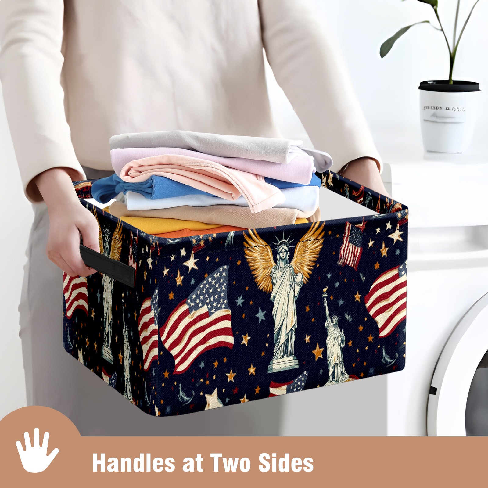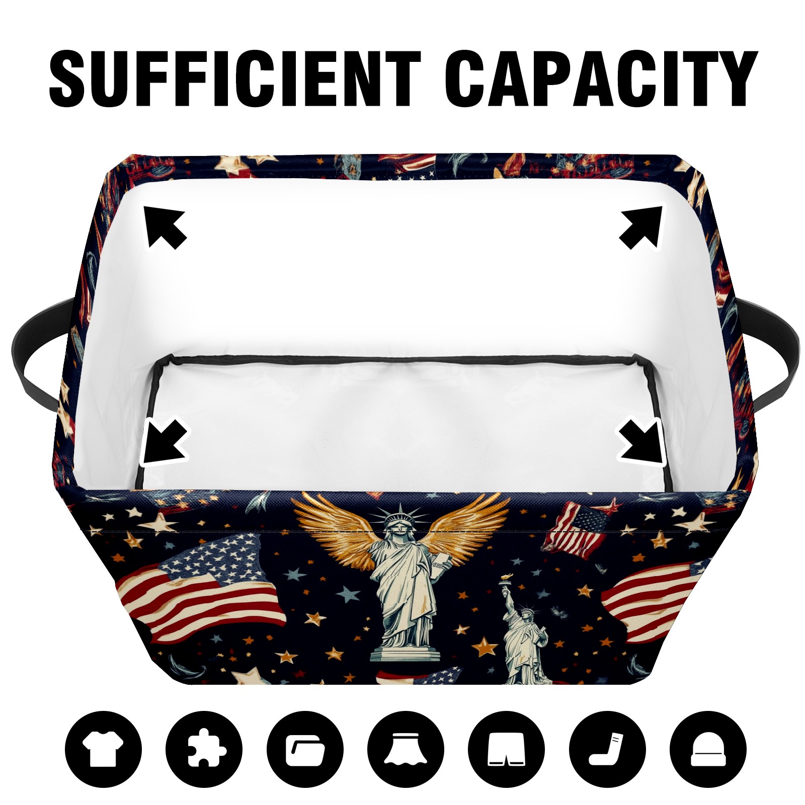 Foldable and Stackable Fabric Storage Basket for Home Organization with Handles, Decorative Closet Bins for Shelves and Laundry Storage( Bald Eagle And American Flag)