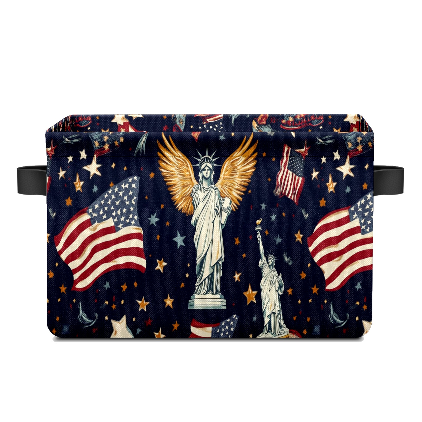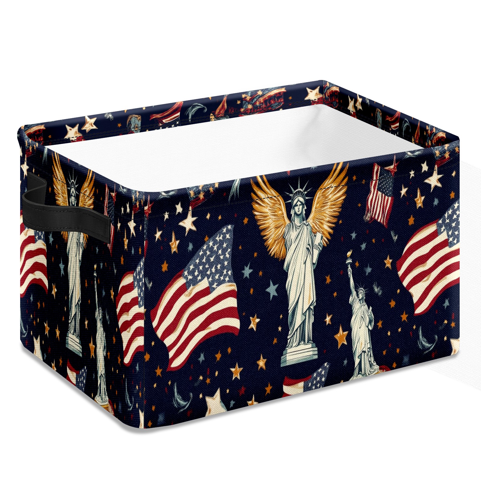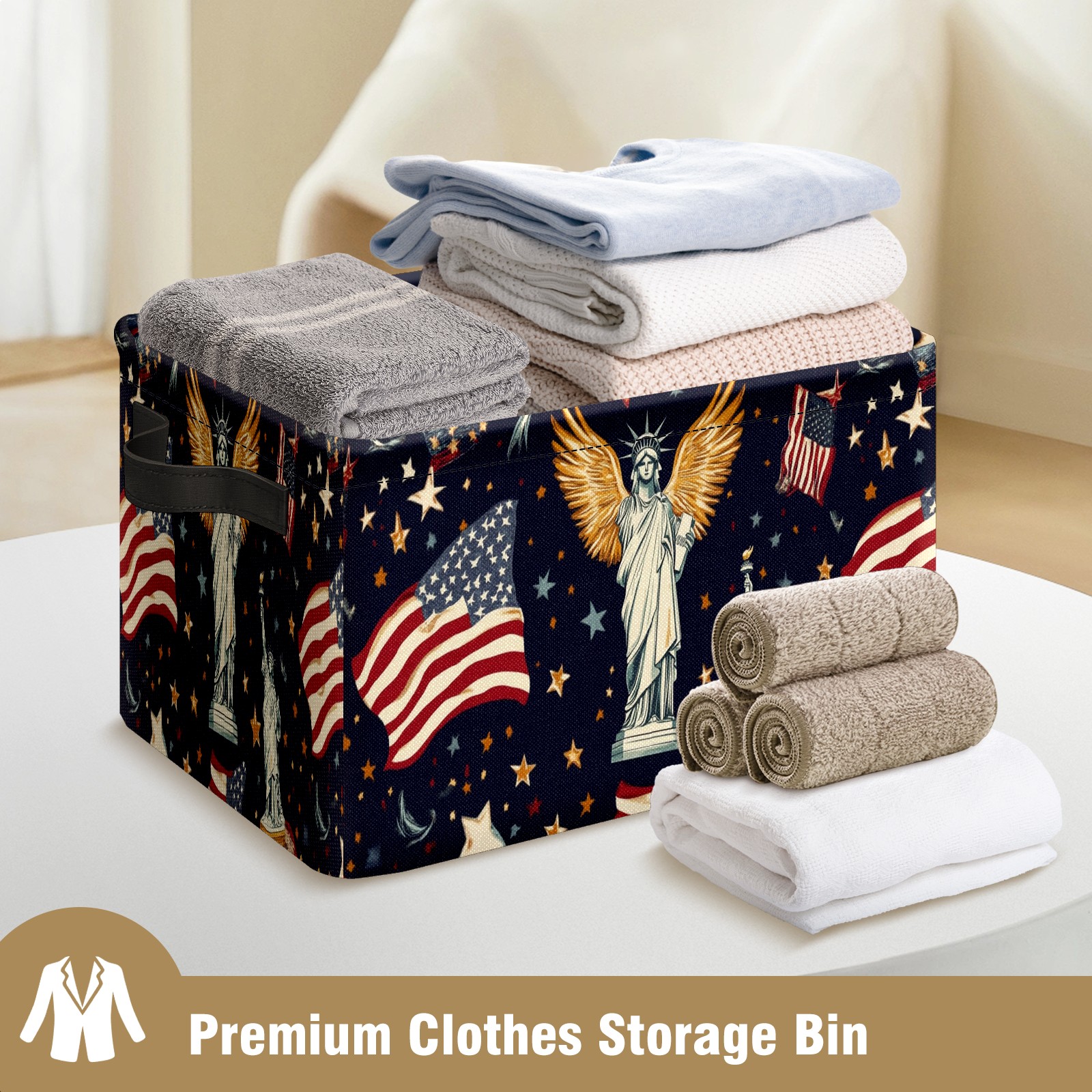 Foldable and Stackable Fabric Storage Basket for Home Organization with Handles, Decorative Closet Bins for Shelves and Laundry Storage( Bald Eagle And American Flag)
