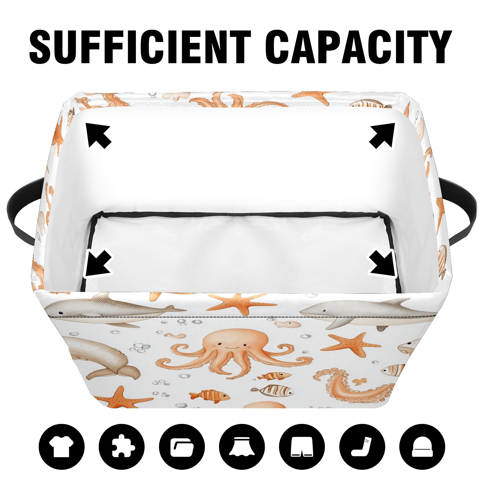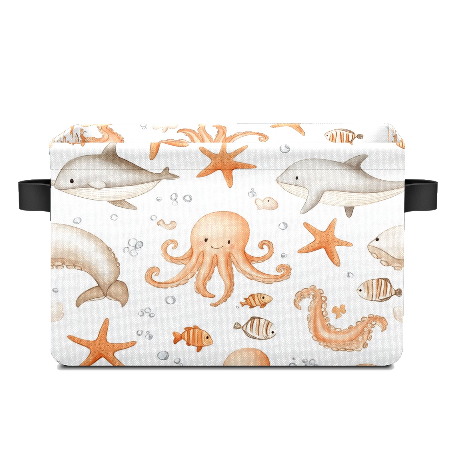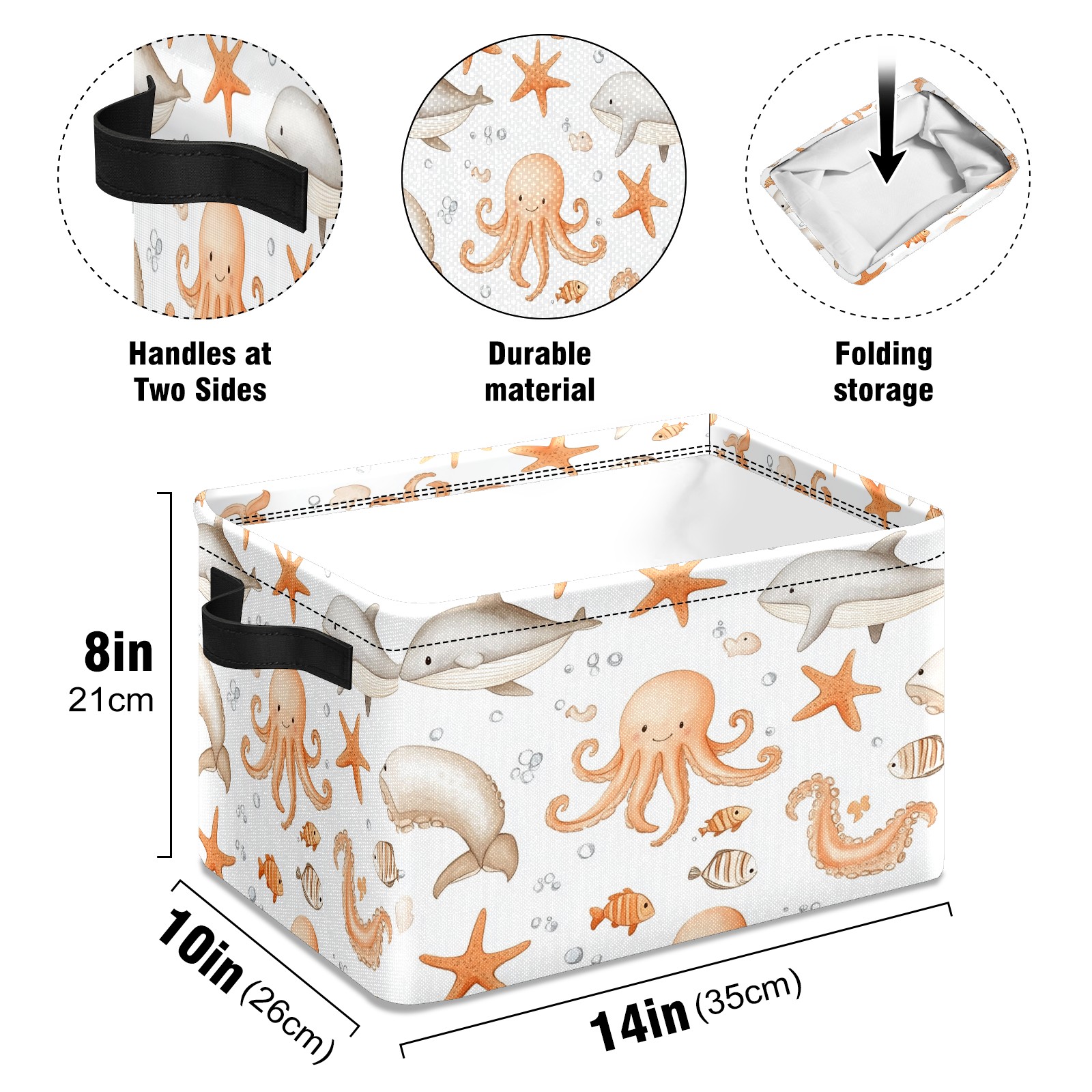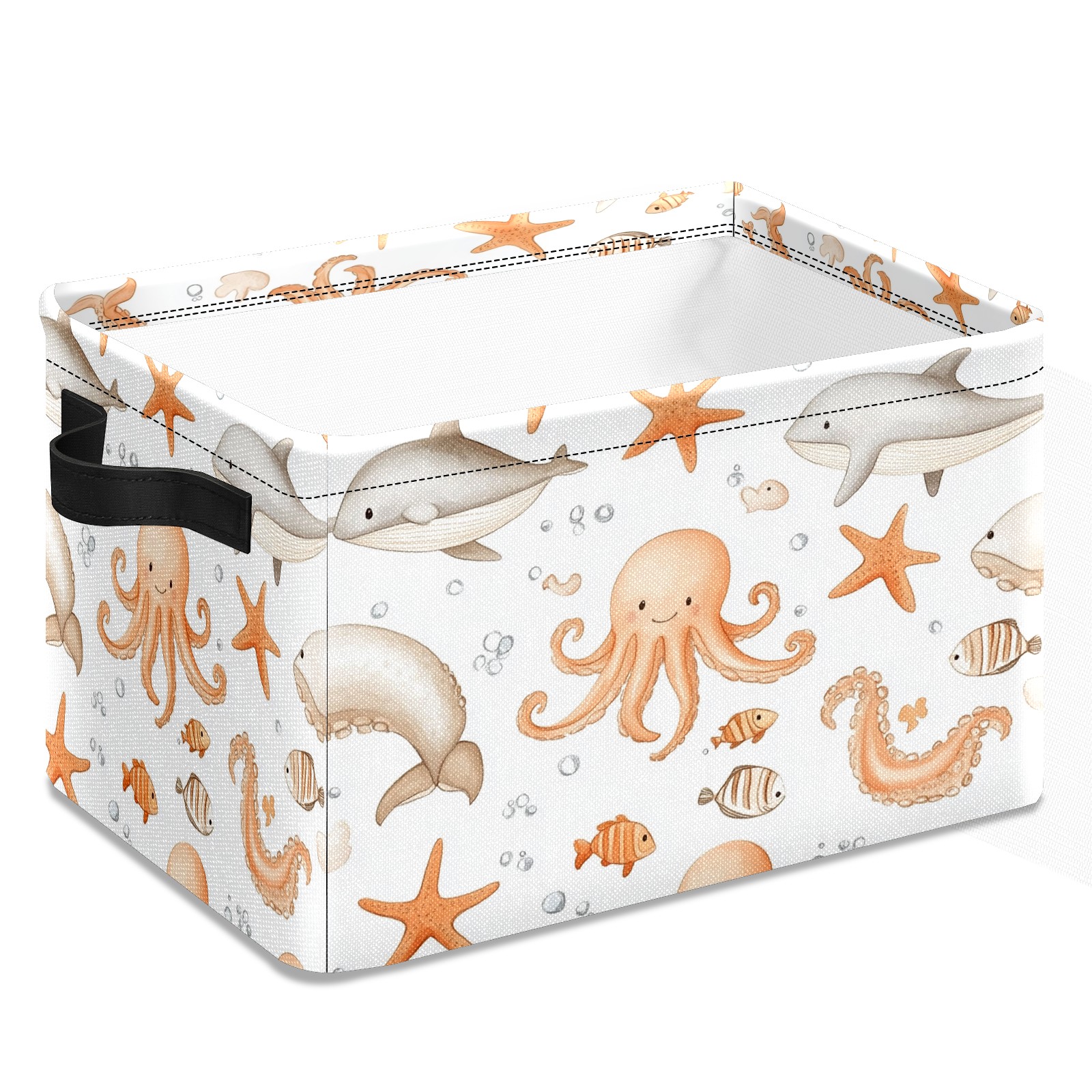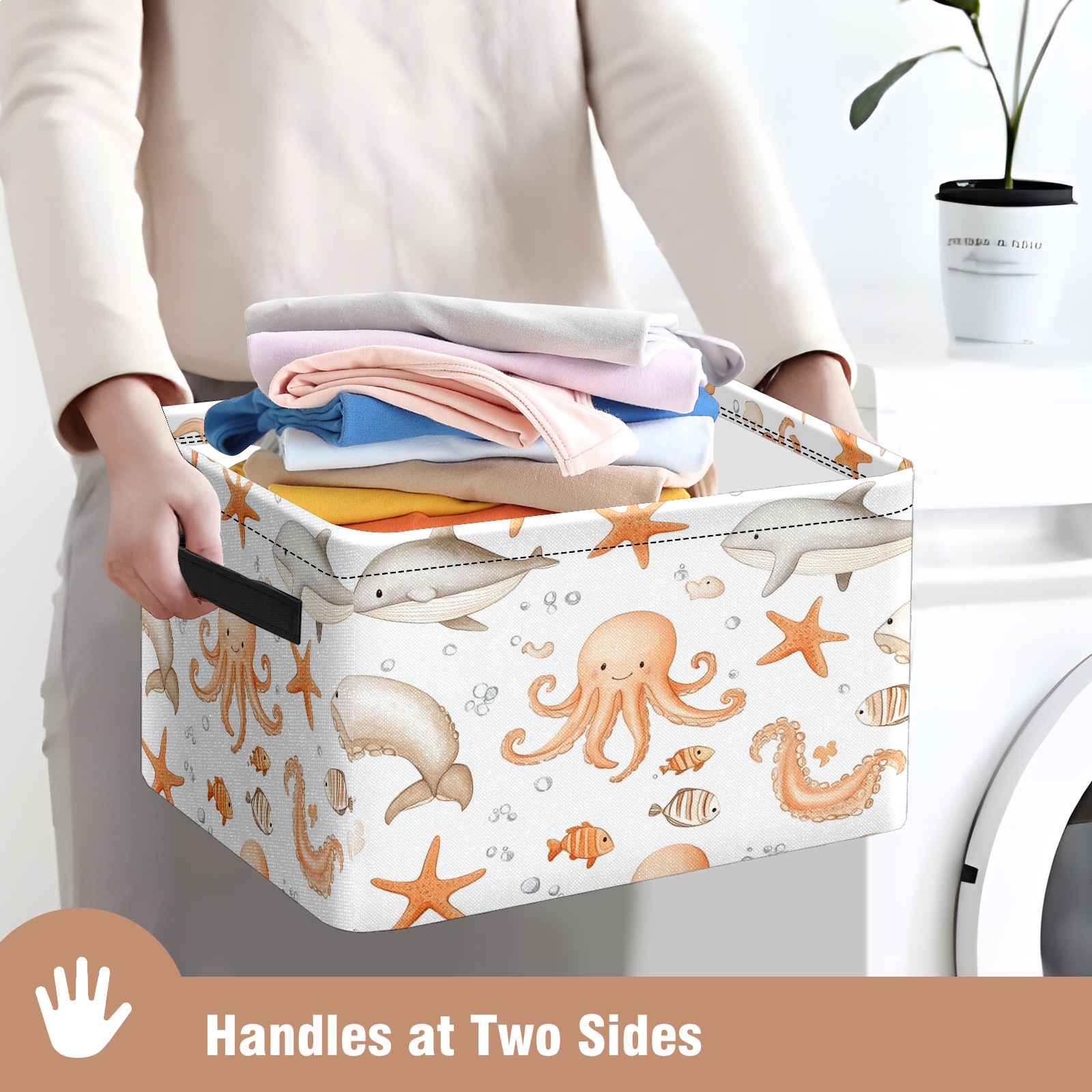 Foldable and Stackable Fabric Storage Basket for Home Organization with Handles, Decorative Closet Bins for Shelves and Laundry Storage( Whale And Starfish)