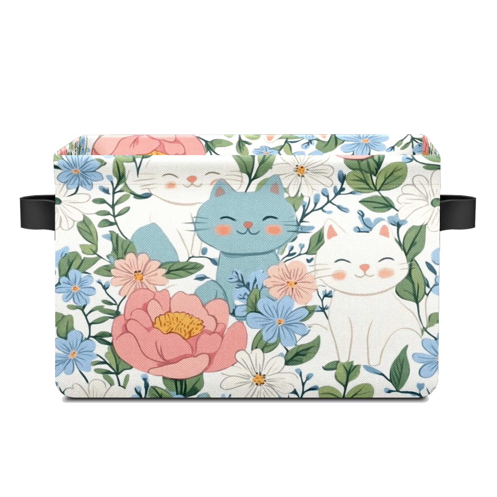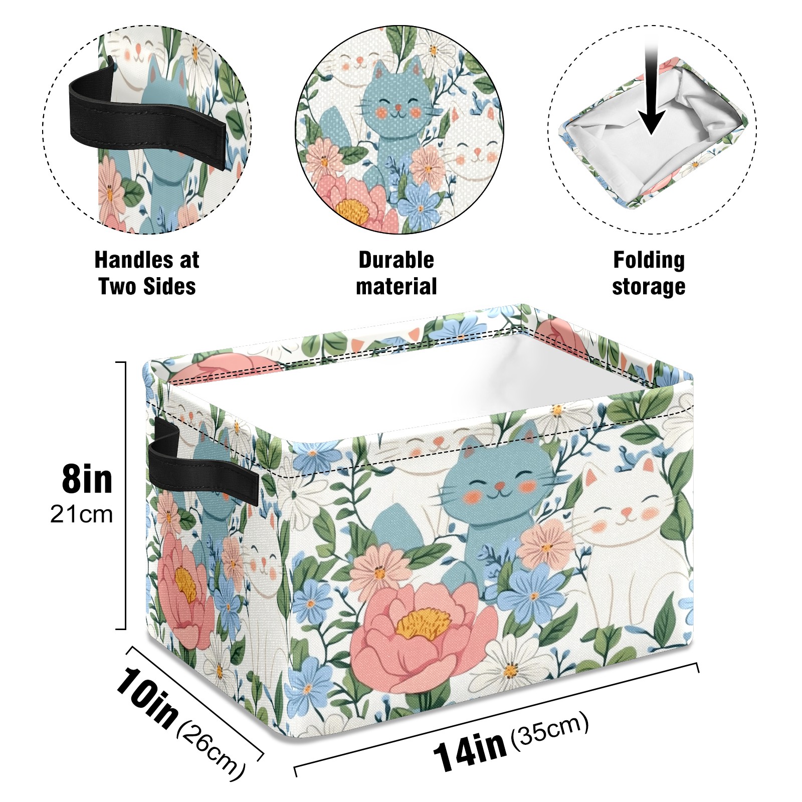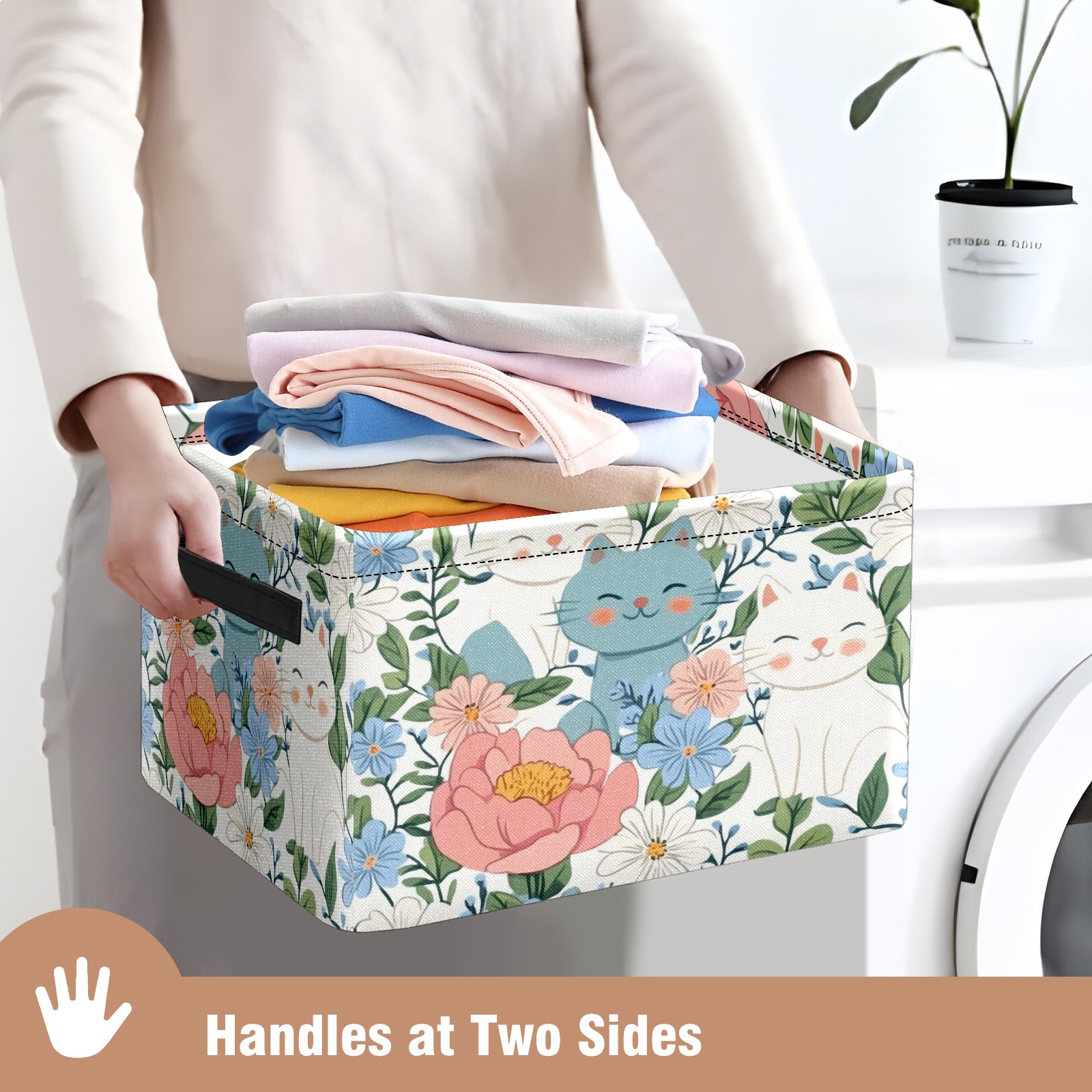 Foldable and Stackable Fabric Storage Basket for Home Organization with Handles, Decorative Closet Bins for Shelves and Laundry Storage( Pastel-colored Cats)