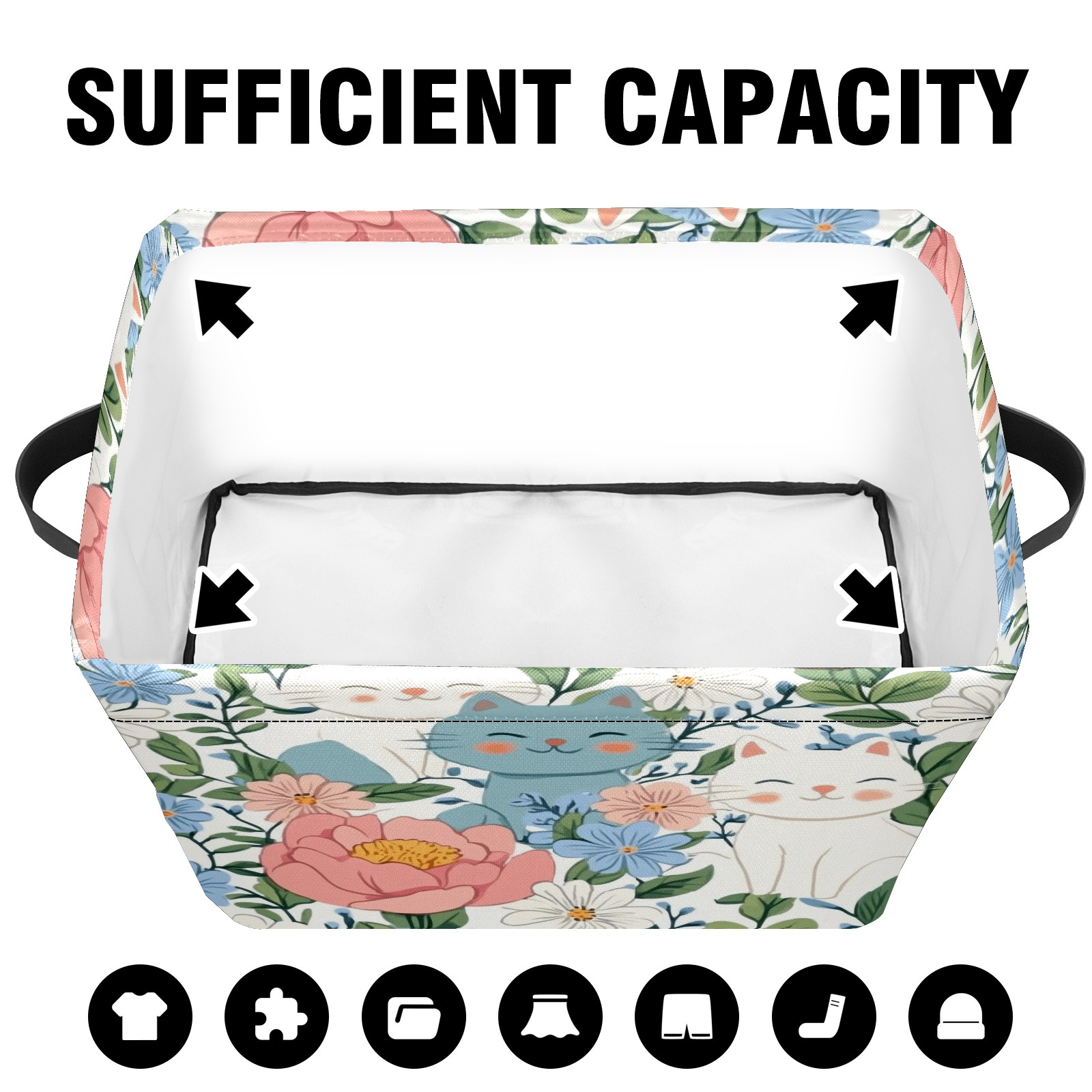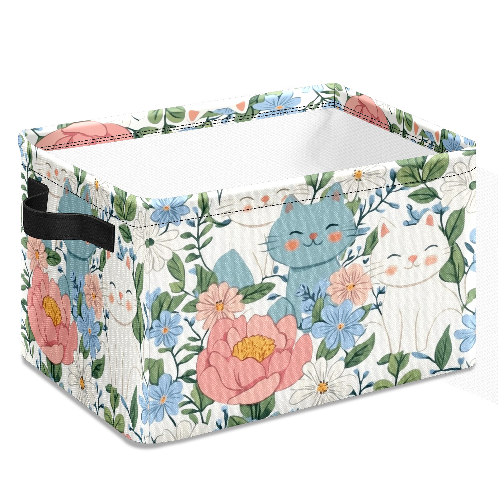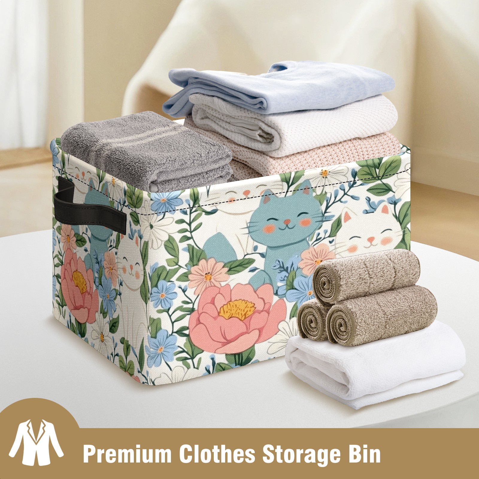 Foldable and Stackable Fabric Storage Basket for Home Organization with Handles, Decorative Closet Bins for Shelves and Laundry Storage( Pastel-colored Cats)